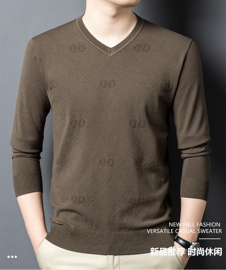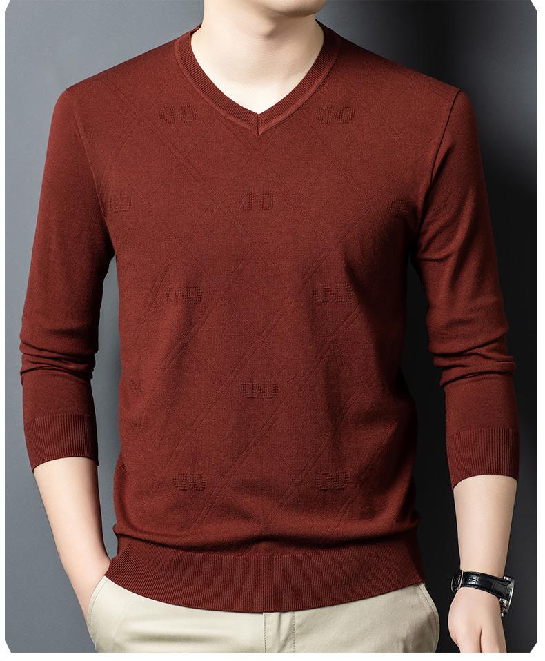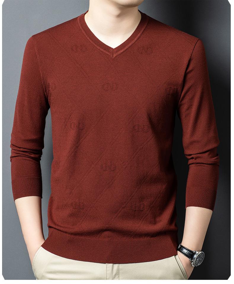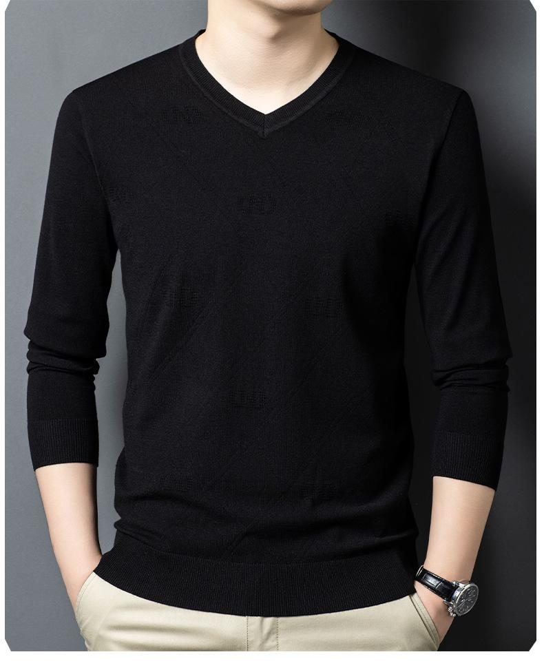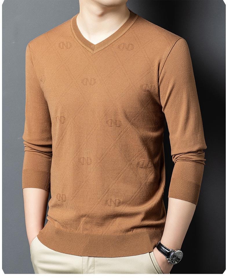 Hengyuanxiang 2025 Otoño Nuevo Suéter Tejido para Hombre Cuello en V Camiseta Base Moderna Versátil Suéter Manga Larga para Hombre t