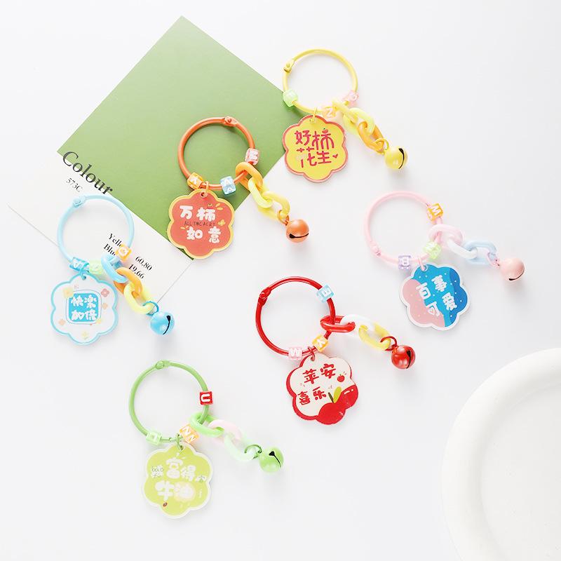 Llavero de tarjeta de texto creativo colgante de paz alegría adornos de bolsa fresca pequeña adornos acrílicos