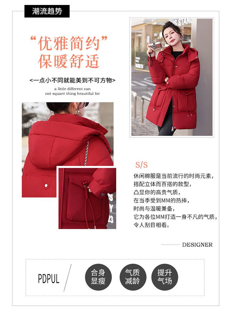 Guía de Inspiración de Moda Abrigo Acolchado de Algodón de Largo Medio, Cálido y Adelgazante