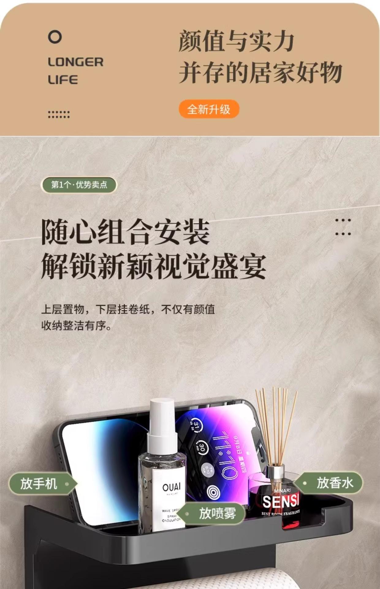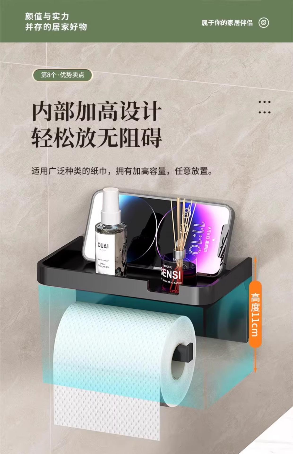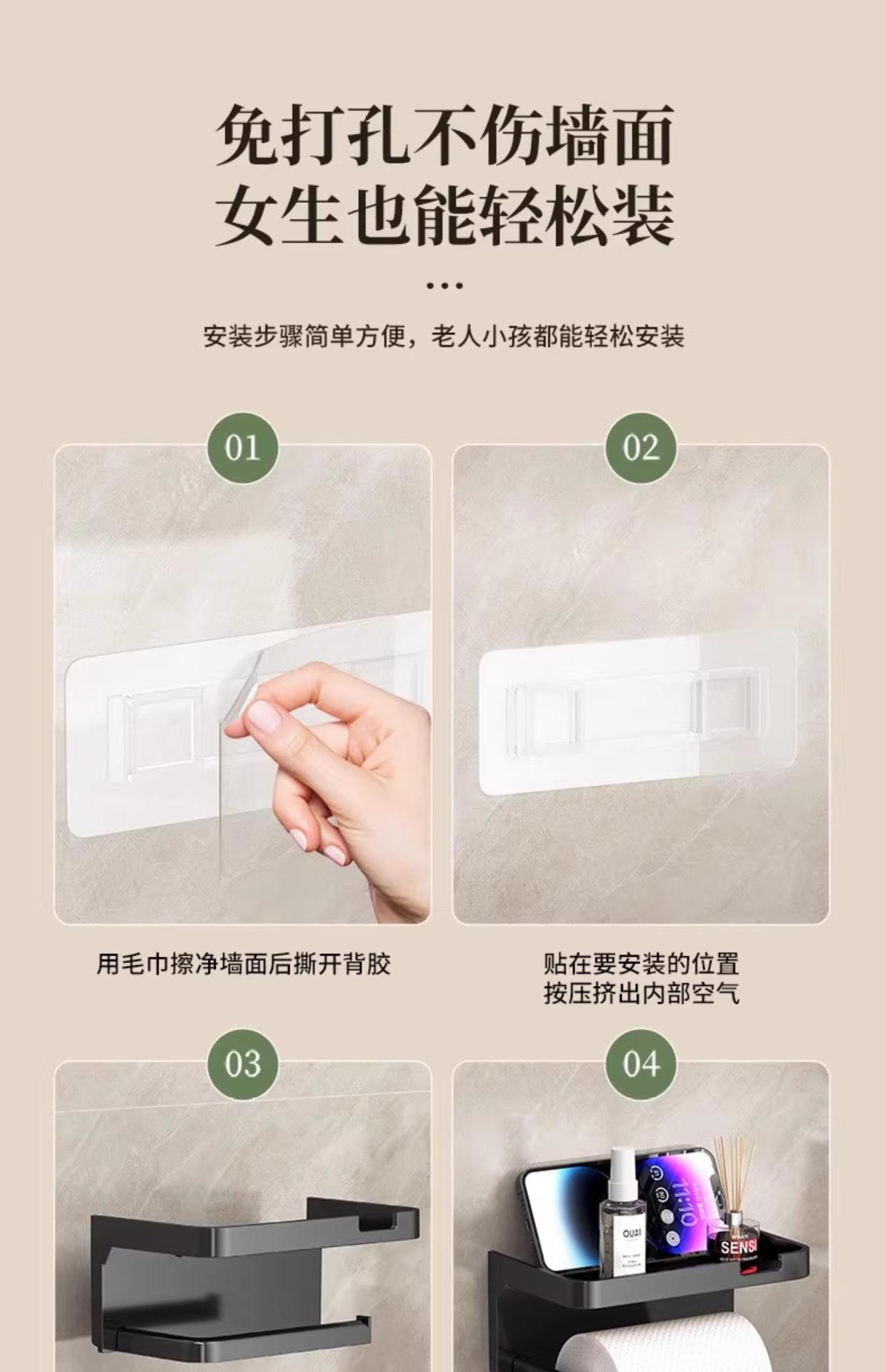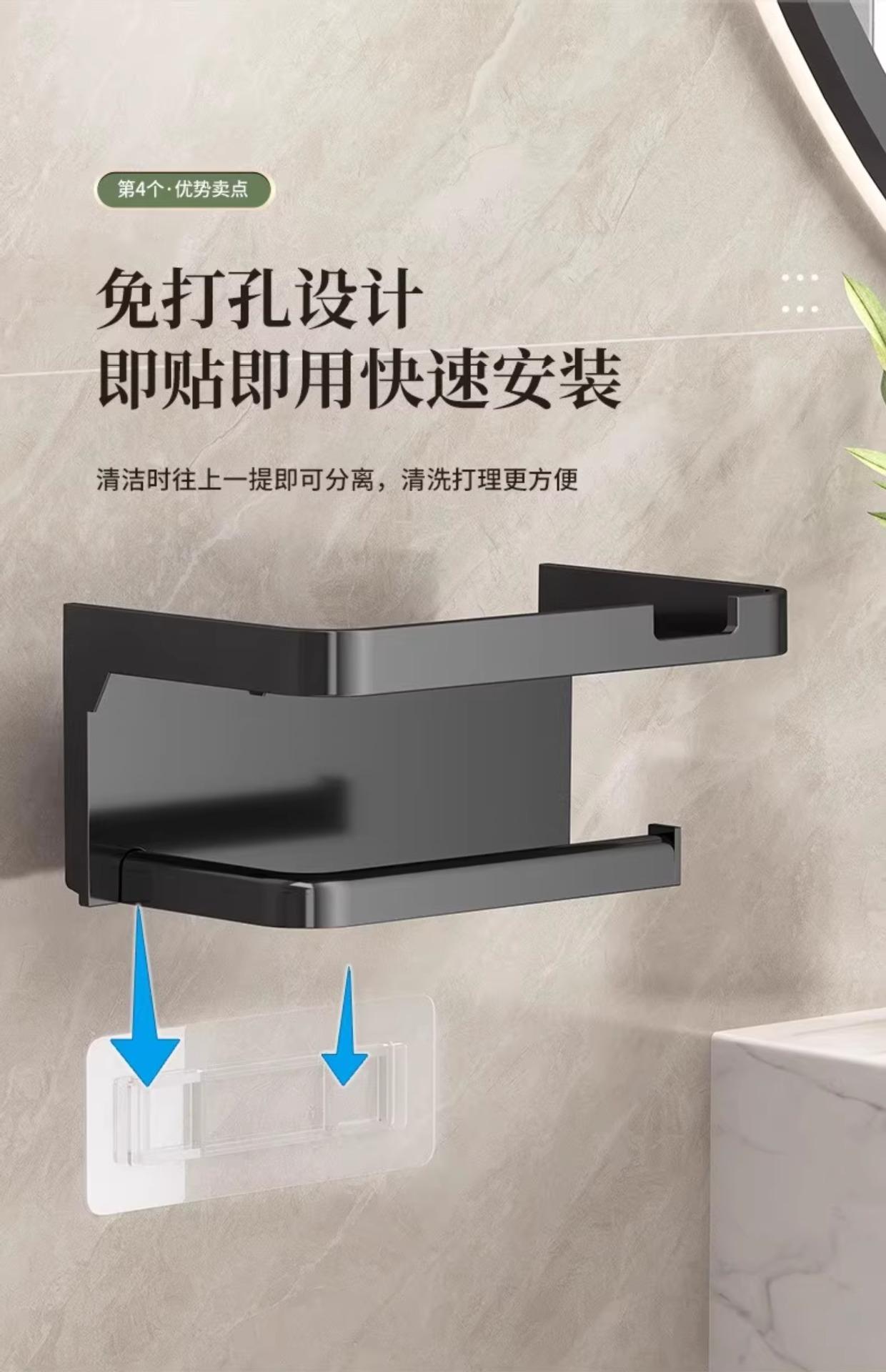 Estante de almacenamiento para caja de pañuelos de baño, caja de pañuelos de pared, baño sin perforaciones, soporte para papel higiénico, soporte para rollo de papel higiénico doméstico