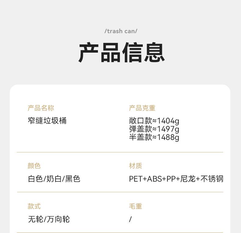 Narrow slit trash can - open model (white) comes with garbage bag, Narrow slit trash can-open model (black) co...