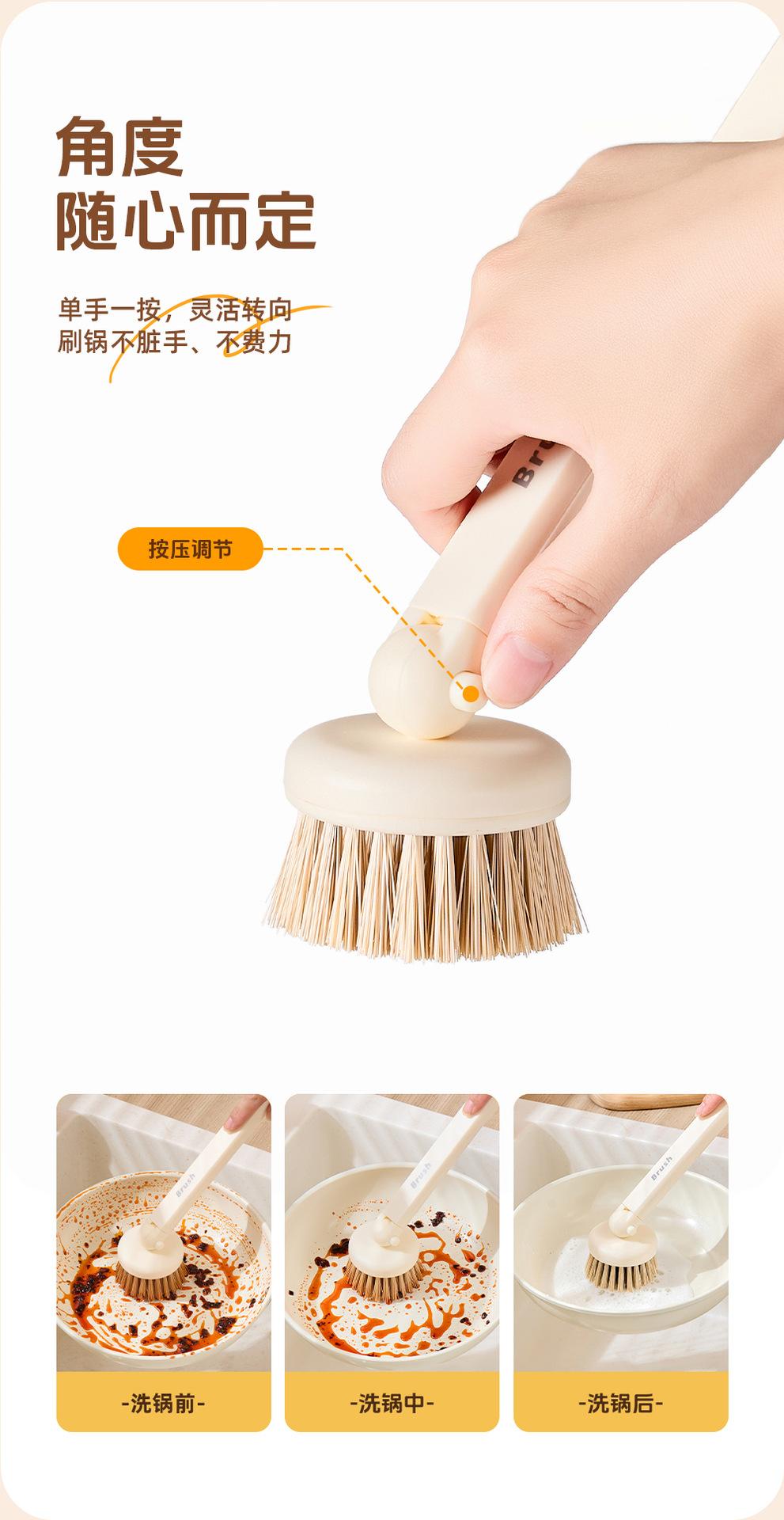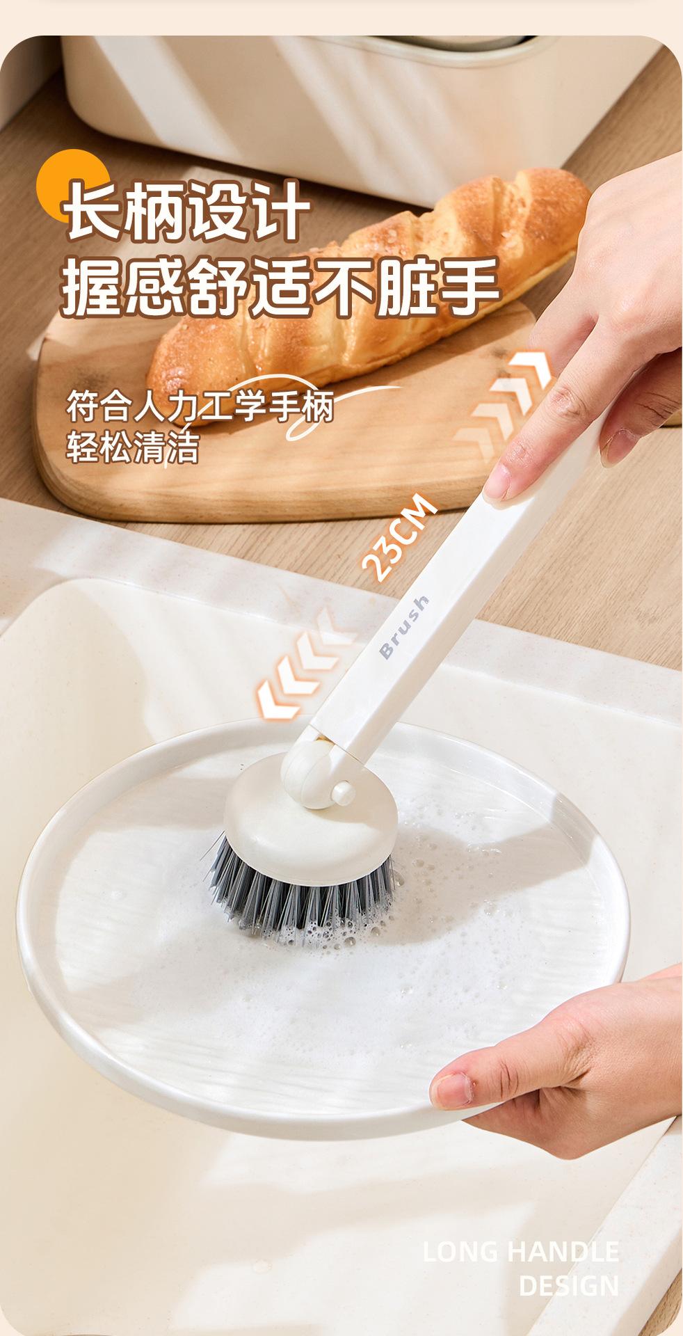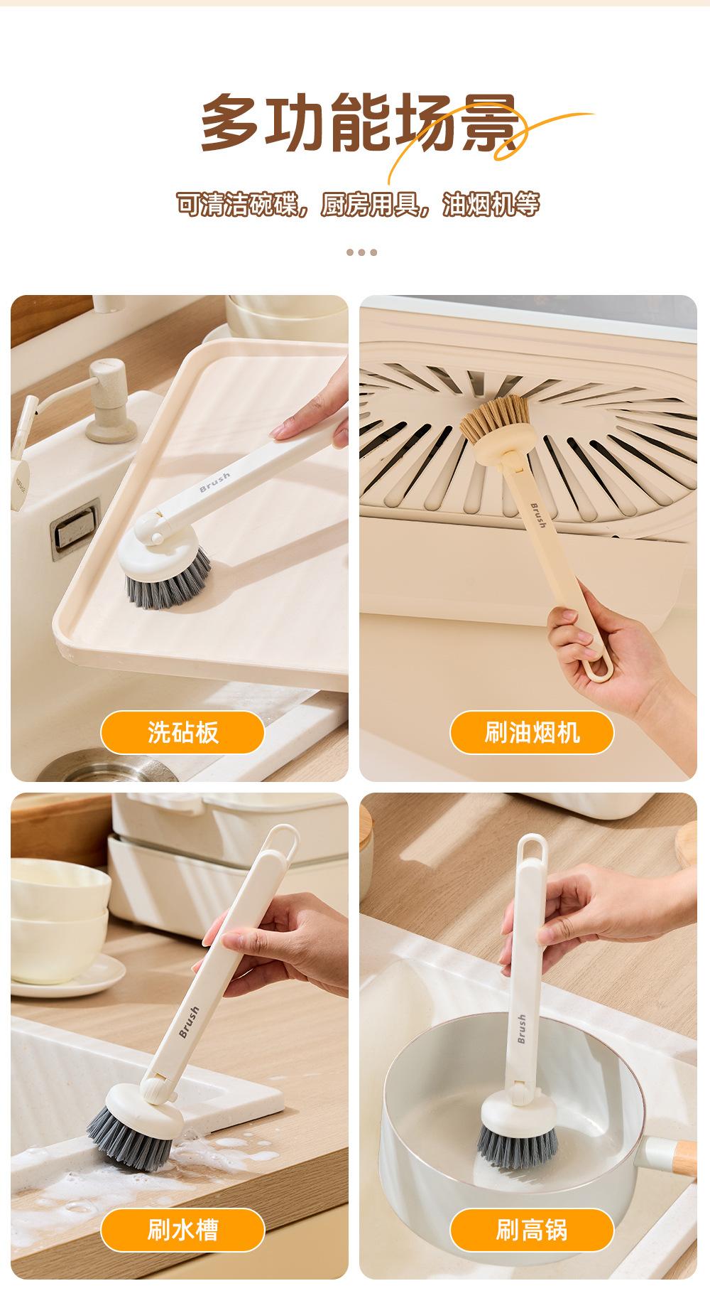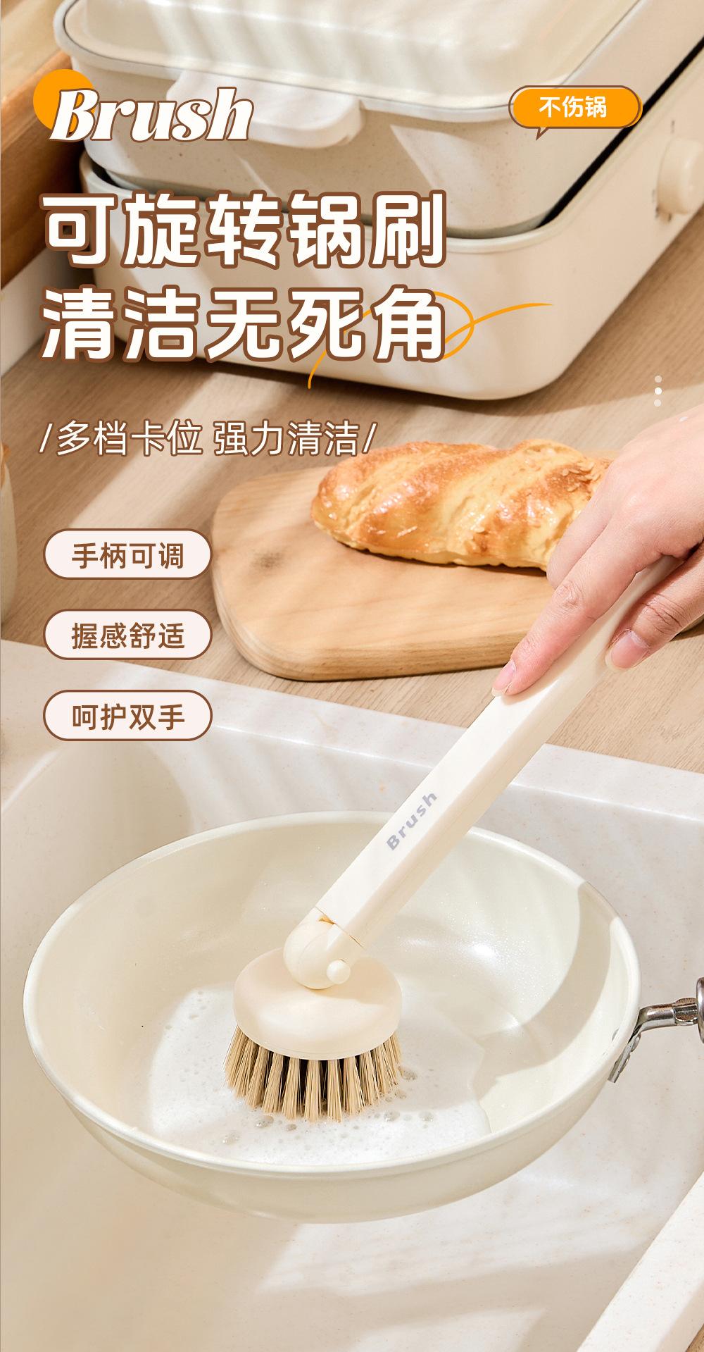 Cepillo de mango largo, creativo y giratorio, ideal para la cocina, especialmente para lavar ollas, descontaminar, descalcificar y limpiar platos. También sirve para lavar platos antiadherentes.