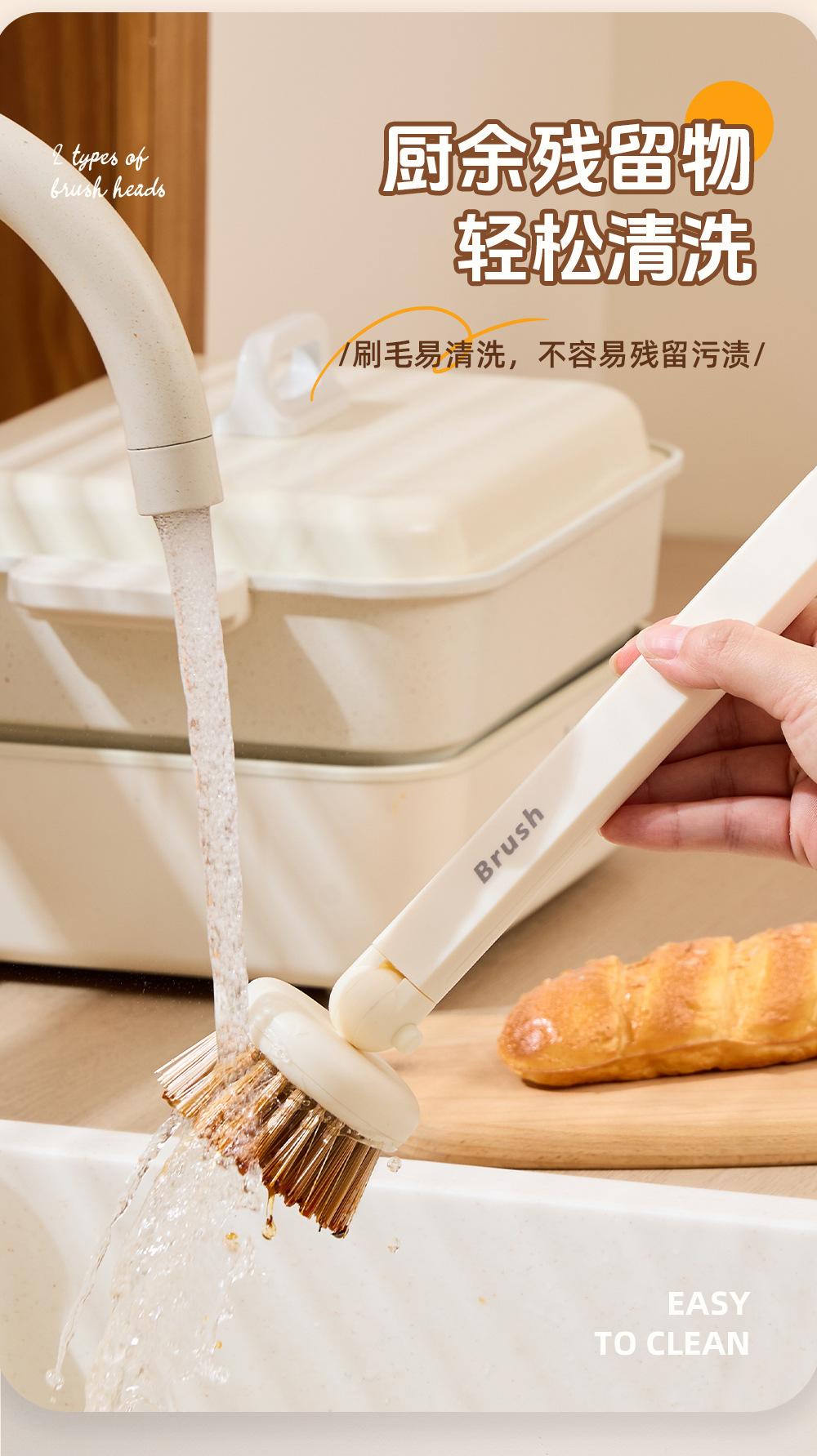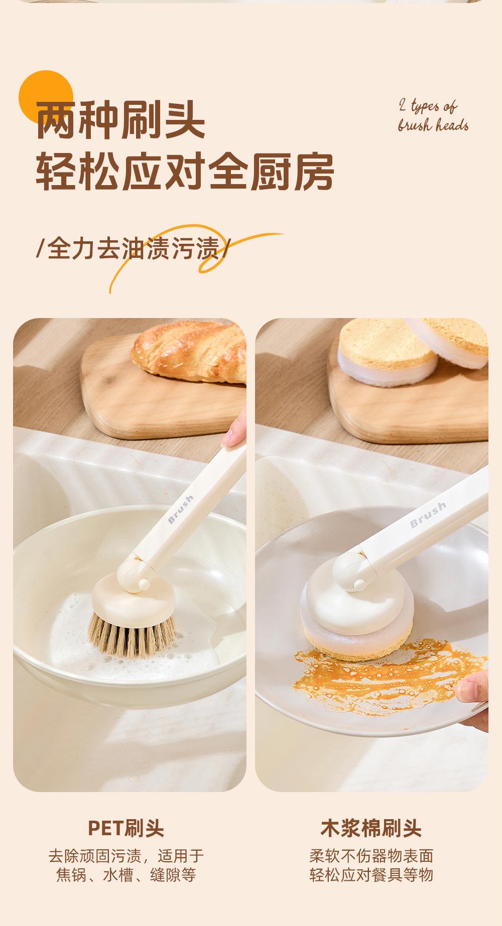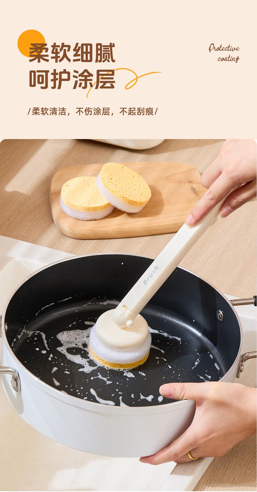Cepillo de mango largo, creativo y giratorio, ideal para la cocina, especialmente para lavar ollas, descontaminar, descalcificar y limpiar platos. También sirve para lavar platos antiadherentes.