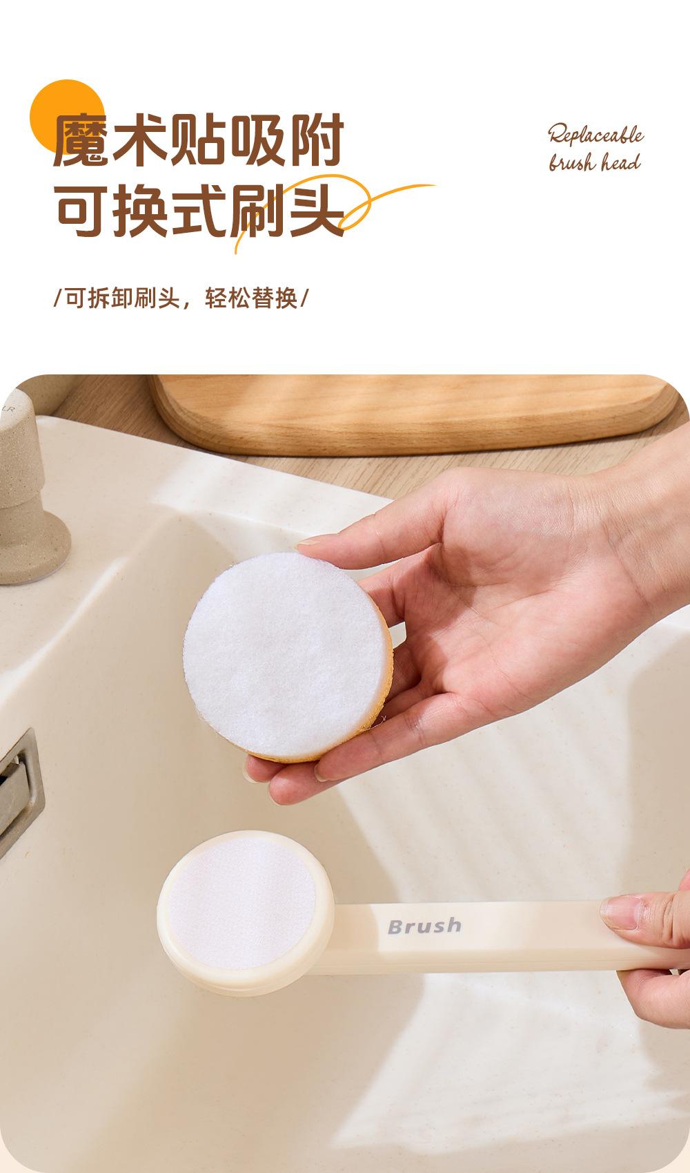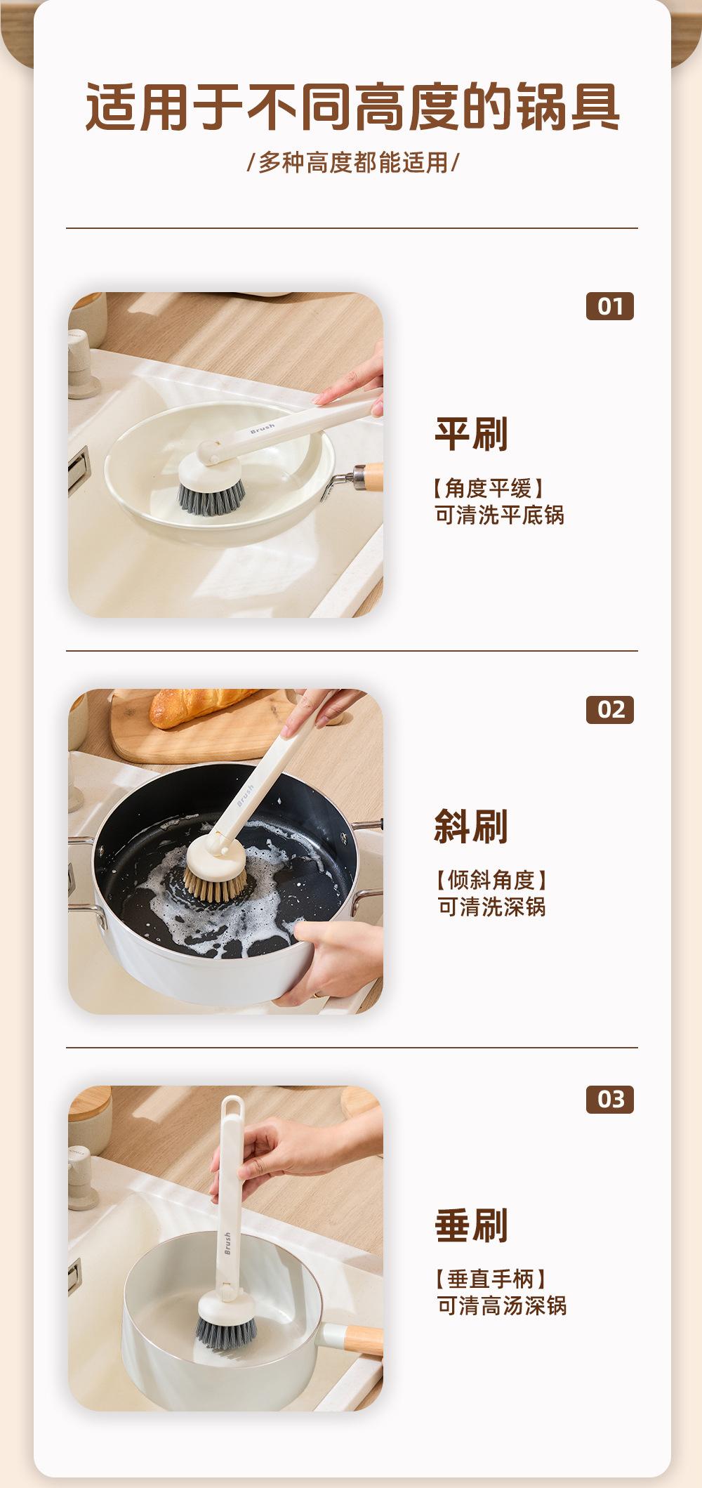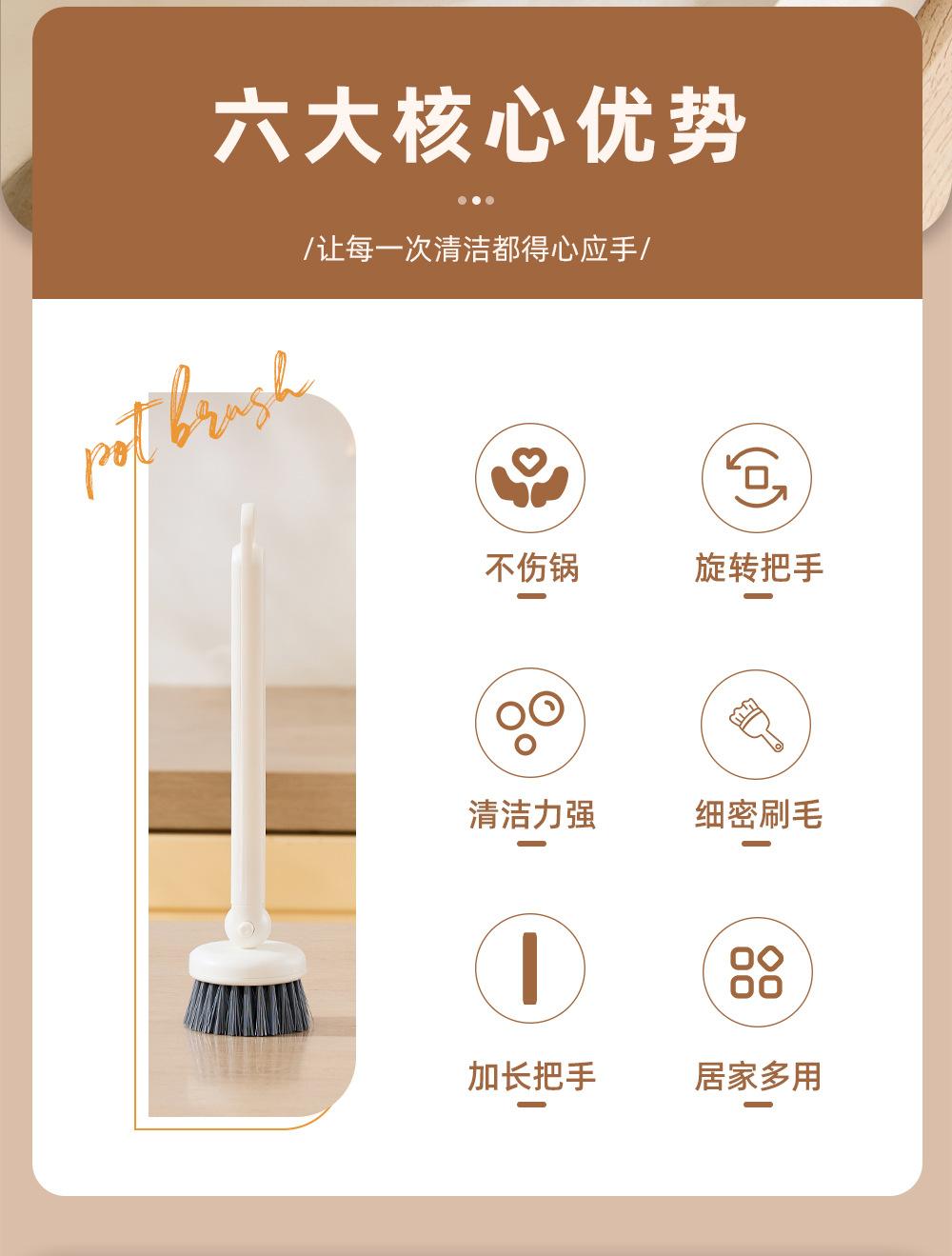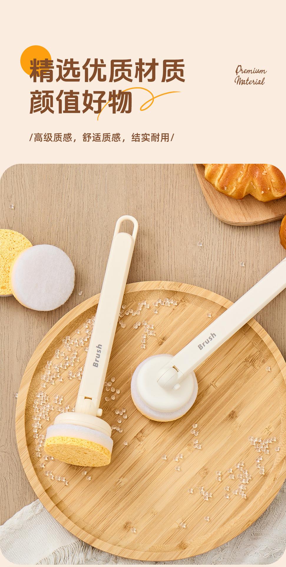 Cepillo de mango largo, creativo y giratorio, ideal para la cocina, especialmente para lavar ollas, descontaminar, descalcificar y limpiar platos. También sirve para lavar platos antiadherentes.