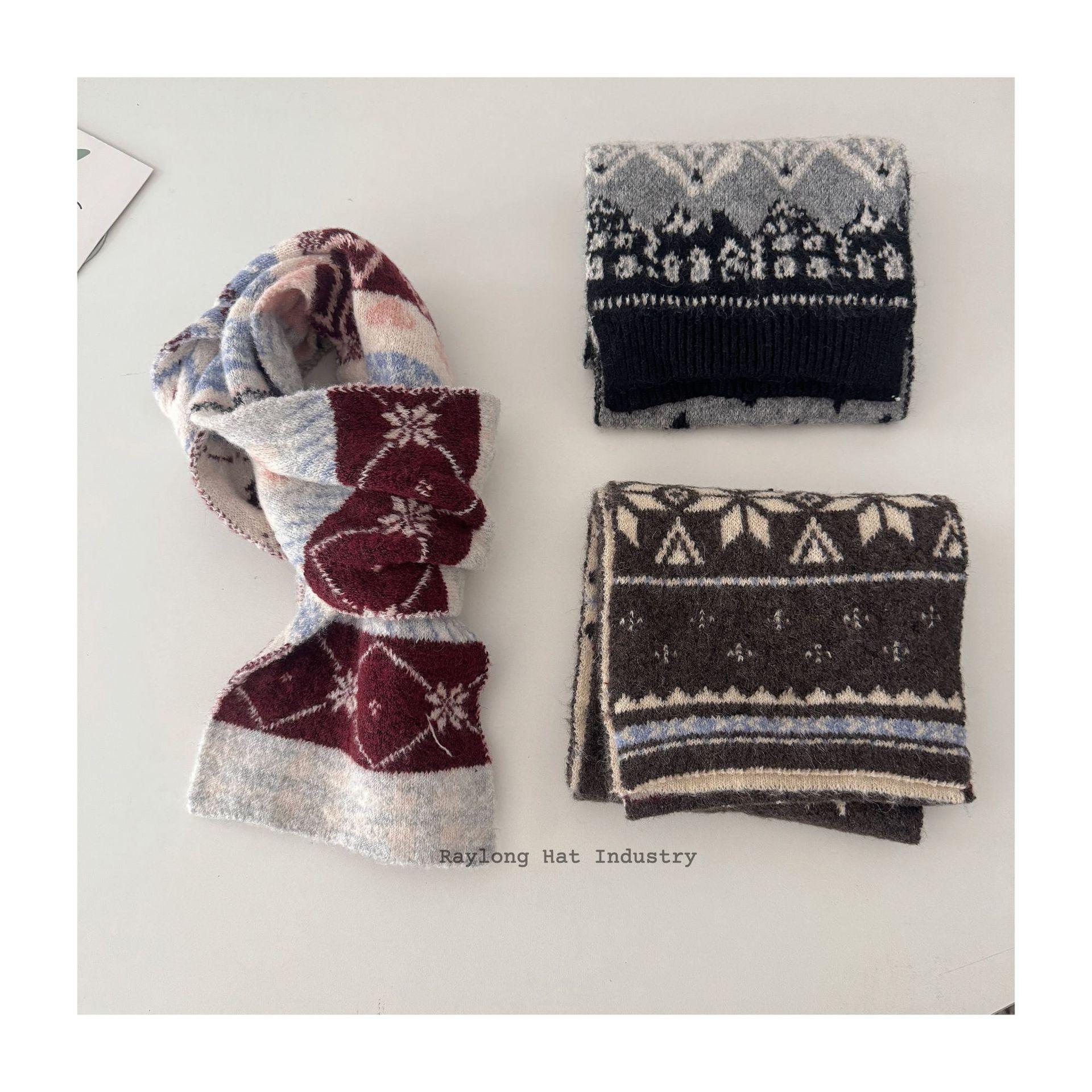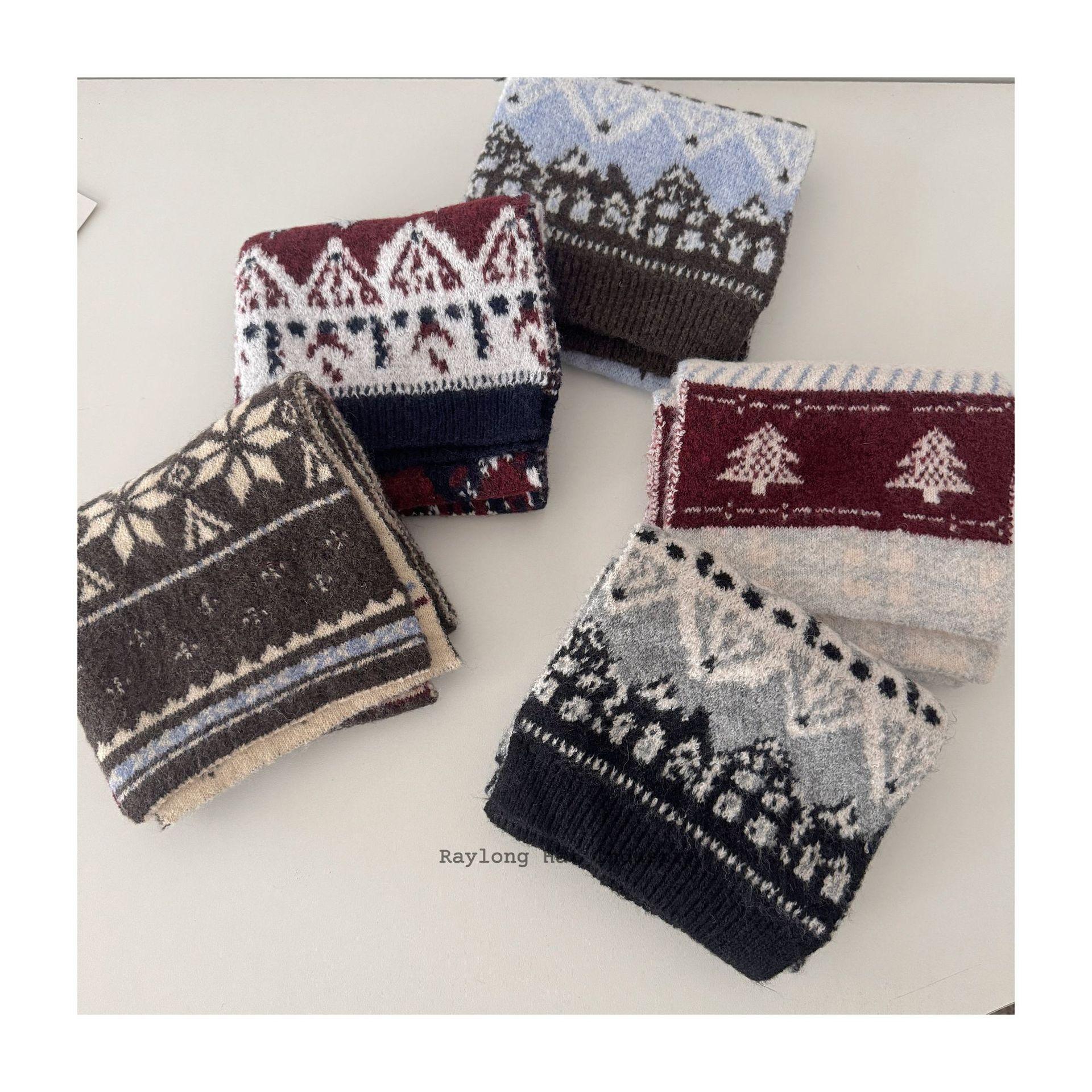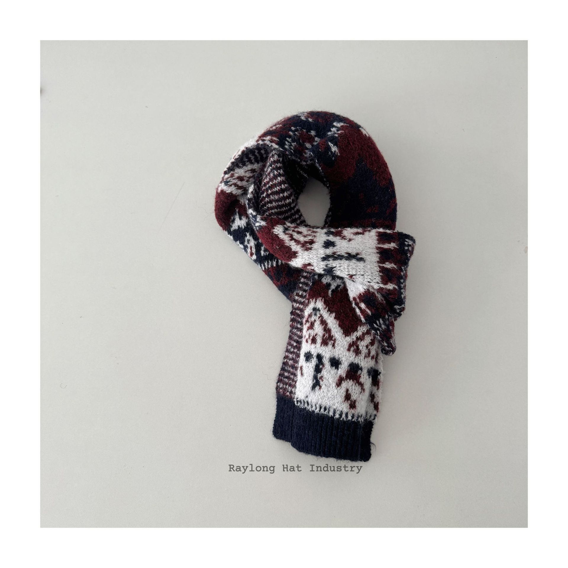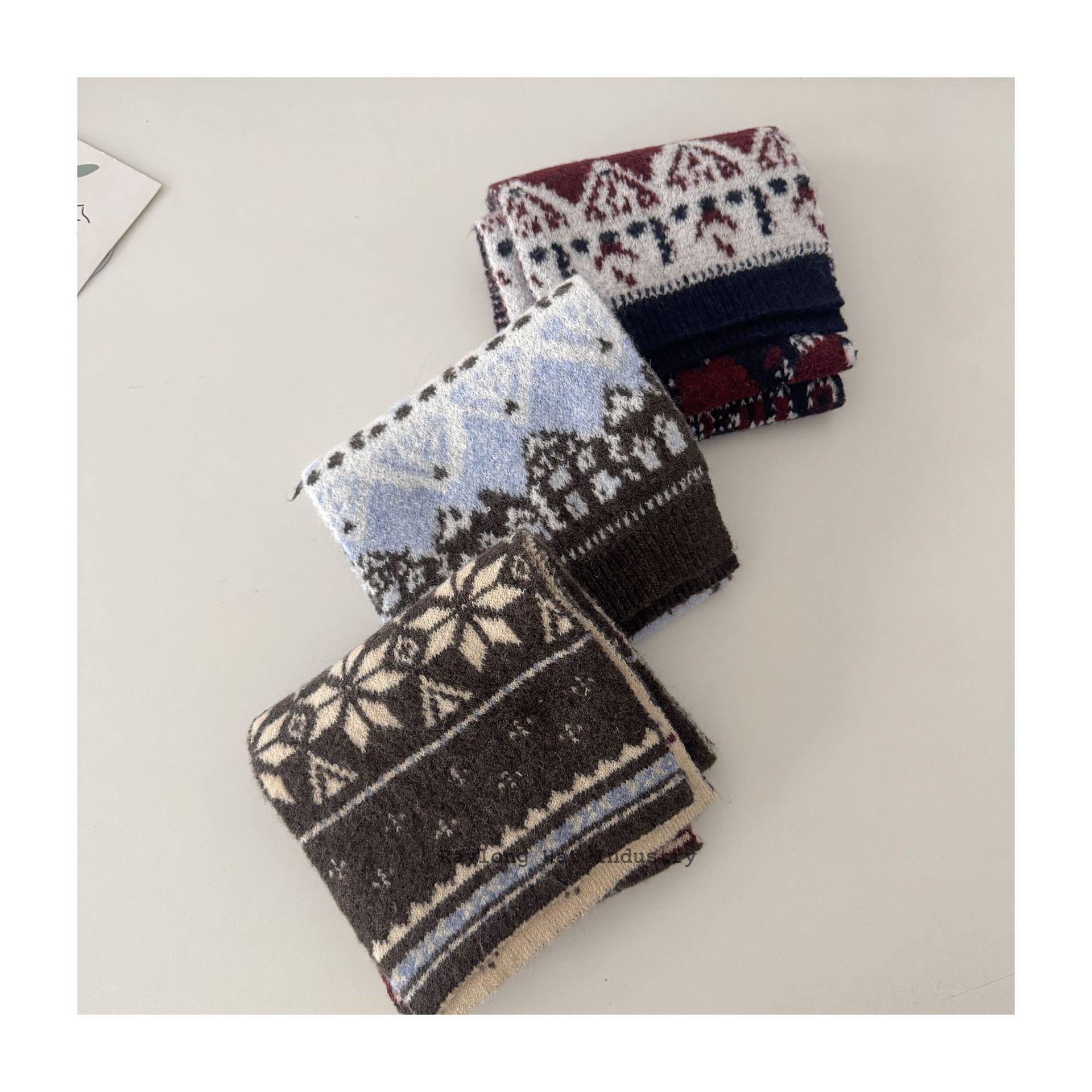 Bufanda de Lana Tejida Retro para Niños Estilo Coreano Estilo Fair Isle Vintage para Niños y Niñas Calentador de Cuello Versátil a Prueba de Viento
