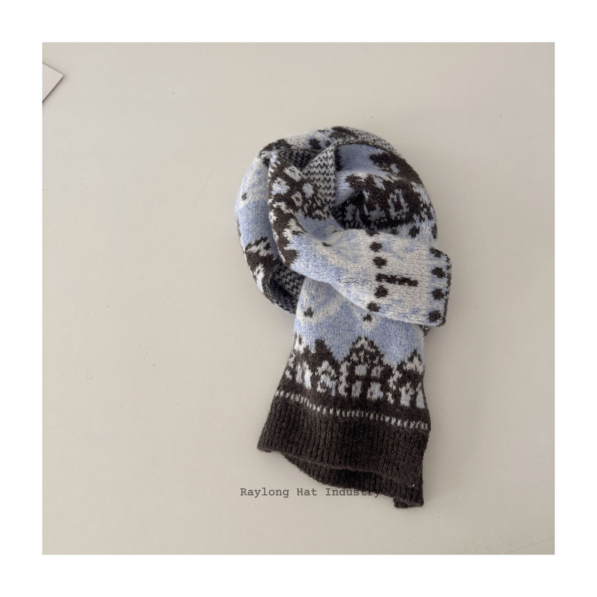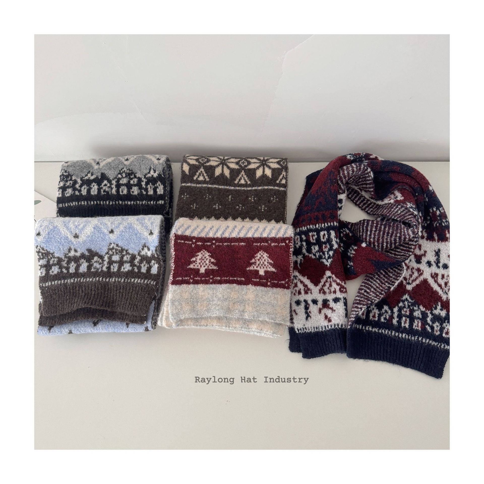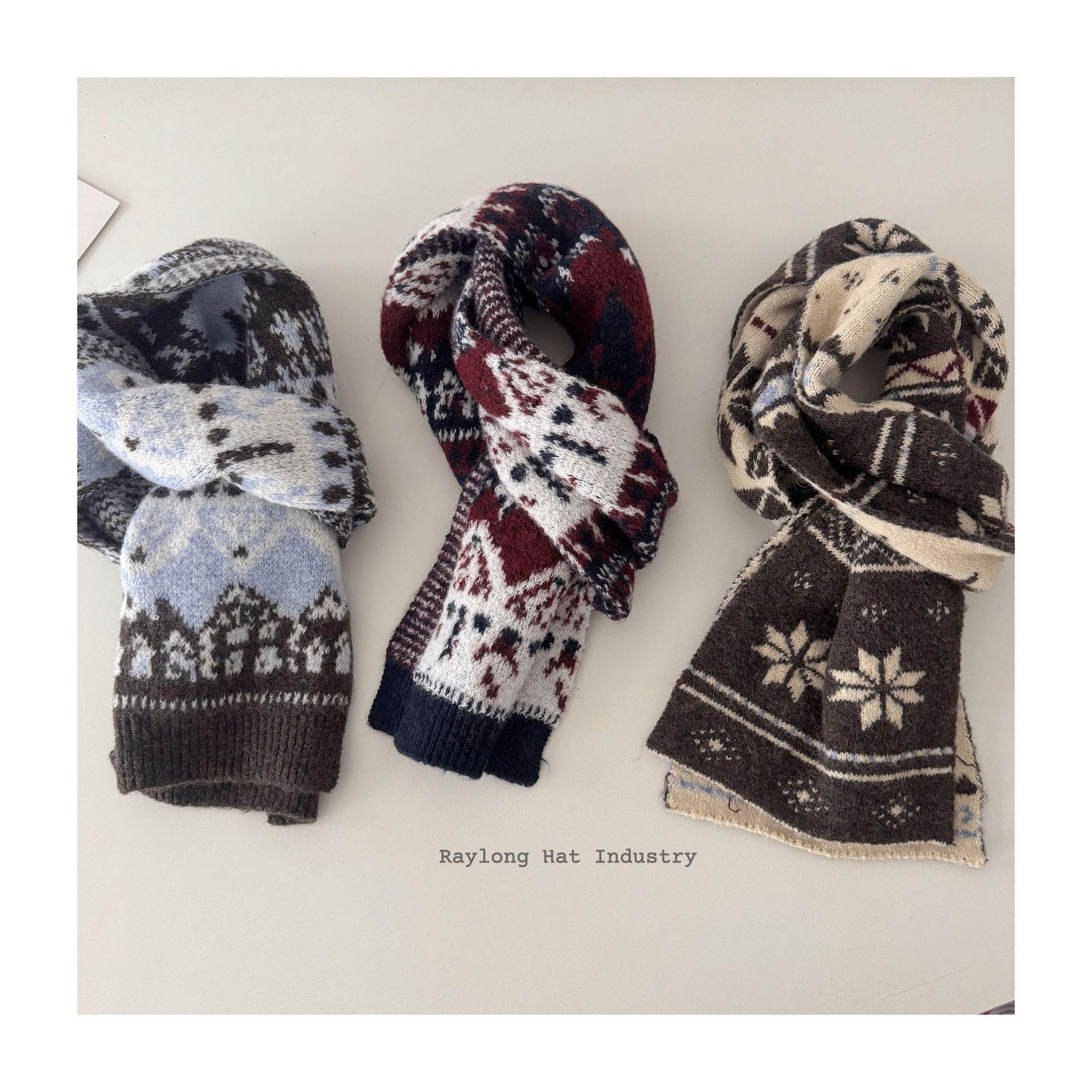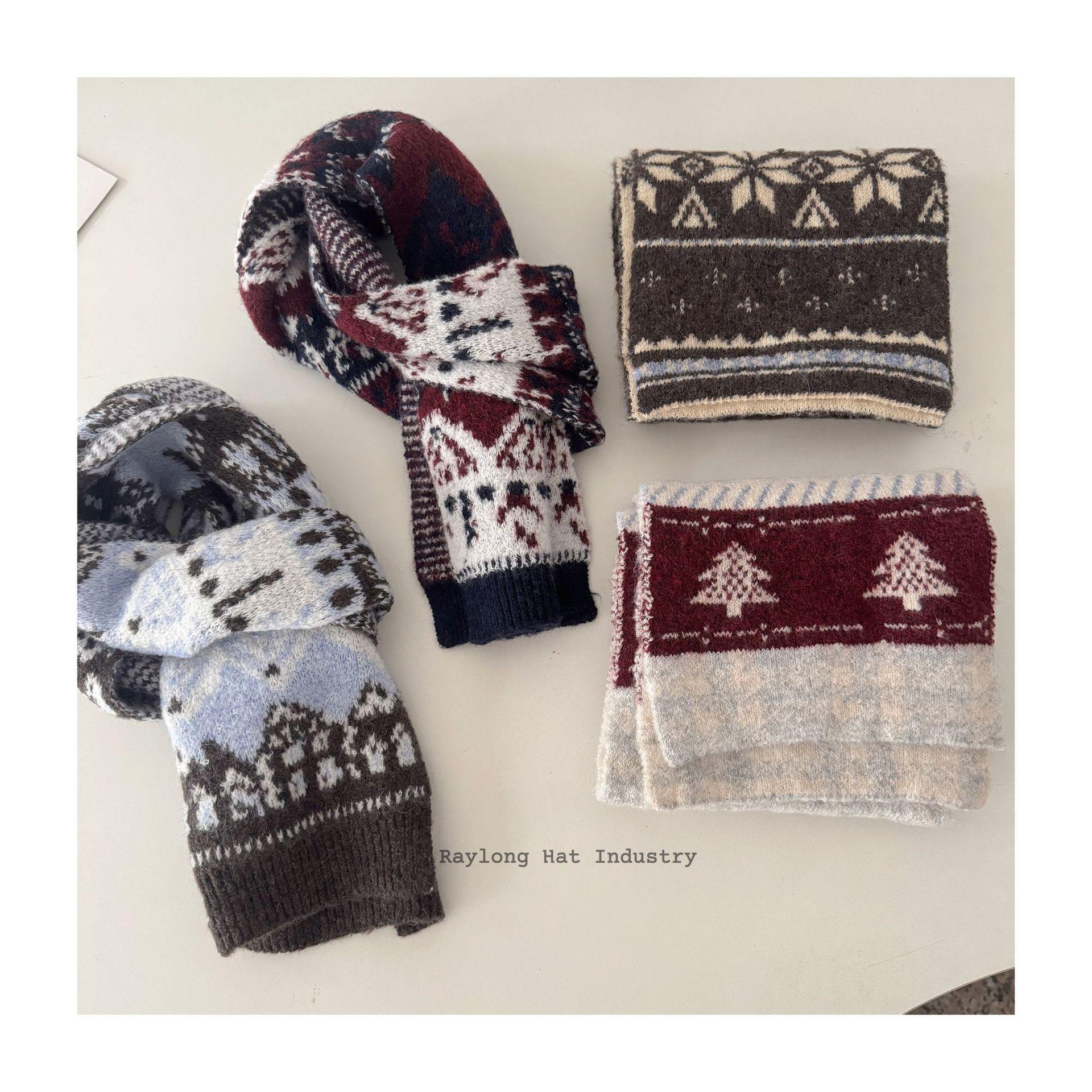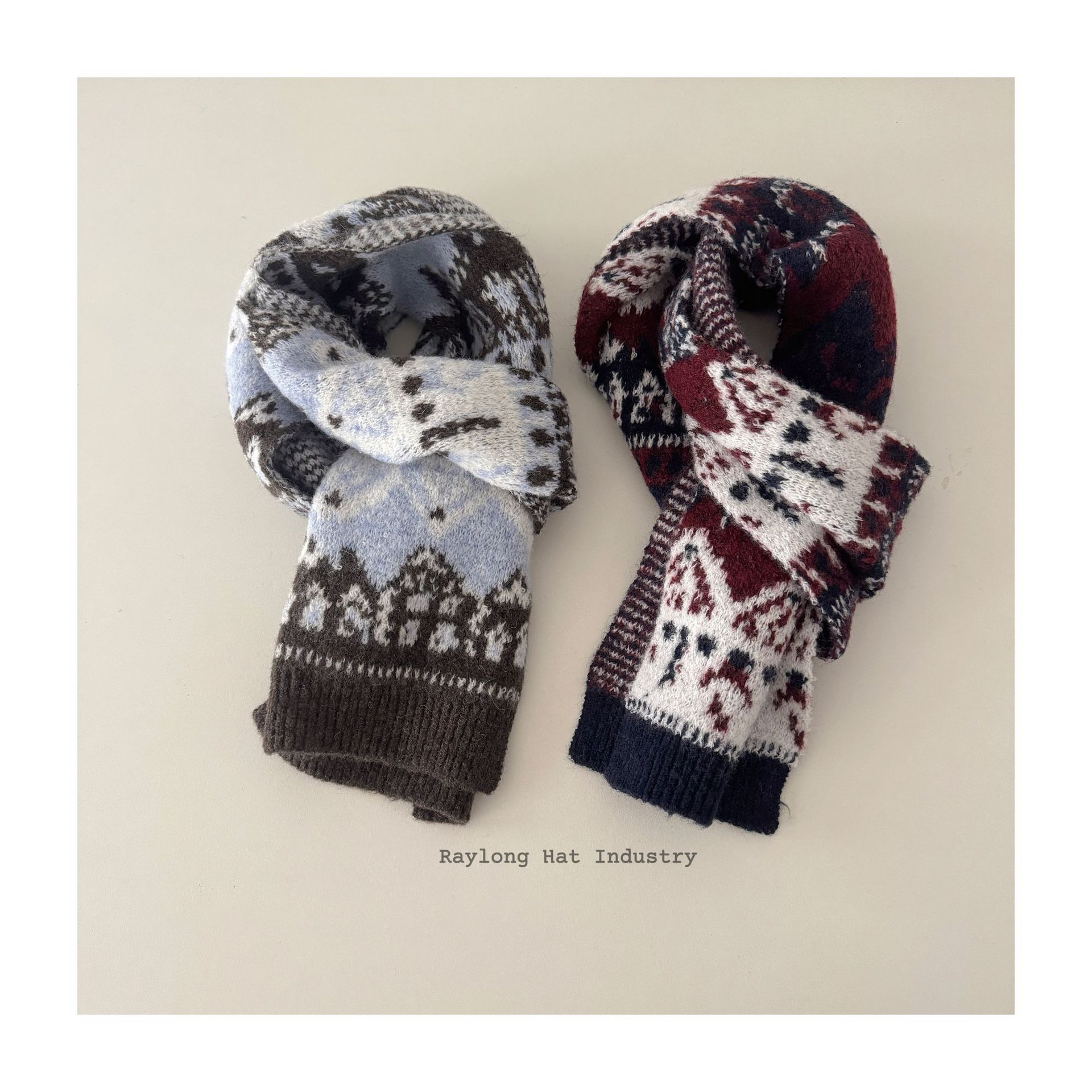 Bufanda de Lana Tejida Retro para Niños Estilo Coreano Estilo Fair Isle Vintage para Niños y Niñas Calentador de Cuello Versátil a Prueba de Viento