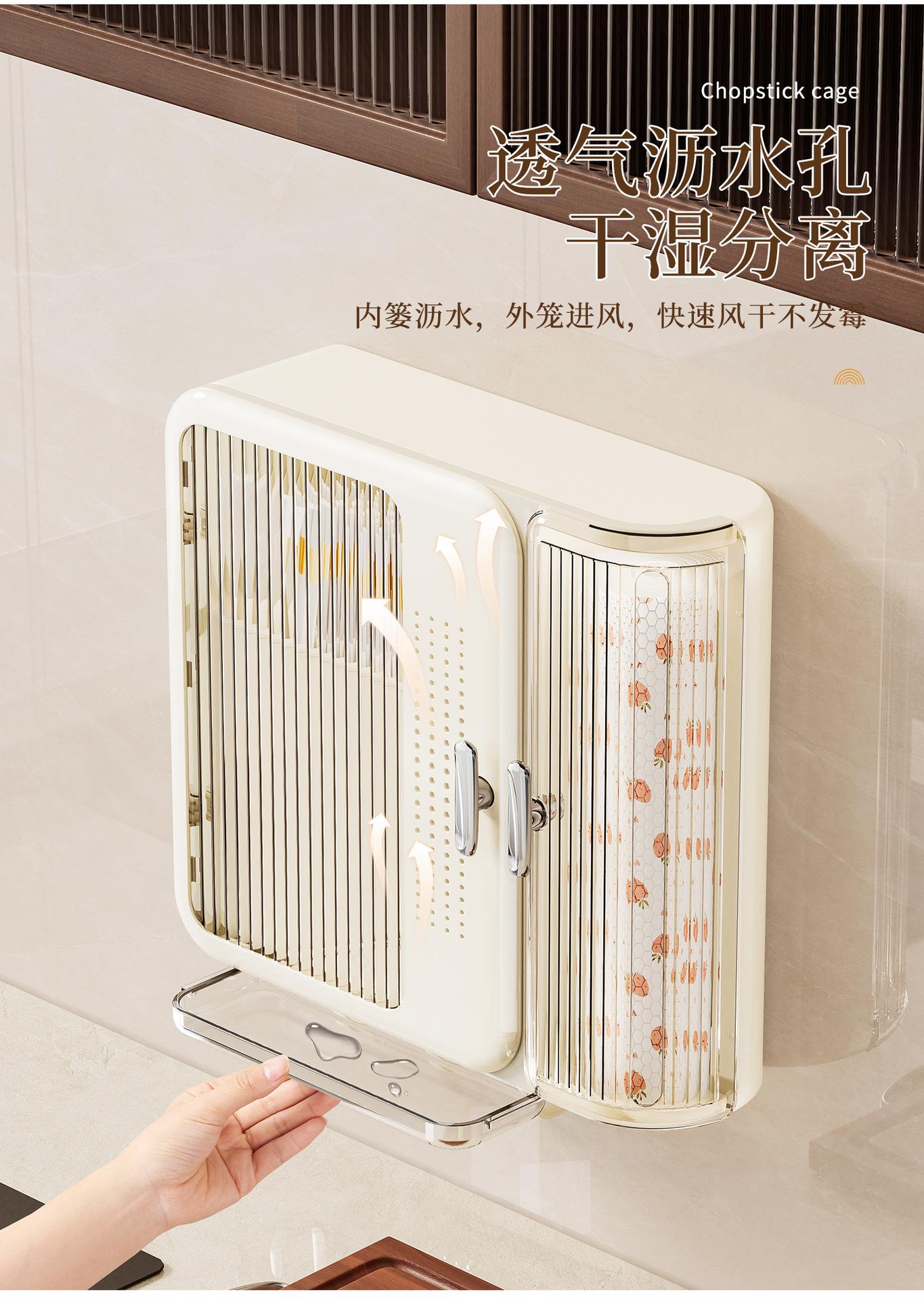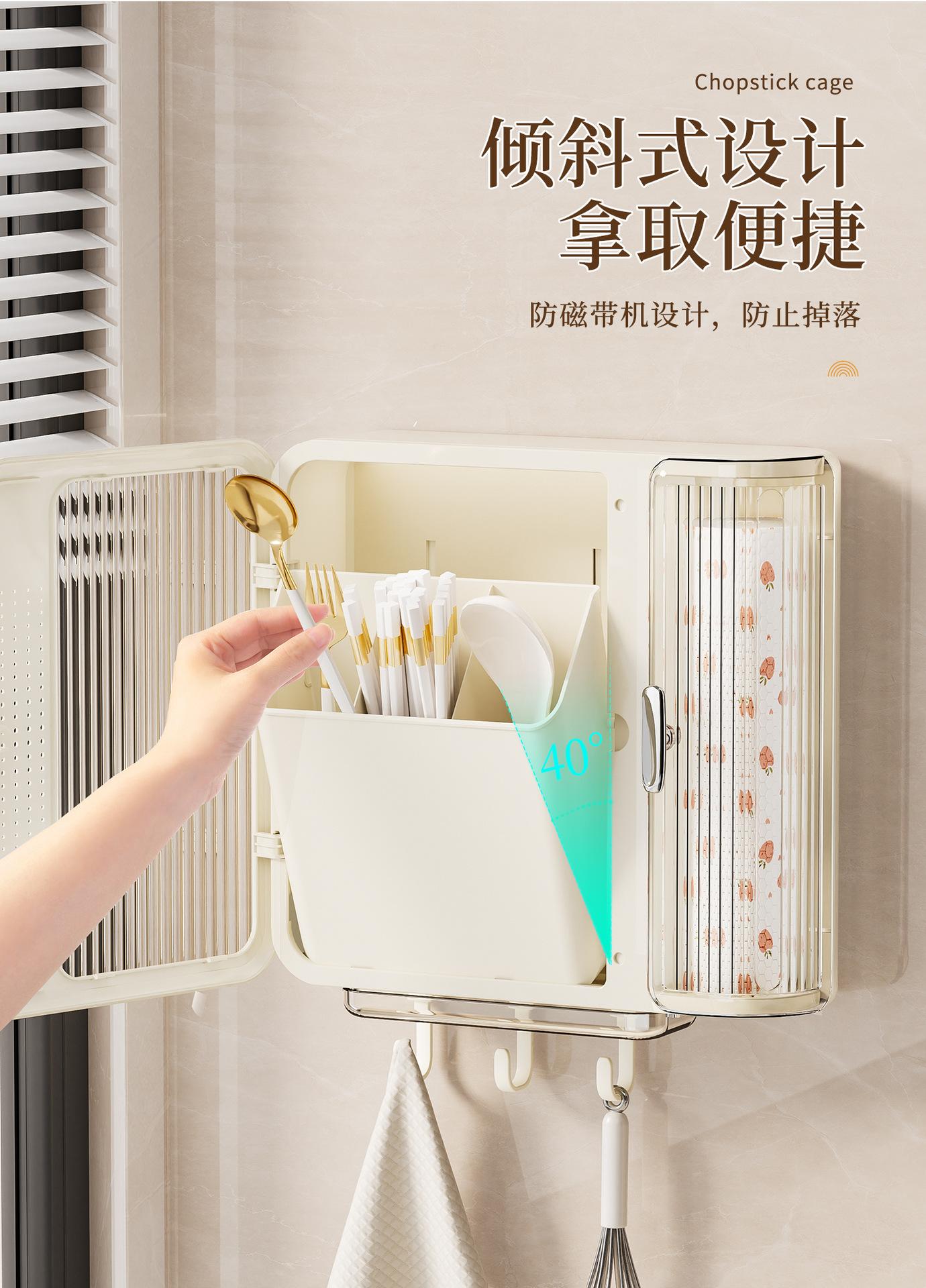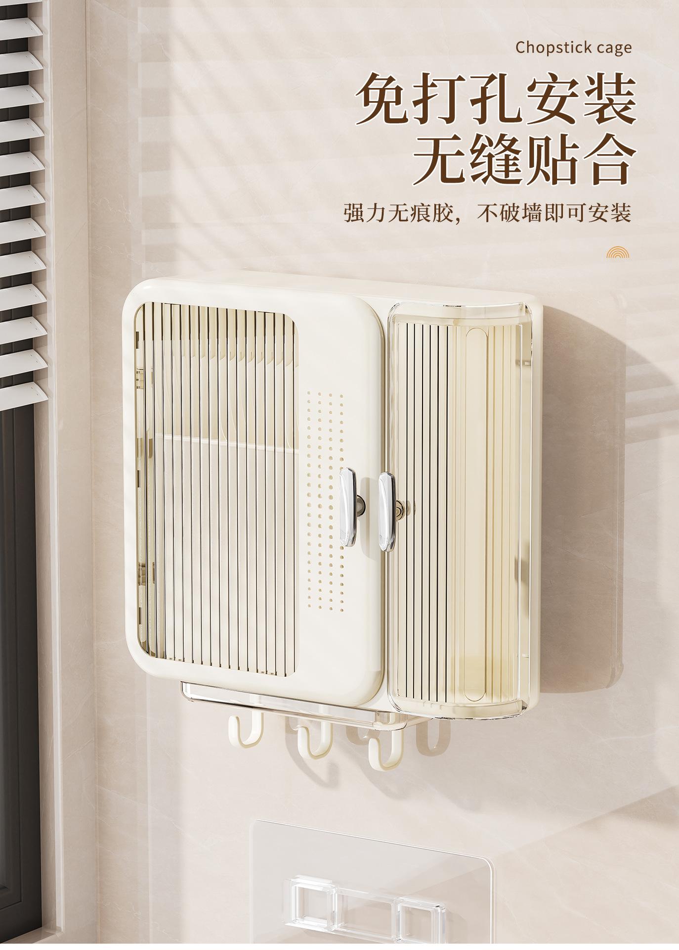 Portapalillos sin perforaciones, jaula para palillos, estante de almacenamiento de cocina, tubo de almacenamiento para cucharas, plástico con drenaje, caja de almacenamiento para palillos montada en la pared