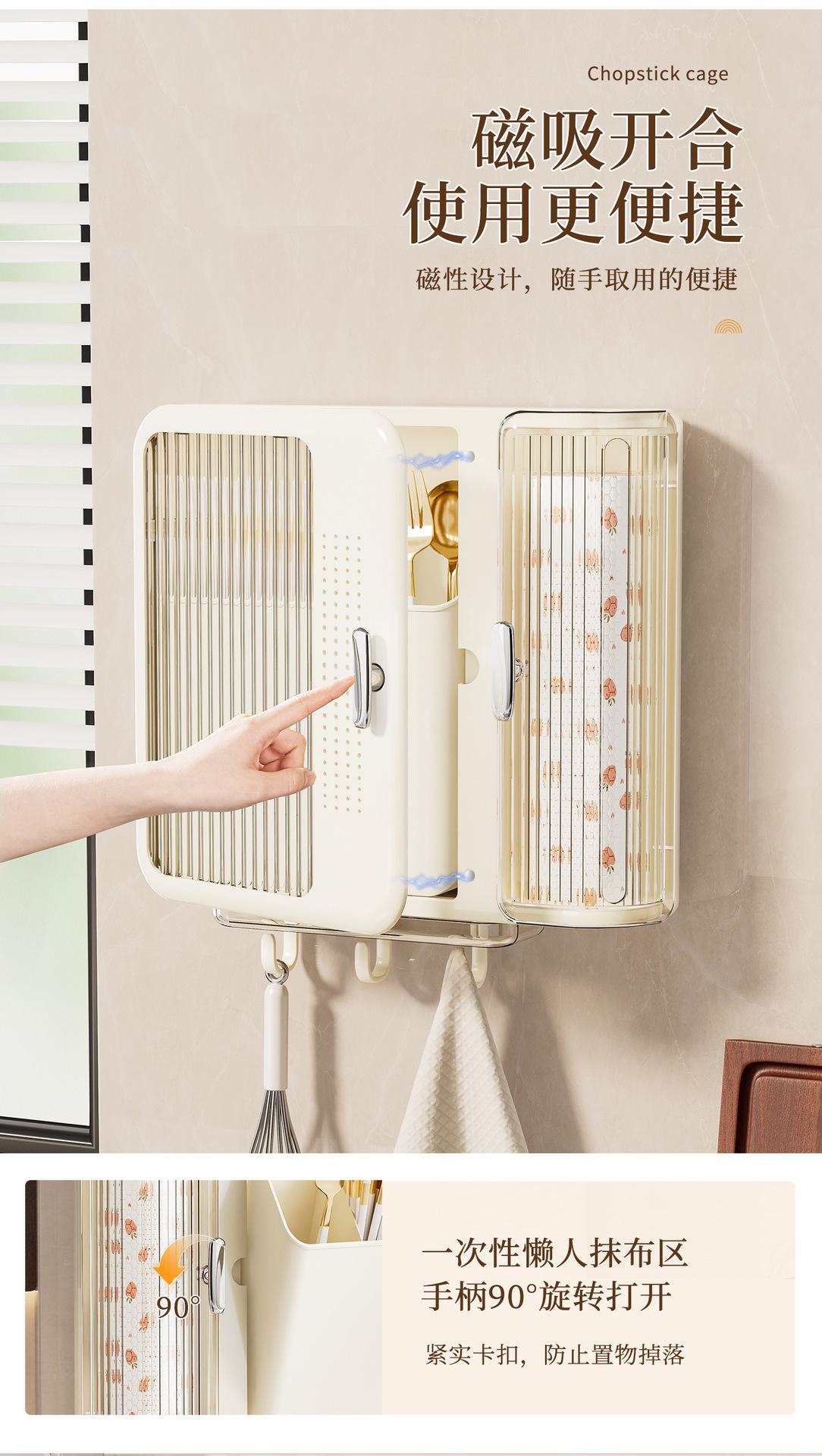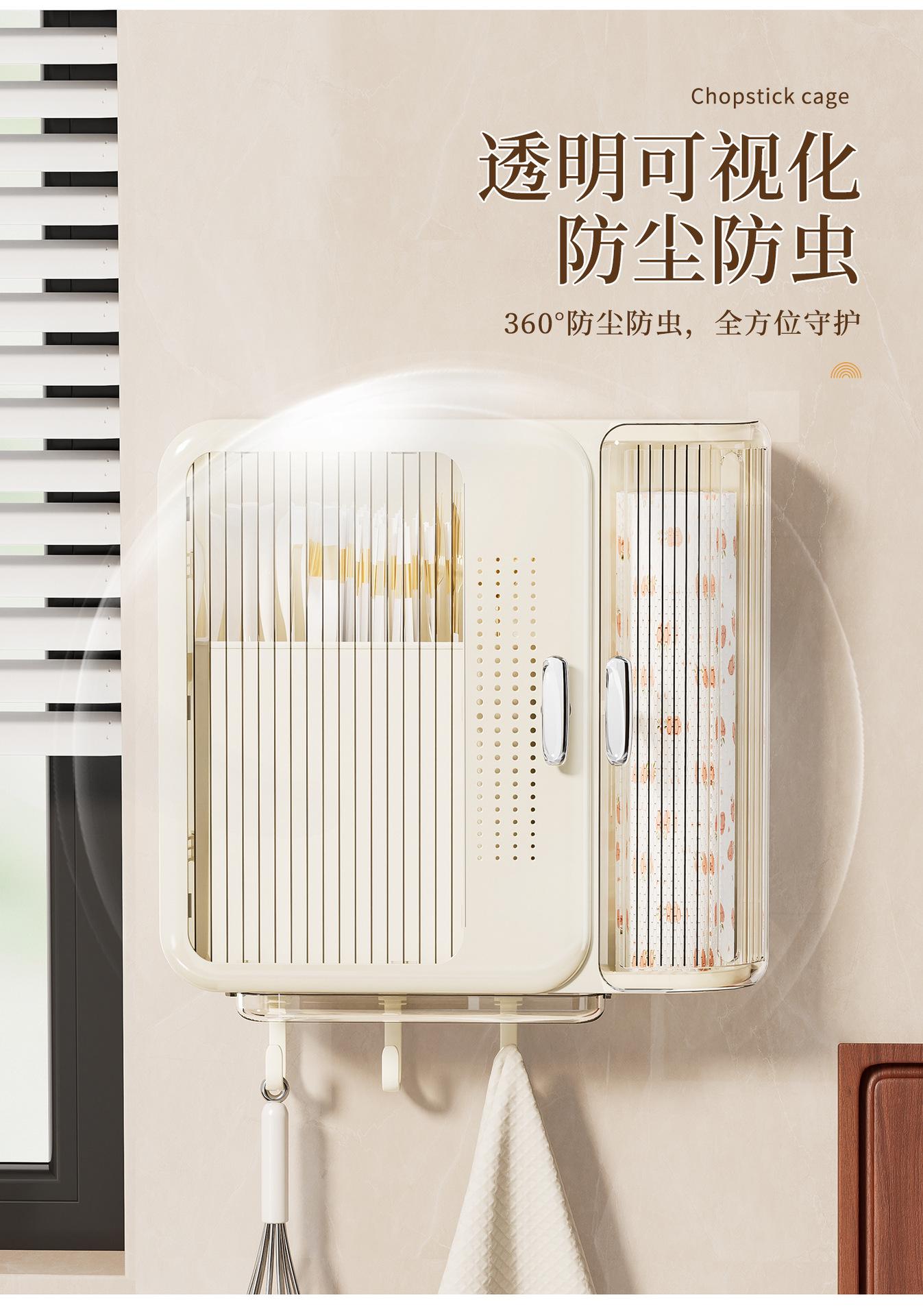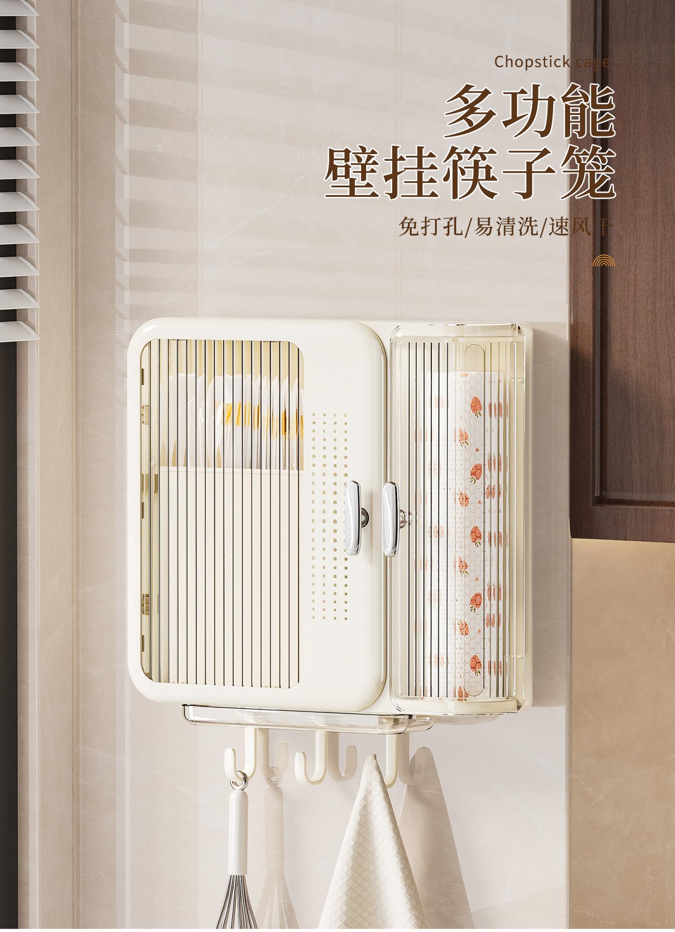 Portapalillos sin perforaciones, jaula para palillos, estante de almacenamiento de cocina, tubo de almacenamiento para cucharas, plástico con drenaje, caja de almacenamiento para palillos montada en la pared
