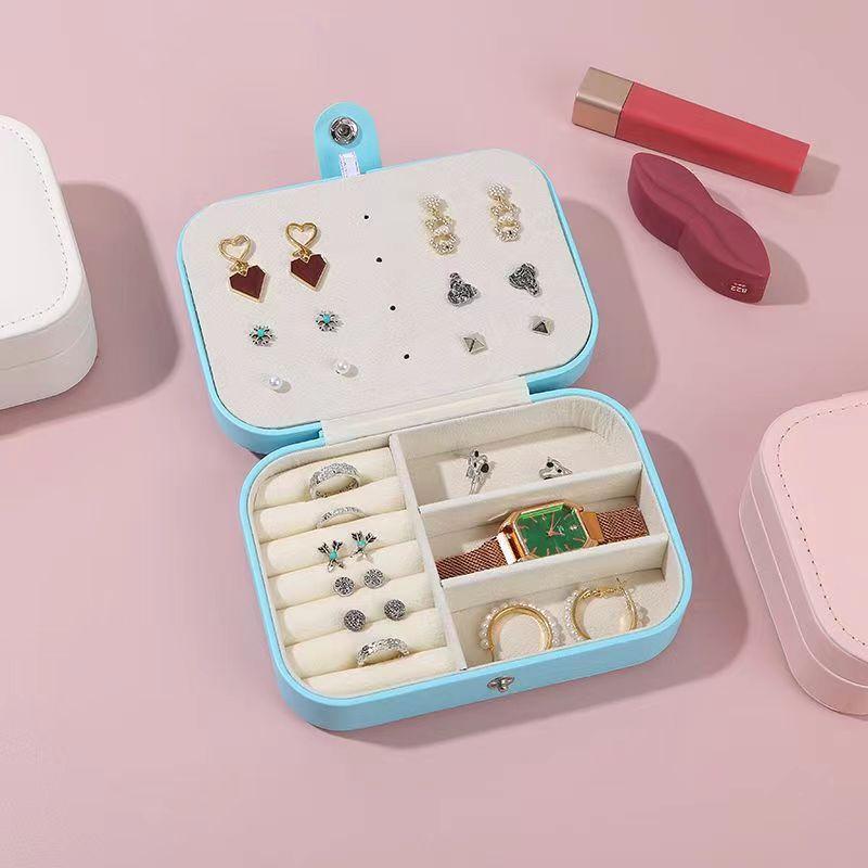 Caja de Joyería Organizador de Joyería Doble Capa Arete Anillo Terciopelo PU Caja de Joyería Amazon Caja de Joyería Portátil Venta al por Mayor