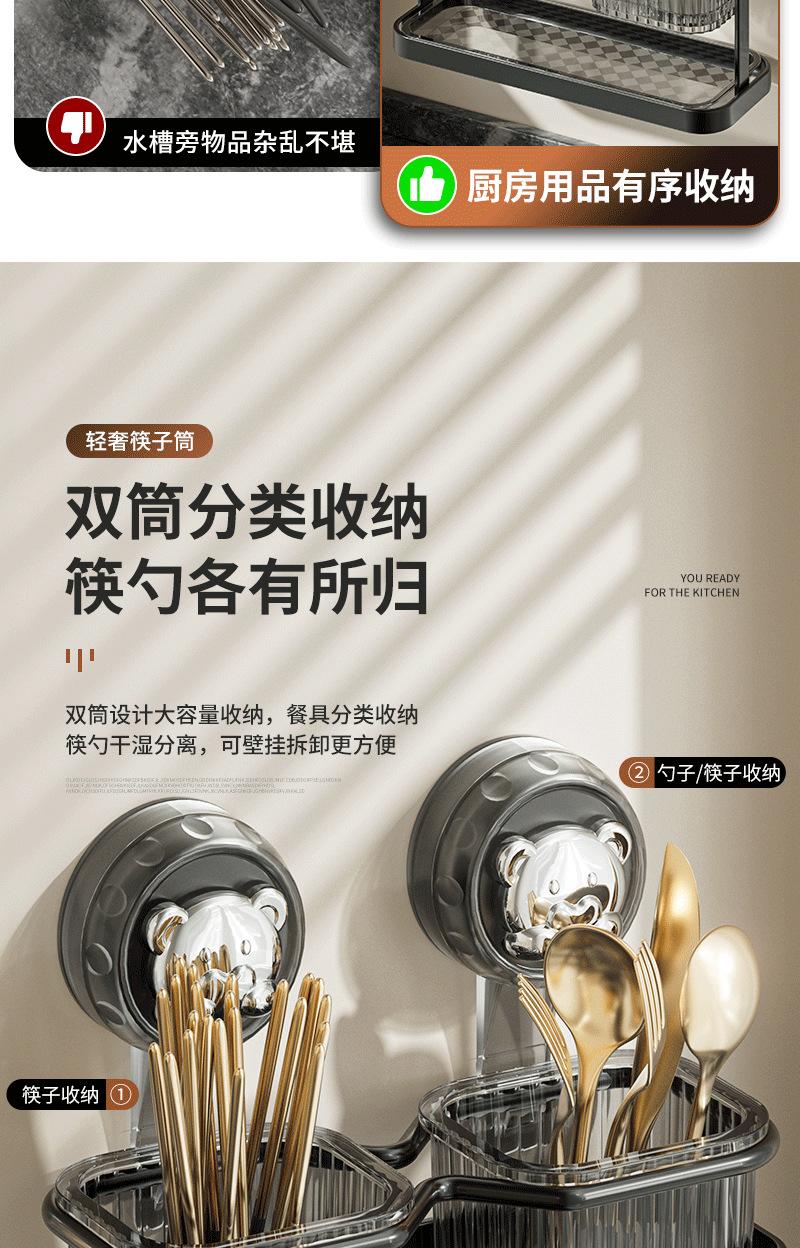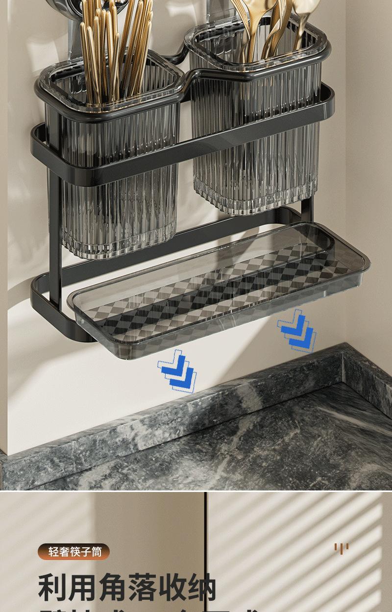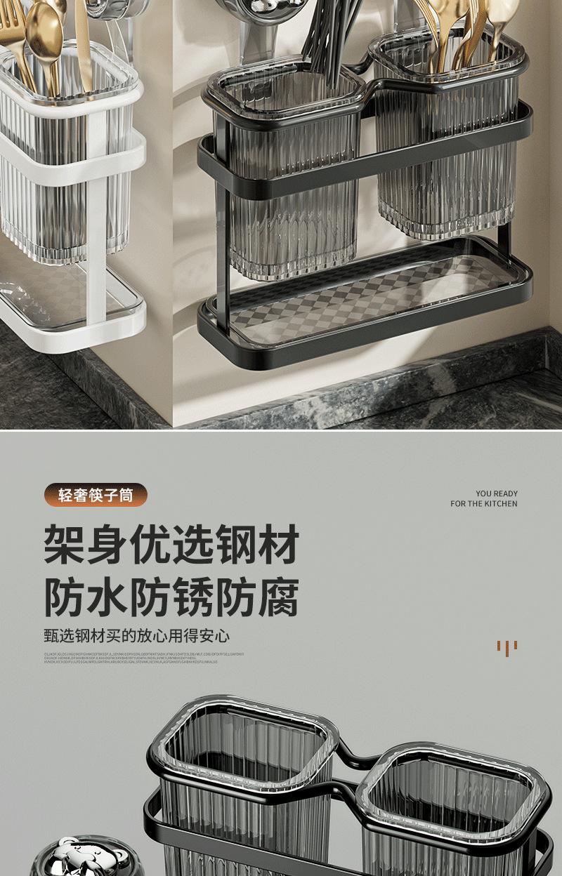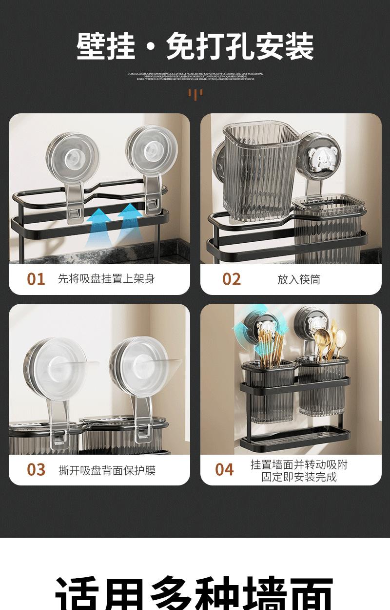 Soporte para Palillos con Ventosa, Estante de Cocina Montado en la Pared, Caja de Almacenamiento para Palillos Doméstica sin Perforaciones, Escurridor para Palillos, Soporte para Palillos
