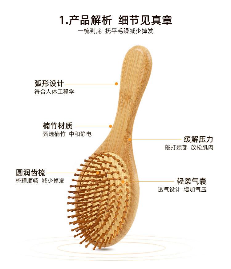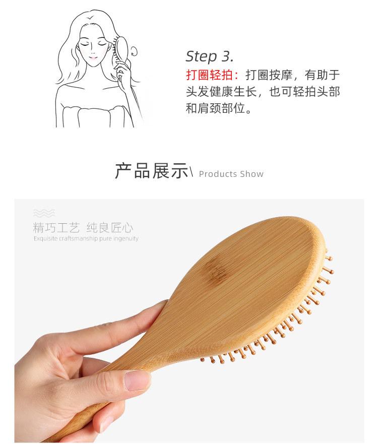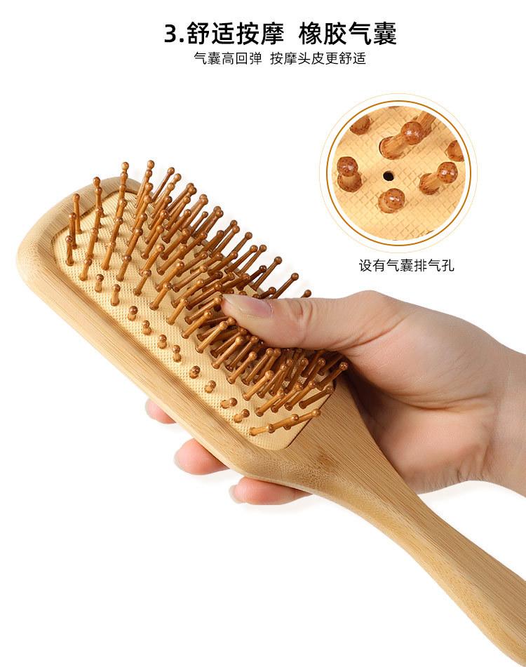 Peine de masaje con cojín de aire de bambú, peine grande de madera maciza, peine de masaje para cabello liso, peine antiestático con bolsa de aire para el cuidado del cabello.