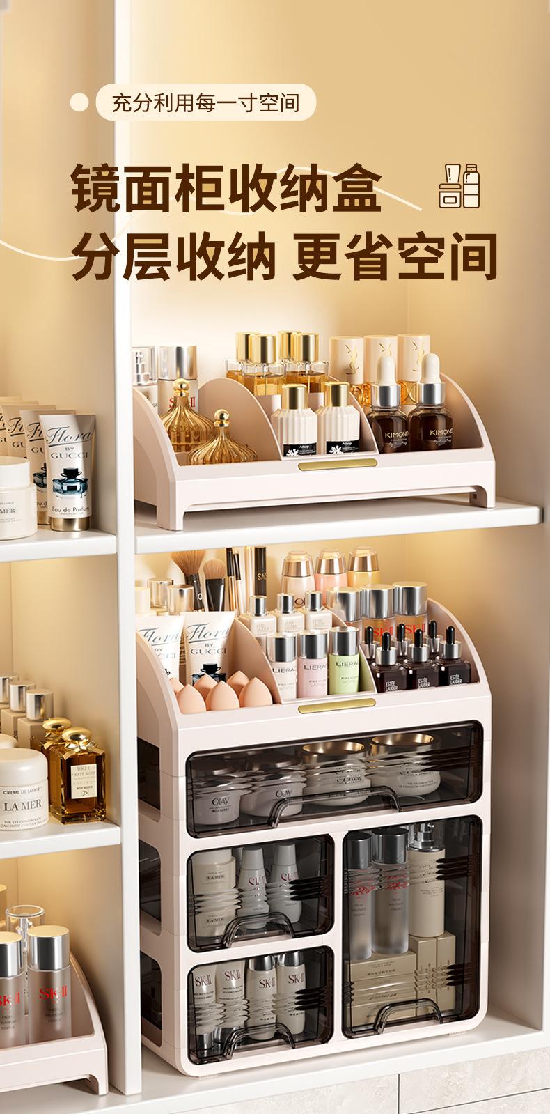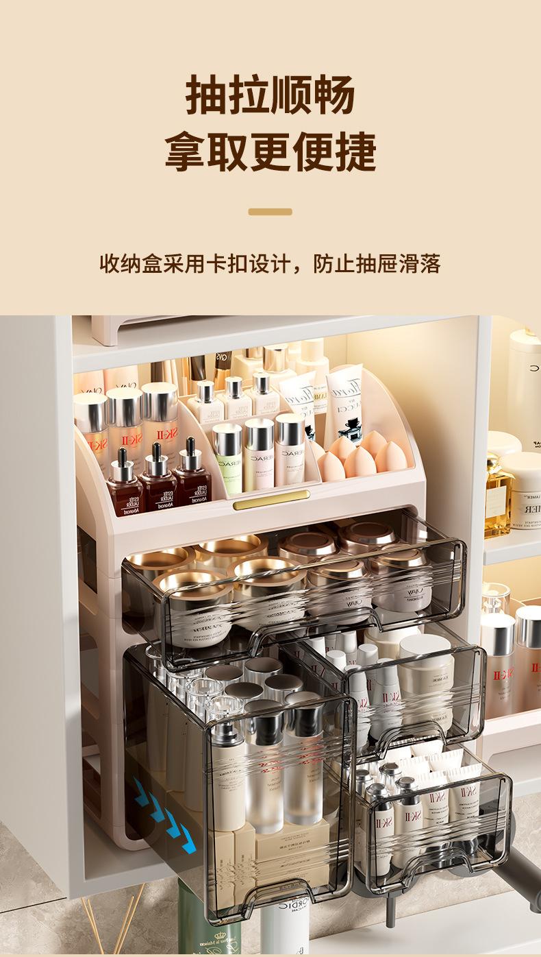 Caja de Almacenamiento de Cosméticos de Escritorio Cuidado de la Piel a Prueba de Polvo Tipo Cajón Doméstico Lápiz Labial Tocador Joyero Estante de Almacenamiento