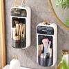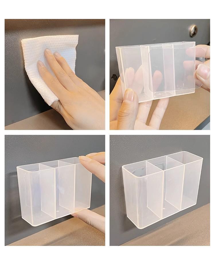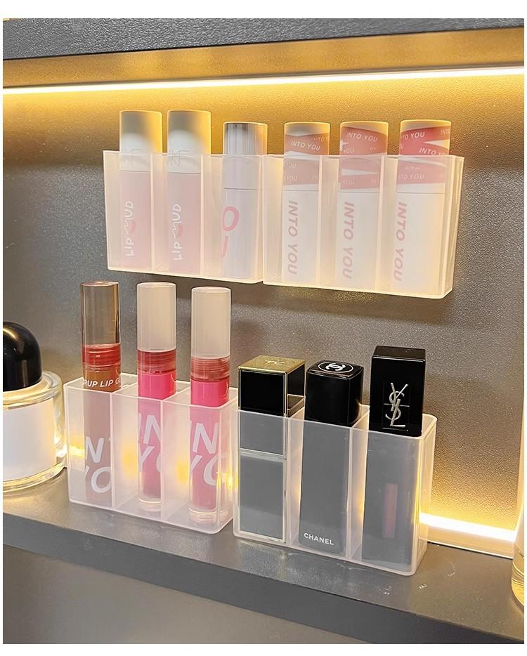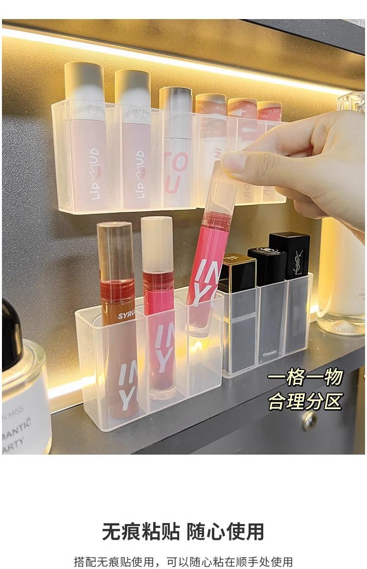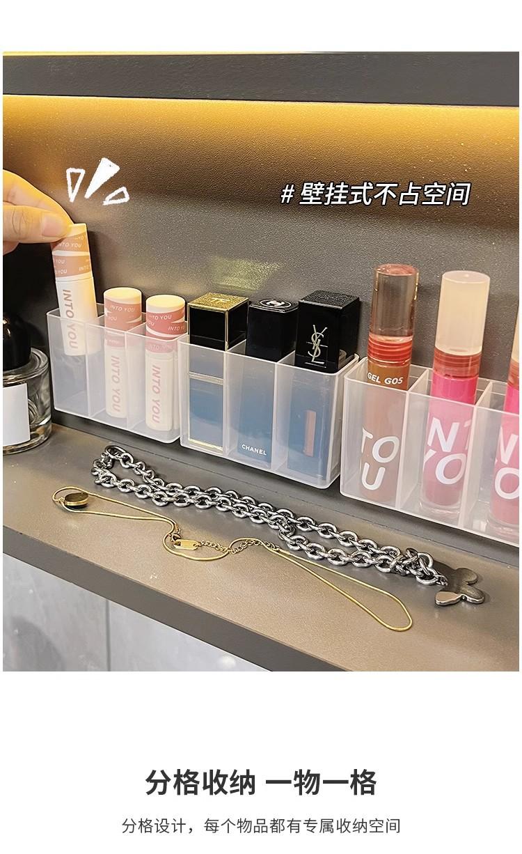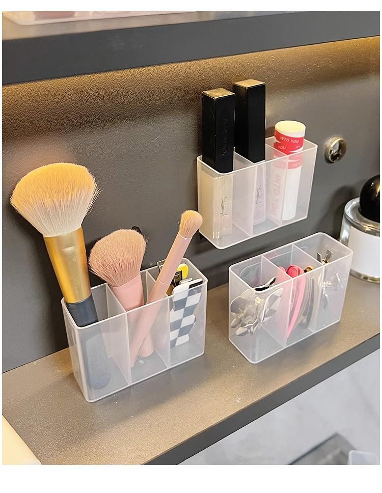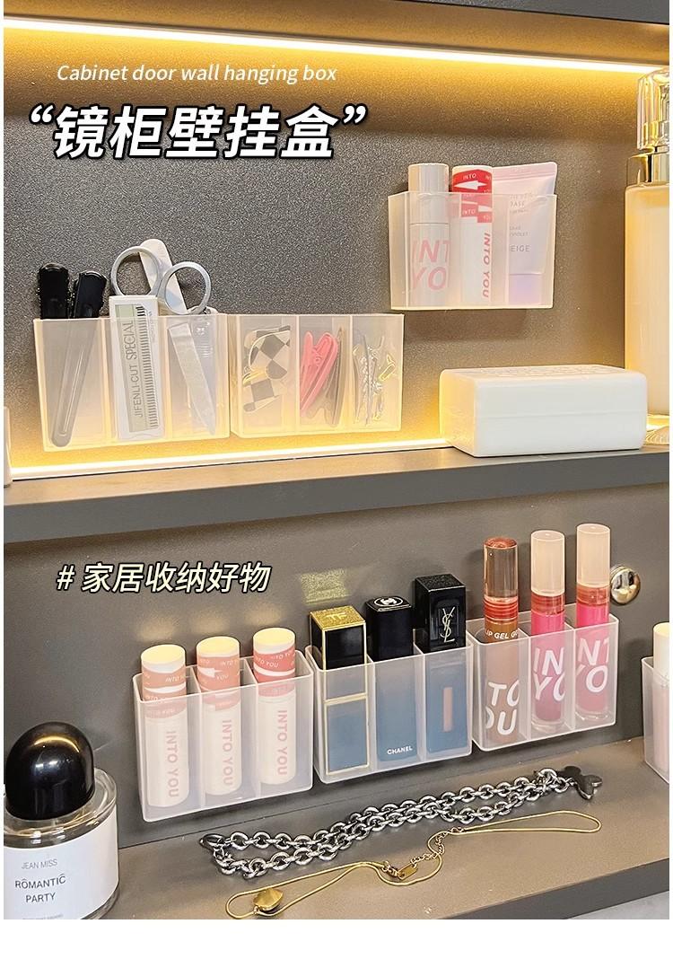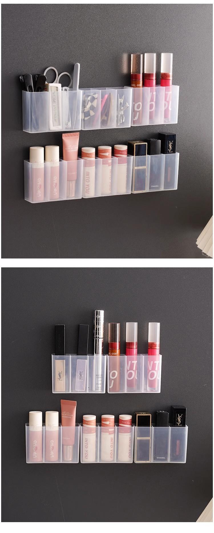 Caja de Compartimentos Montada en la Pared, Caja de Almacenamiento de Artículos de Escritorio sin Perforaciones, Pinza para Cejas, Lápiz para Cejas, Brocha, Cosméticos, Caja de Almacenamiento de Labiales