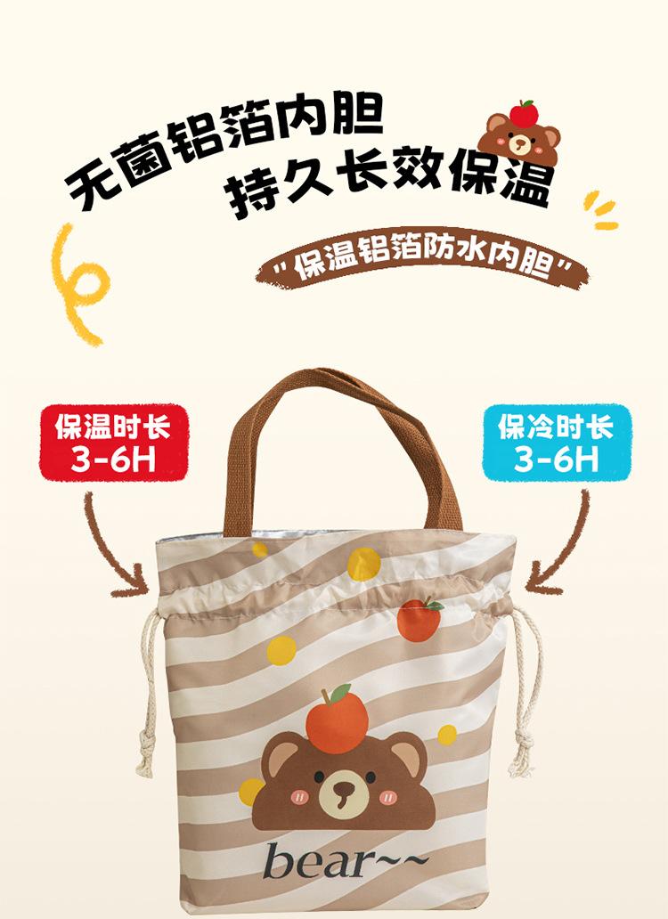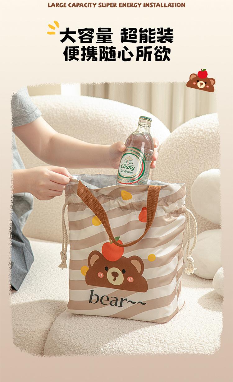 Bolsa Lonchera Aislada de Dibujos Animados con Cordón Aislado de Mano Bolsa Lonchera Portátil para Trabajador de Oficina Bolsa Tote