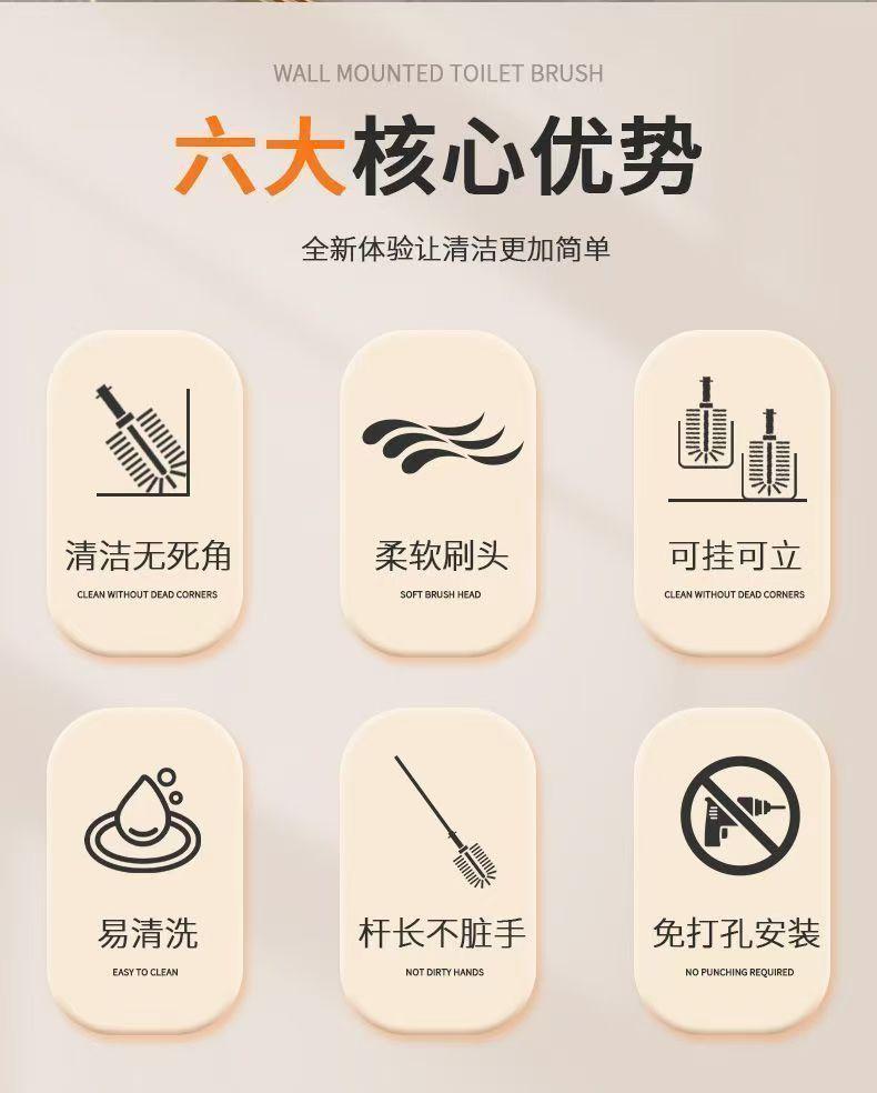 Cepillo de Inodoro Doméstico Sin Ángulos Muertos 2025 Nuevo Cepillo de Lavado para Baño Montado en la Pared Cepillo de Inodoro de Mango Largo Set de Regalos