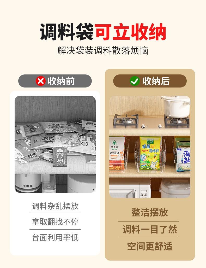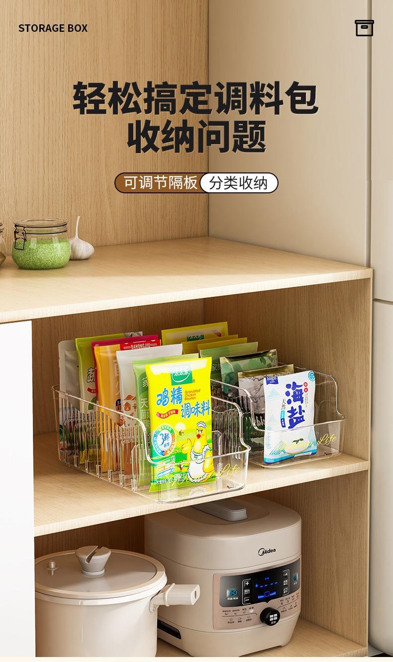 Caja de almacenamiento de plástico, estante para guardar bolsas de condimentos, estante para condimentos de cocina para guardar condimentos, estante de almacenamiento multifuncional para sobres de condimentos
