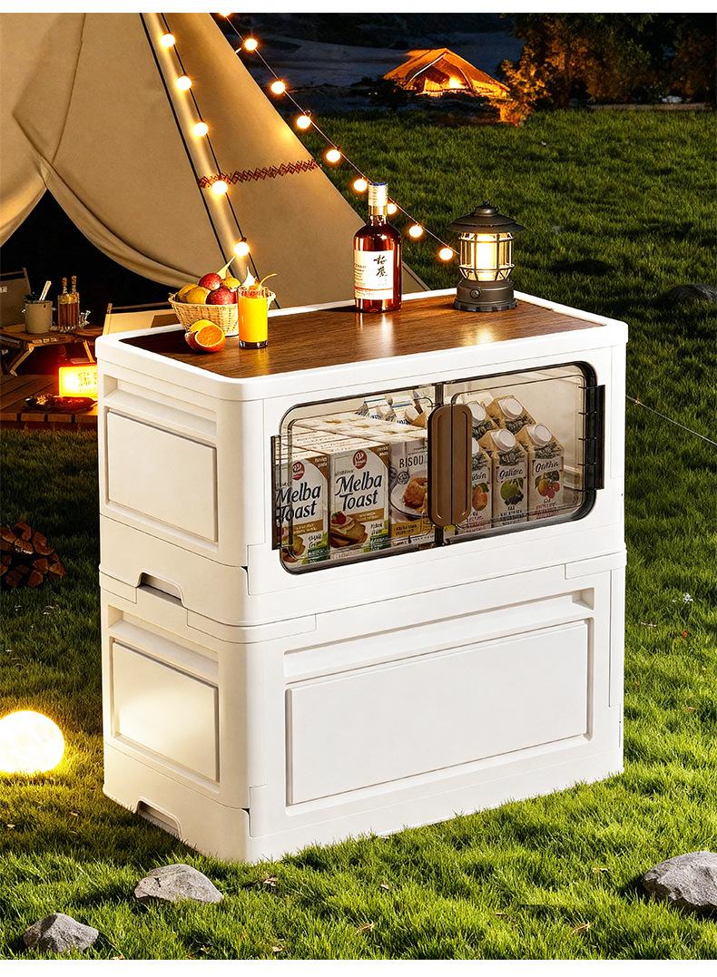 Caja de Almacenamiento para Camping al Aire Libre Sin Instalación Extra Grande Camping Tapa de Madera Caja Plegable Organizador de Maletero de Coche Caja de Almacenamiento