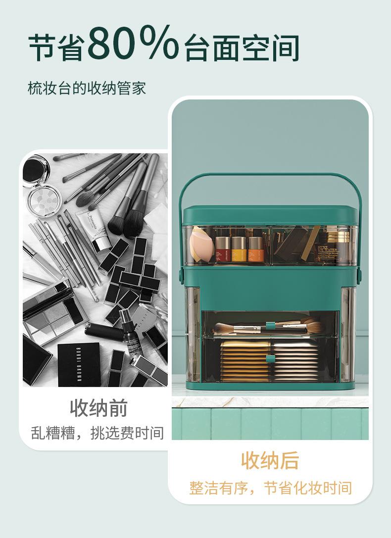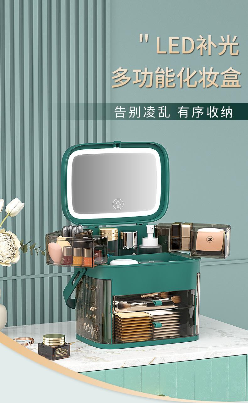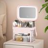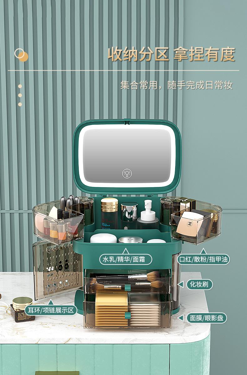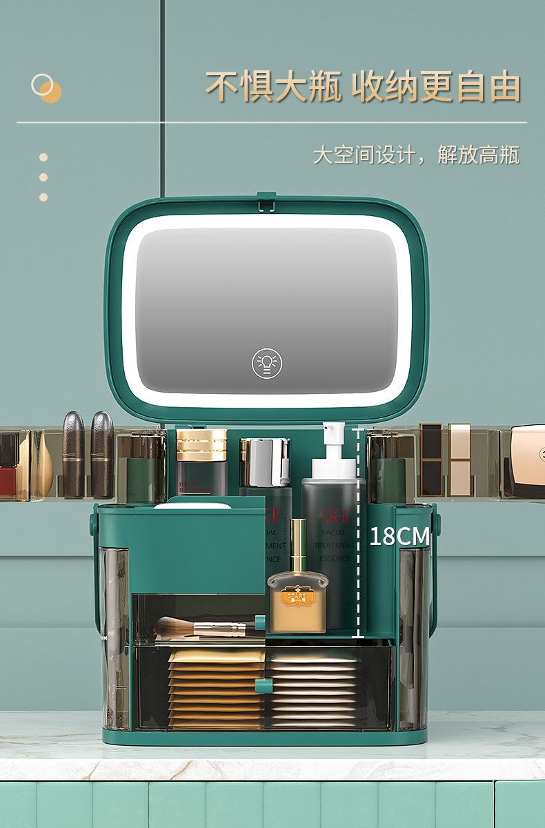 Compra Caja de Almacenamiento de Cosméticos a Prueba de Polvo Cuidado de la Piel Gran Capacidad Estuche de Maquillaje Escritorio LED con Espejo Estante de Almacenamiento al por mayor en Joom.pro