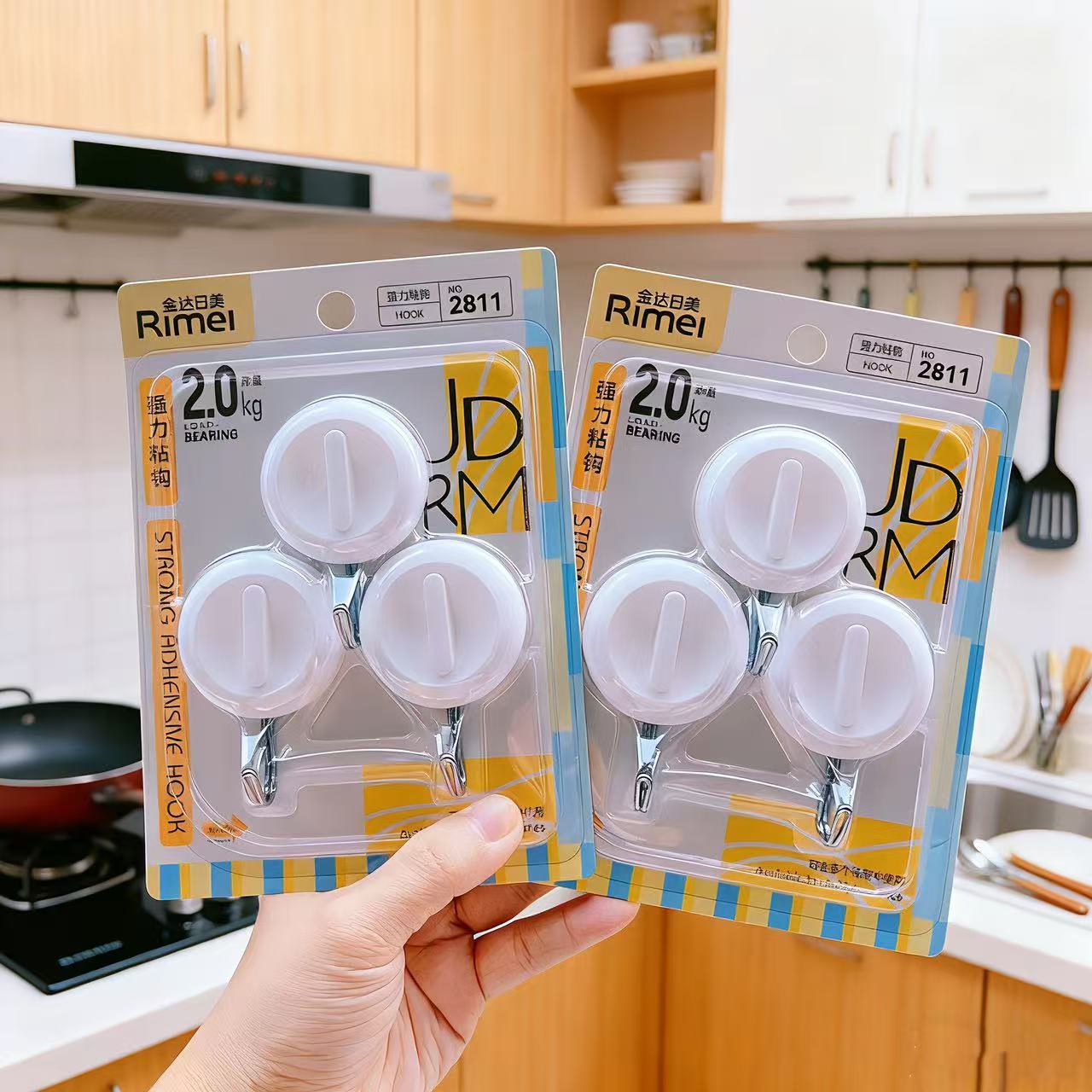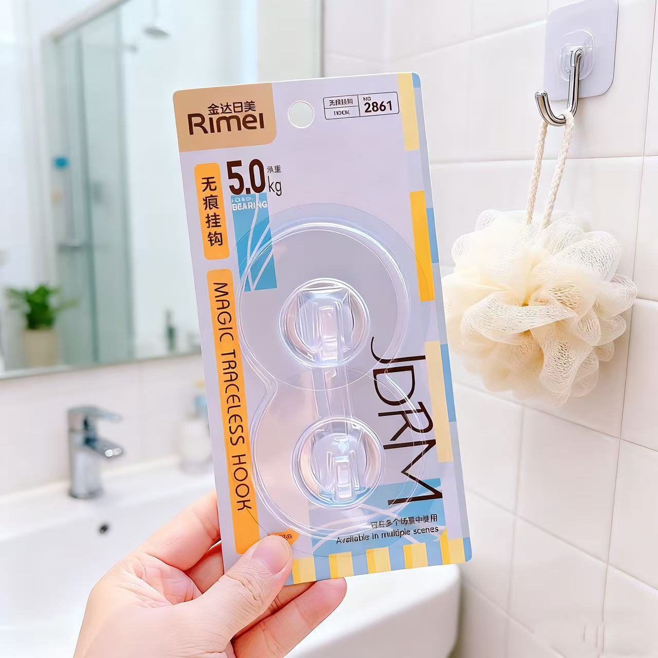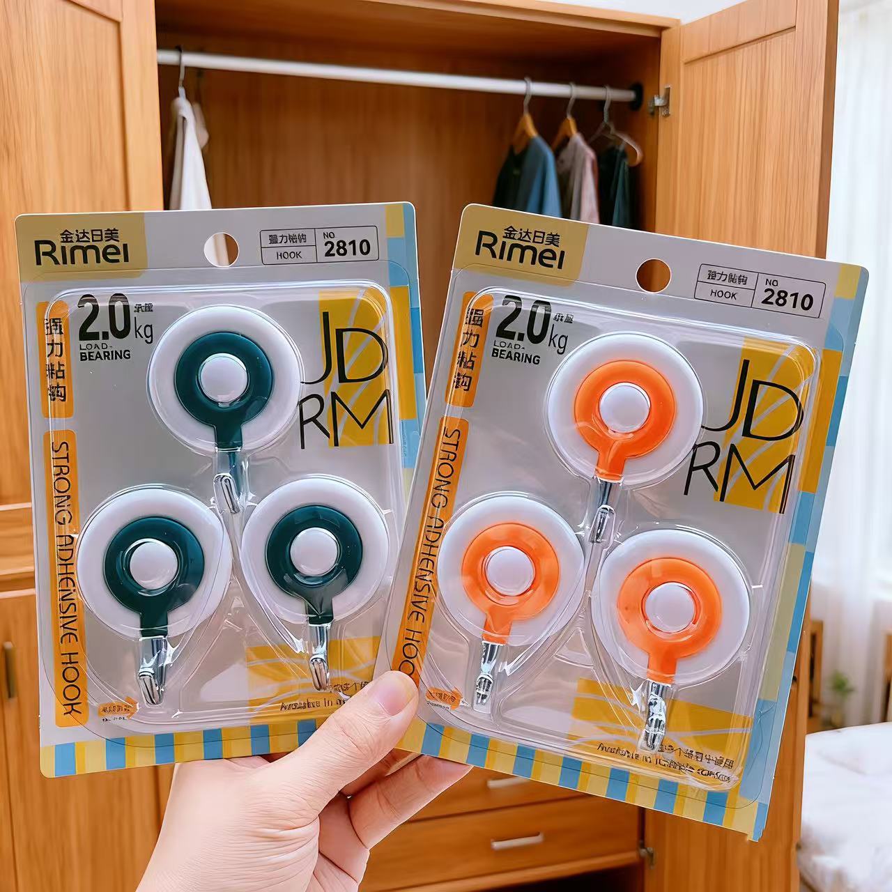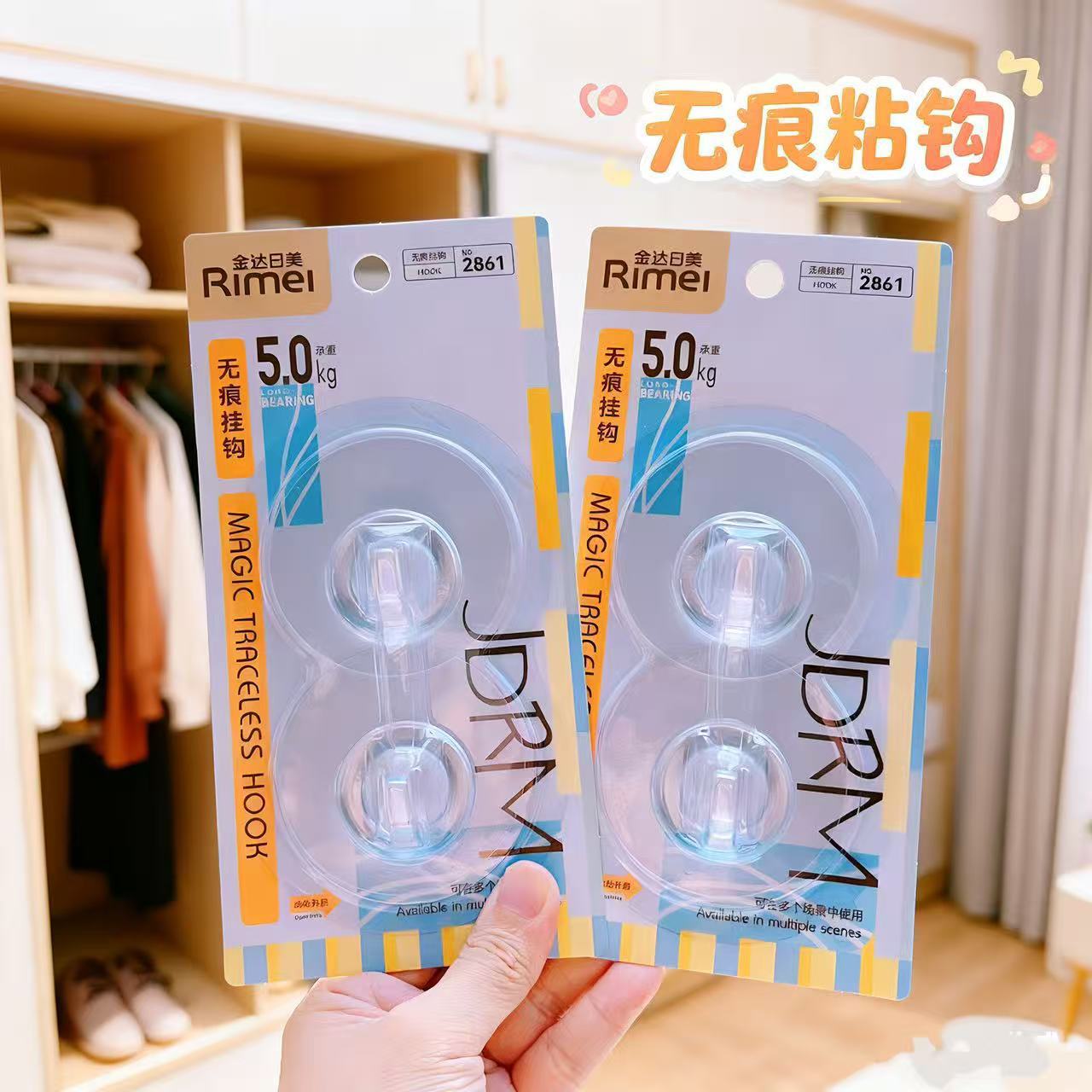 Jinda Rimei 2861 Ganchos Adhesivos Sin Clavos, Sin Perforaciones, Sin Costuras, Transparentes, para Abrigos, Paquete de 3, Suministros para Oficina, Pared, Hogar