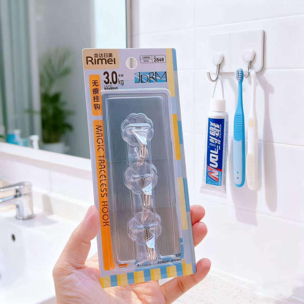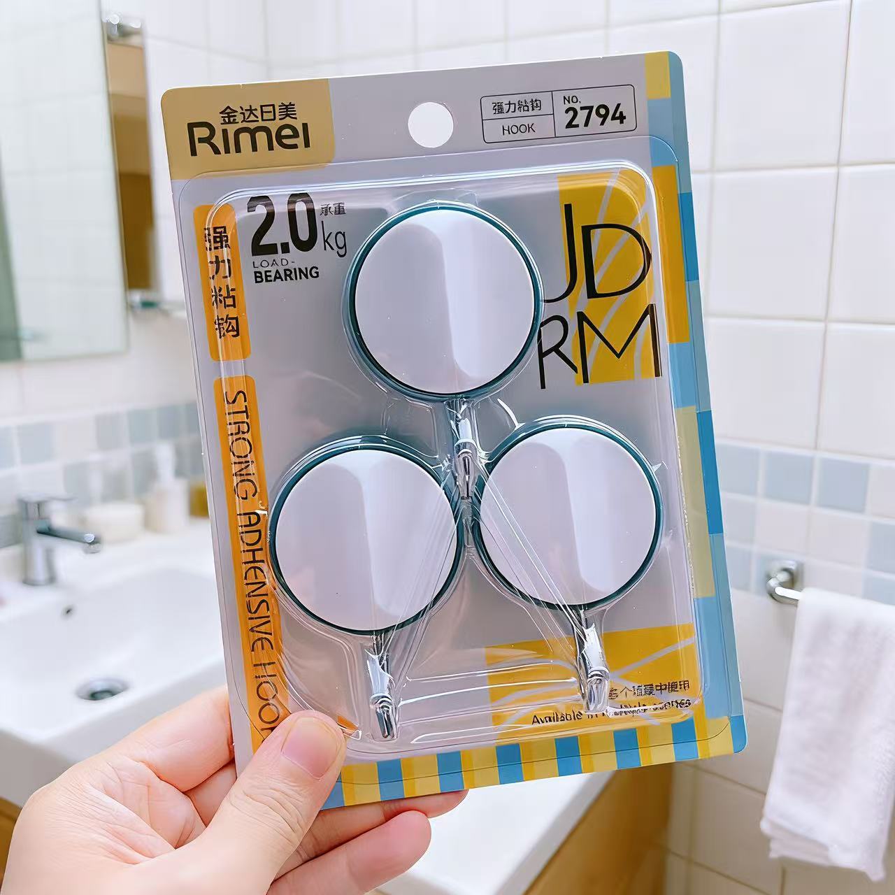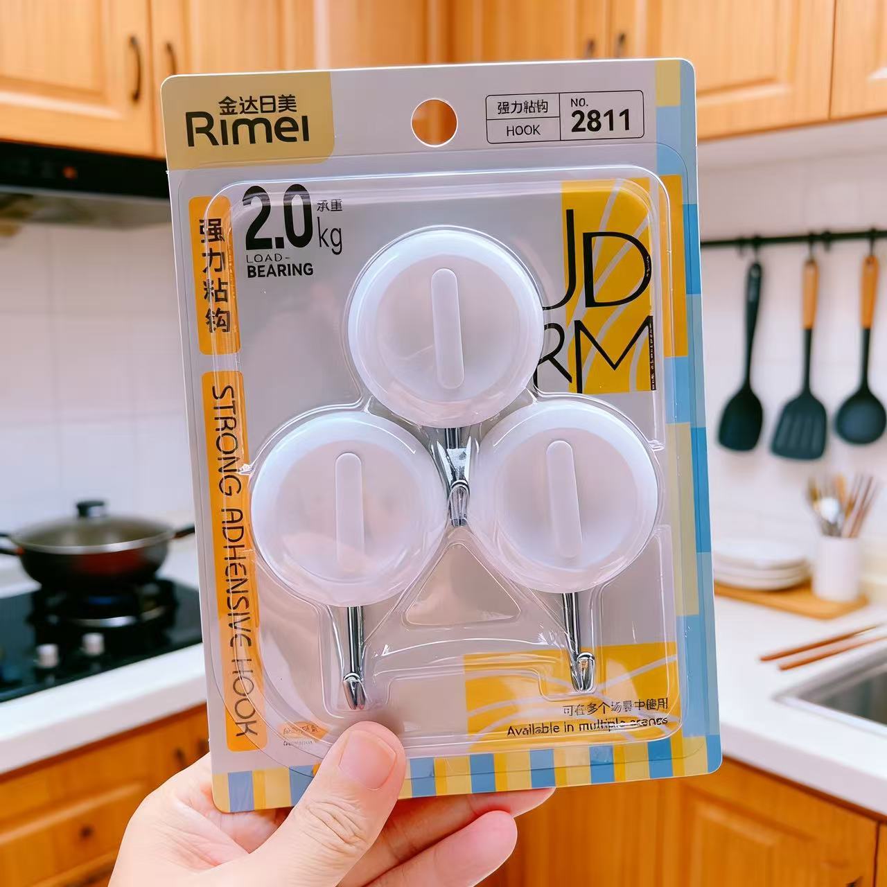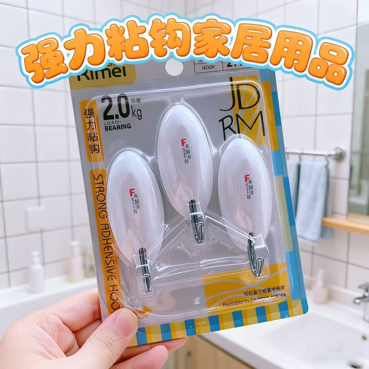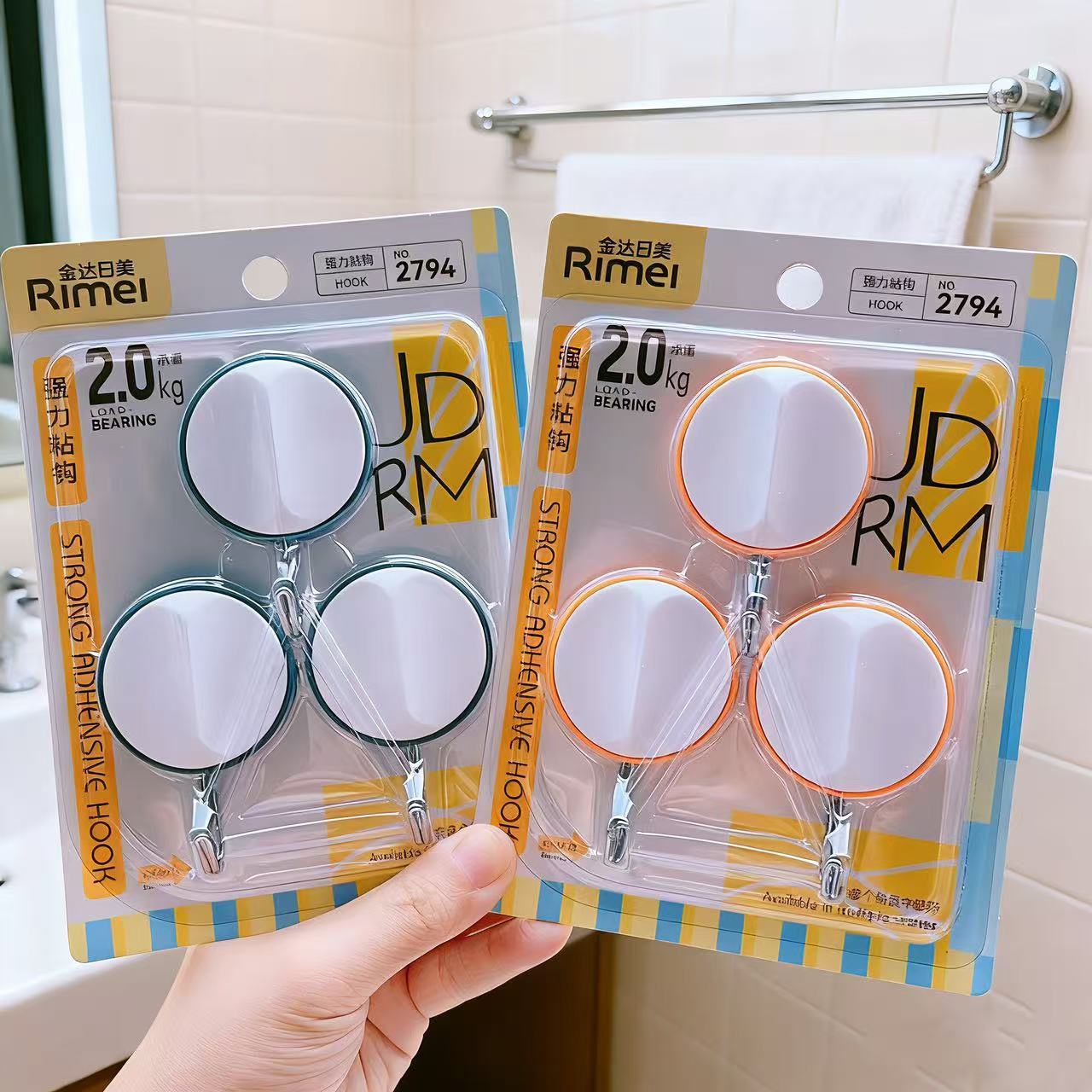 Jinda Rimei 2861 Ganchos Adhesivos Sin Clavos, Sin Perforaciones, Sin Costuras, Transparentes, para Abrigos, Paquete de 3, Suministros para Oficina, Pared, Hogar
