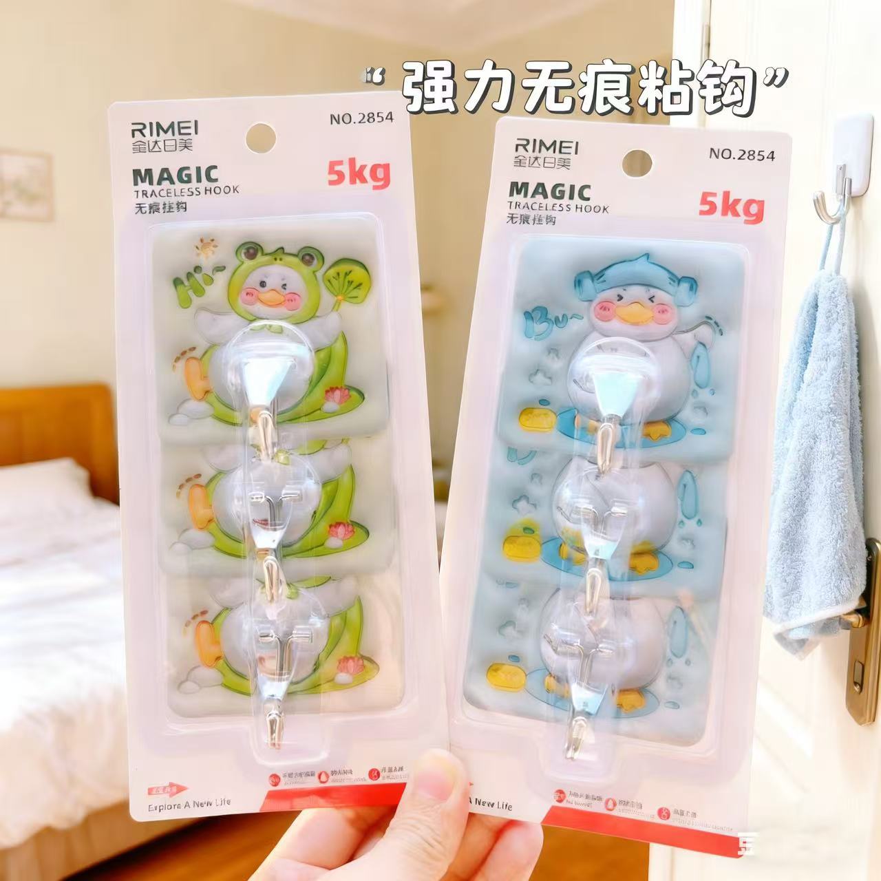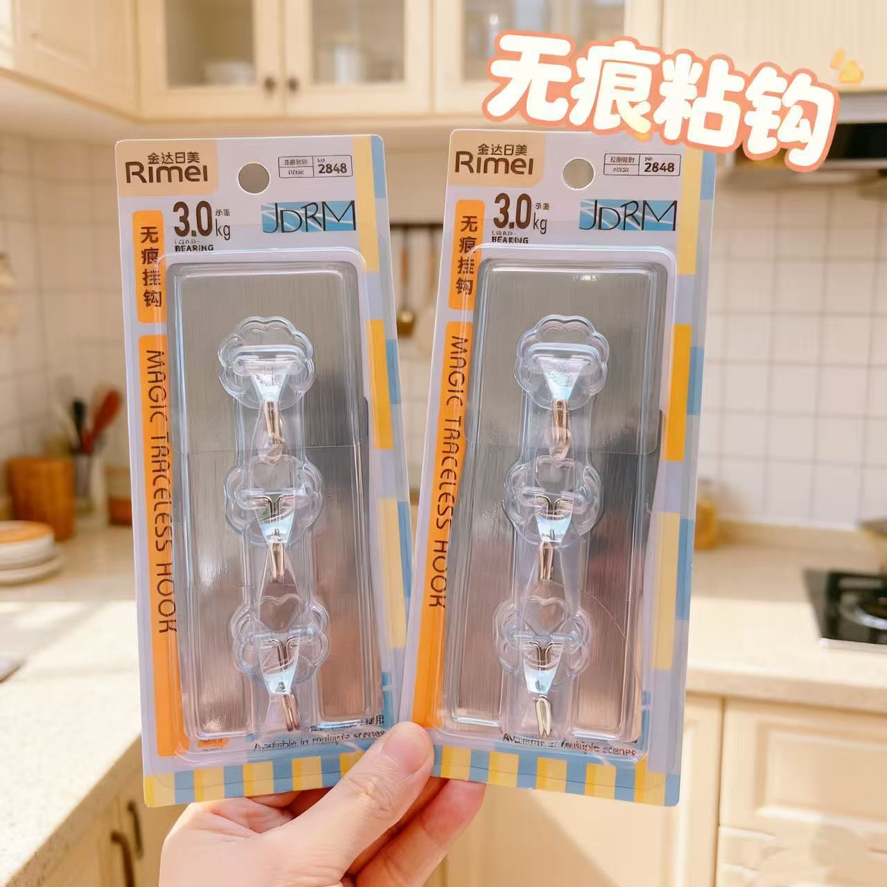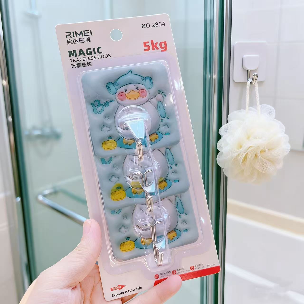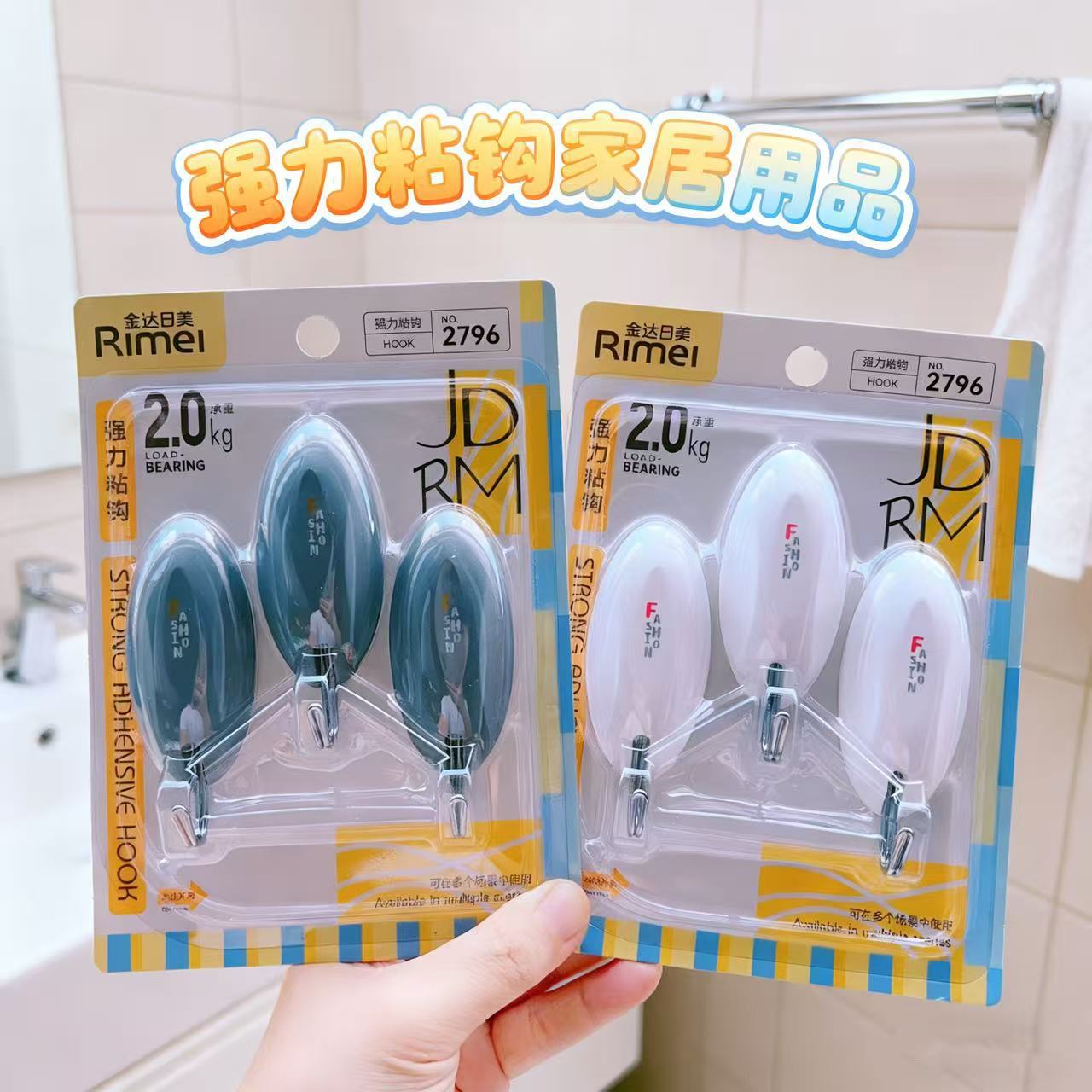 Jinda Rimei 2861 Ganchos Adhesivos Sin Clavos, Sin Perforaciones, Sin Costuras, Transparentes, para Abrigos, Paquete de 3, Suministros para Oficina, Pared, Hogar
