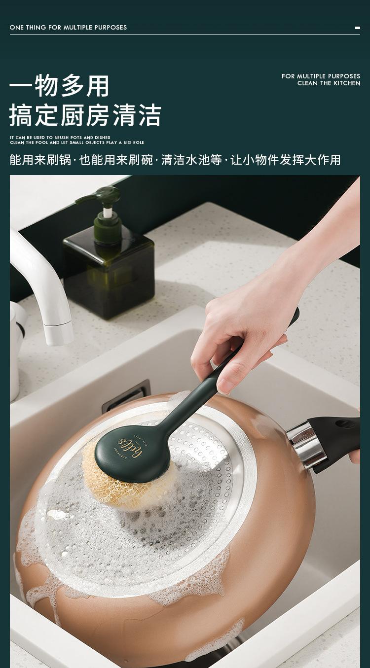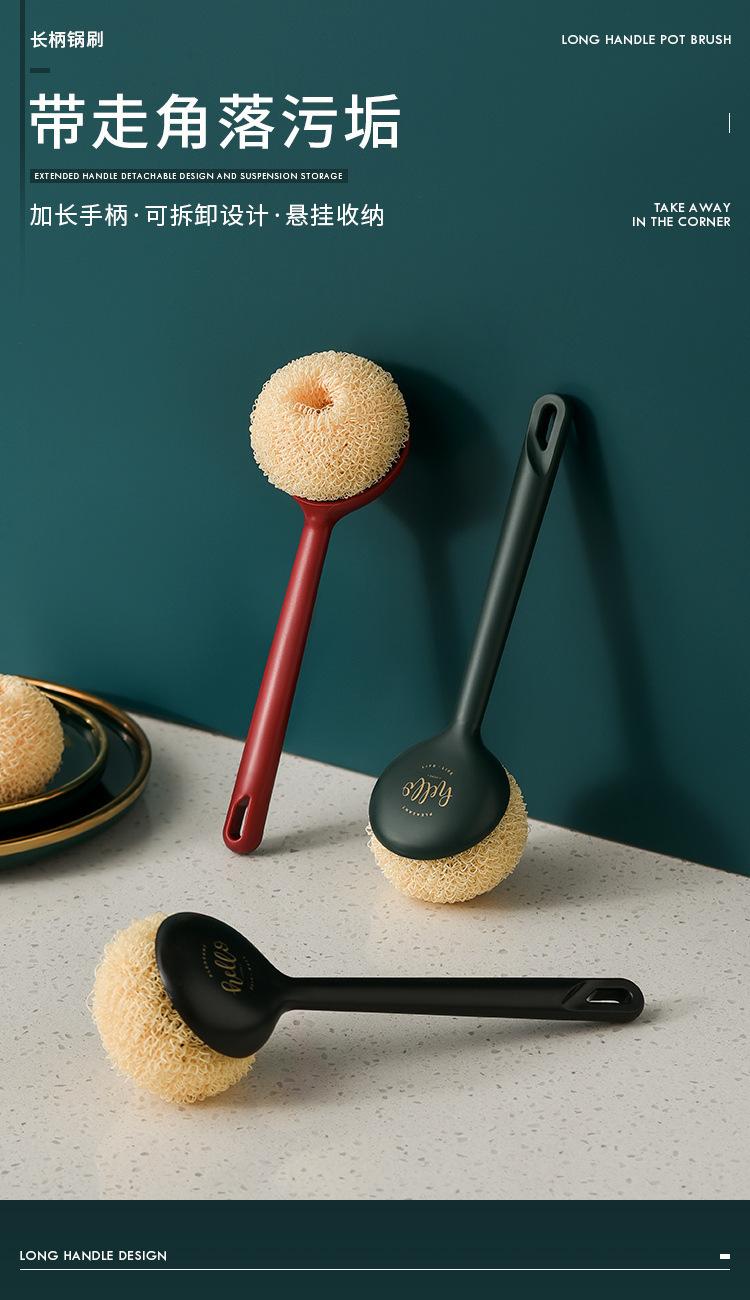 Cepillo de Mango Largo para Lavar Ollas y Platos de Cocina Descontaminación de Estufa Fregadero de Cocina Antiadherente Fácil Aceite Cepillo para Ollas Venta al por Mayor