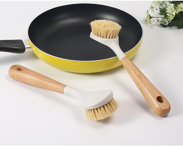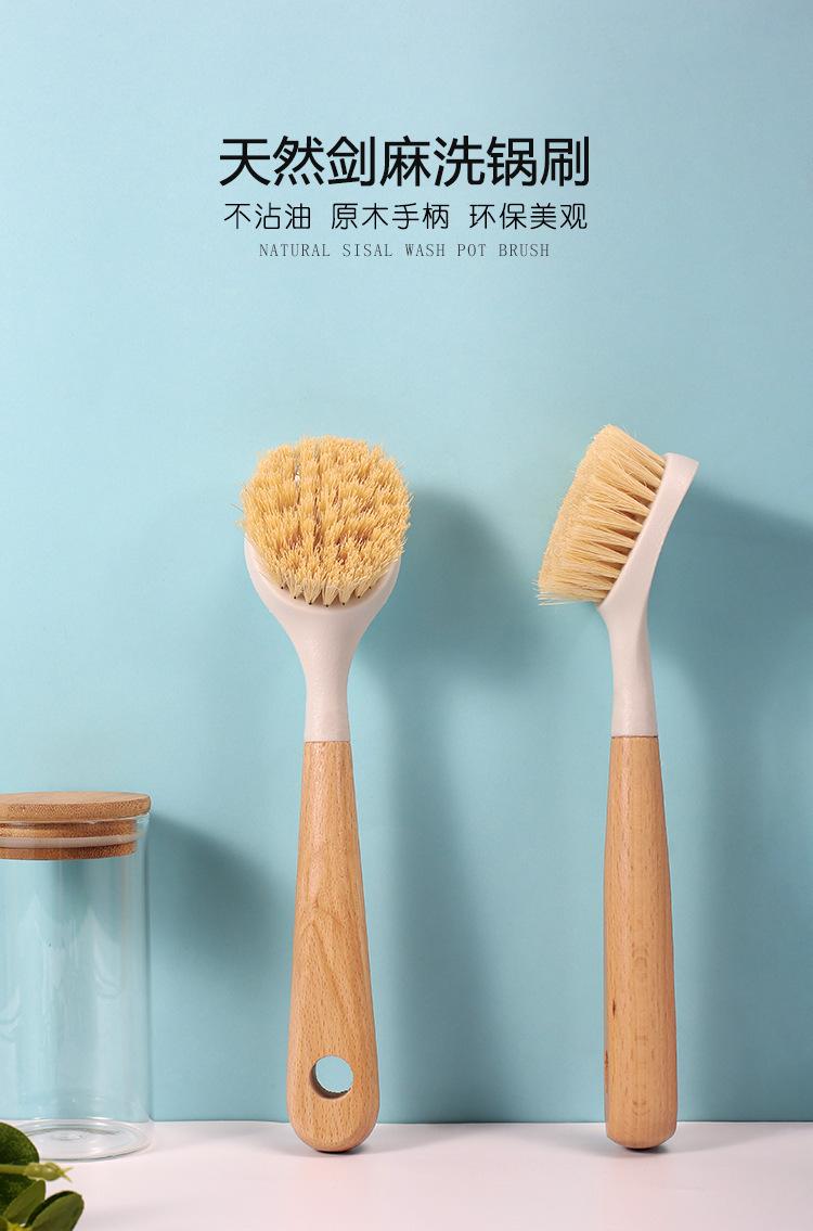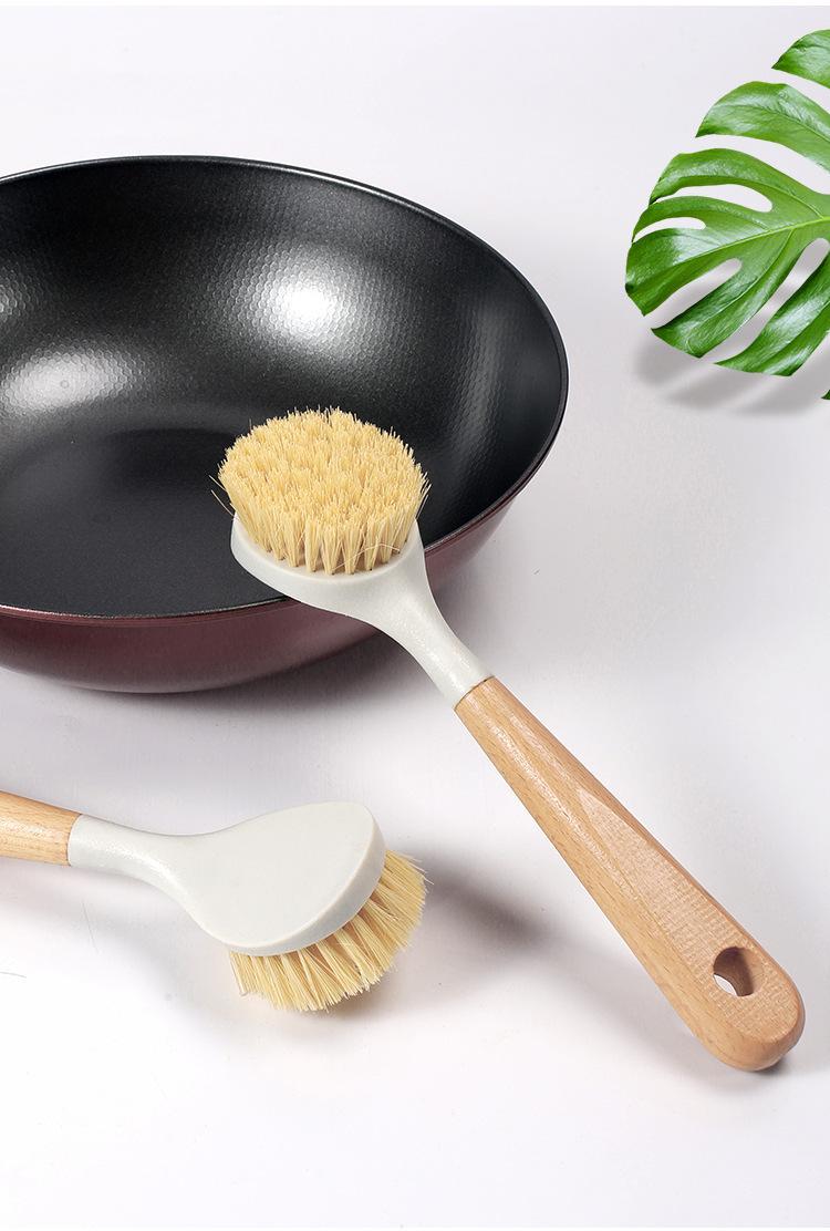 Cepillo para lavar ollas con mango de madera de sisal multifuncional de mango largo para limpieza de cocina cepillo para ollas antiadherente cepillo para ollas platos tazones