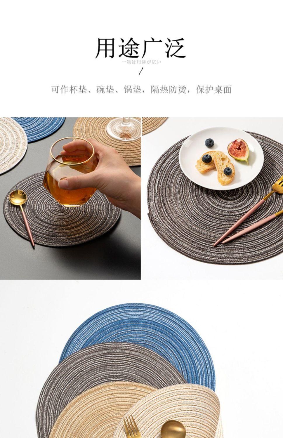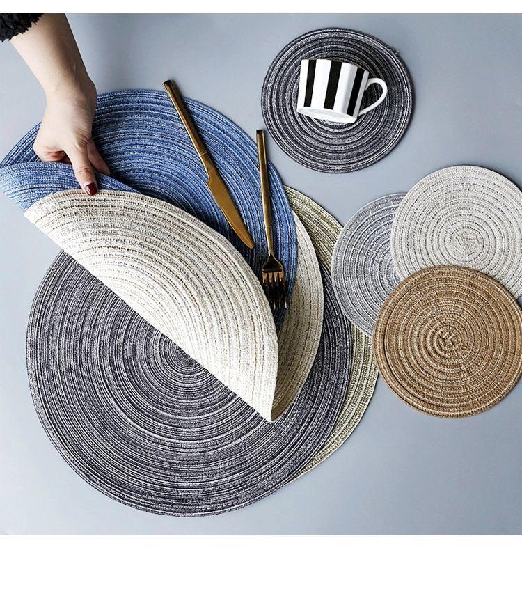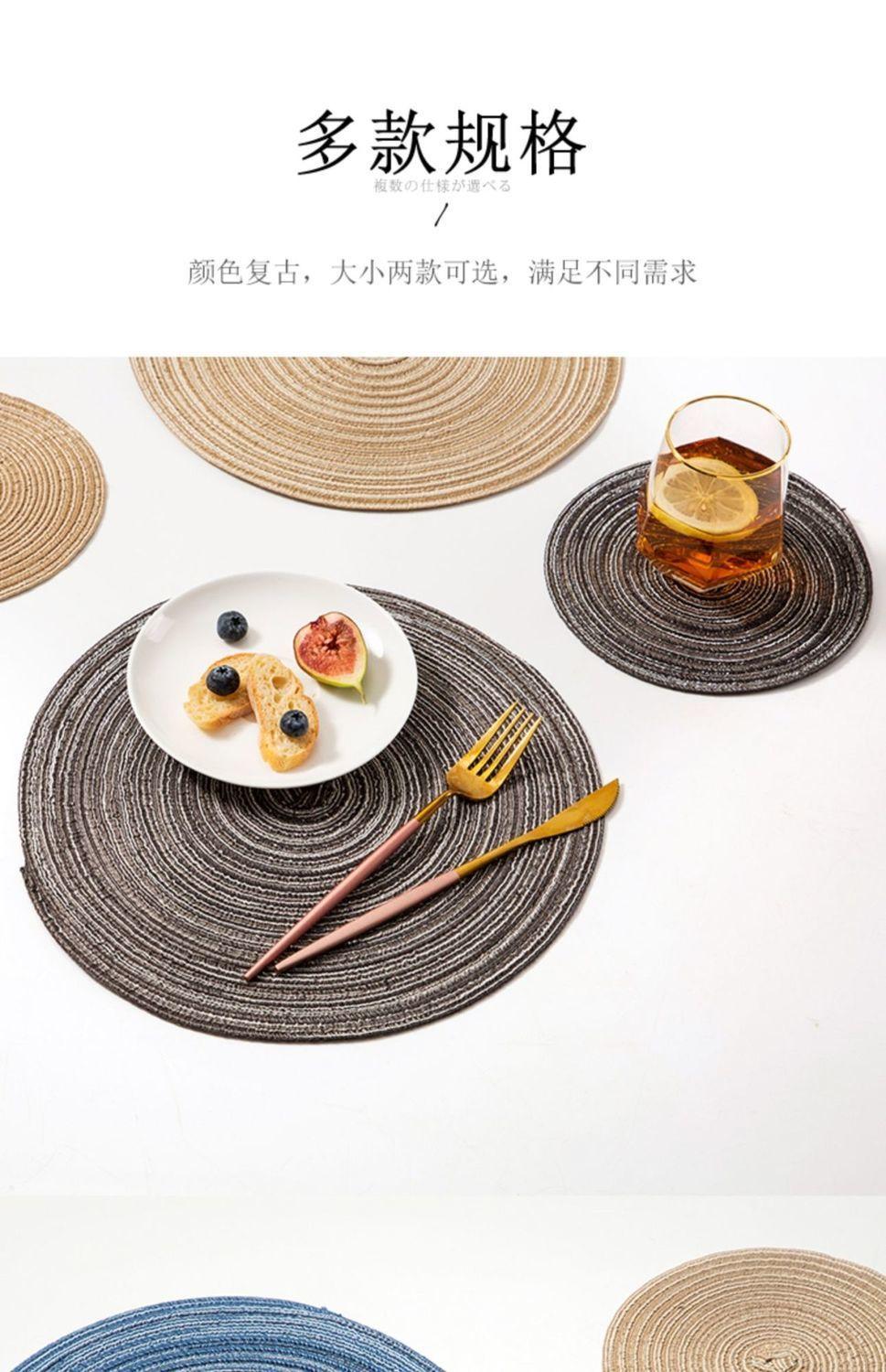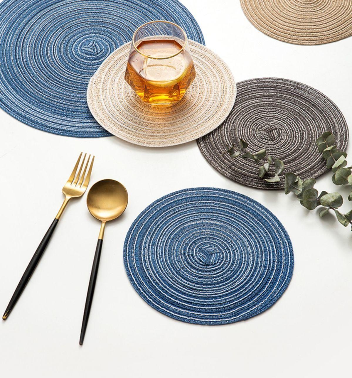 Individual de Mesa Estilo Europeo Redondo Hilo de Algodón Almohadilla Mesa de Comedor Plato de Cena Almohadilla Aislamiento Térmico Individual de Mesa Tejido Simple para el Hogar Antideslizante Lavable