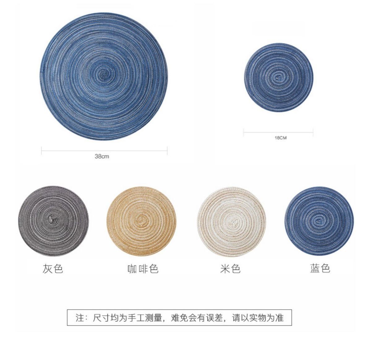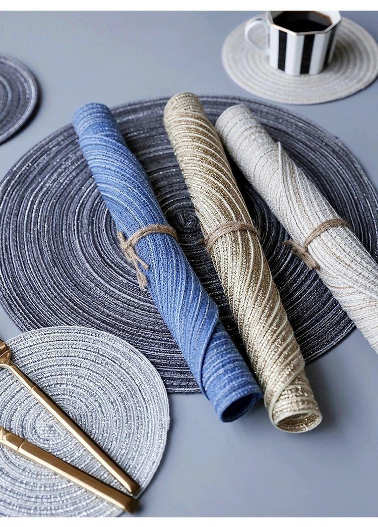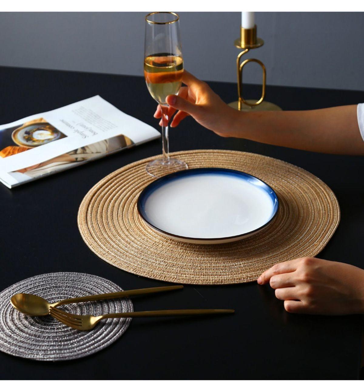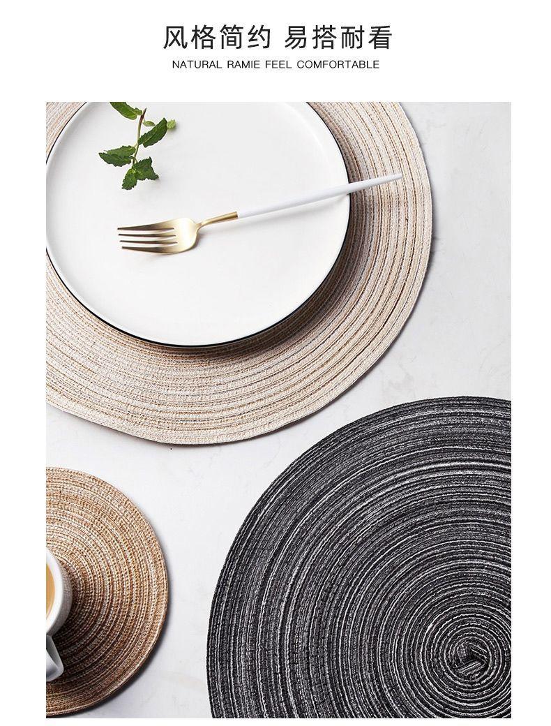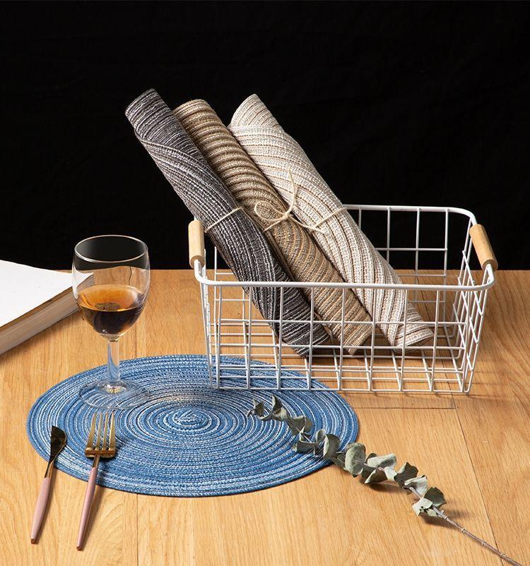 Individual de Mesa Estilo Europeo Redondo Hilo de Algodón Almohadilla Mesa de Comedor Plato de Cena Almohadilla Aislamiento Térmico Individual de Mesa Tejido Simple para el Hogar Antideslizante Lavable