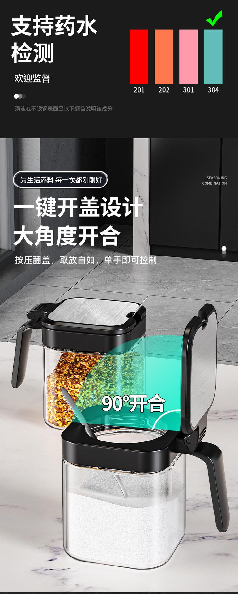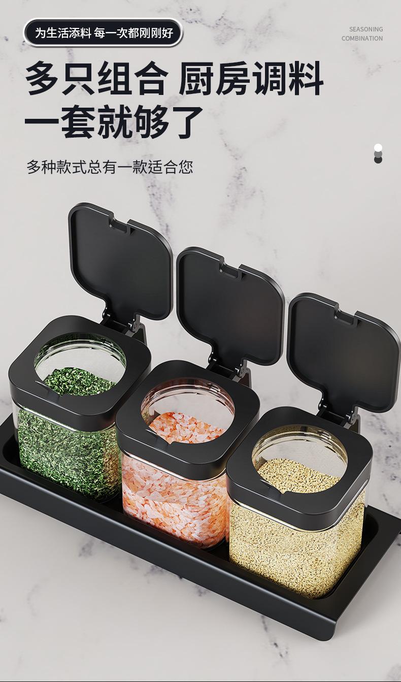 4-piece set: Spice jars*3+Base【Free stainless steel spoon+Waterproof label】, Seasoning Jar*1 [Free Stainless S...