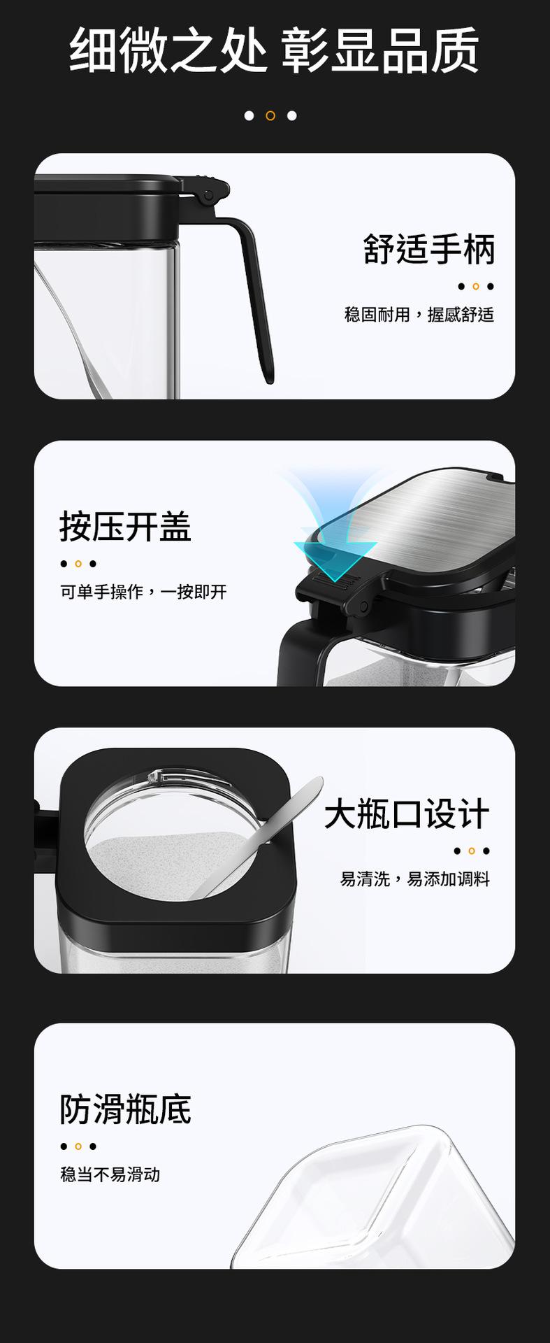 4-piece set: Spice jars*3+Base【Free stainless steel spoon+Waterproof label】