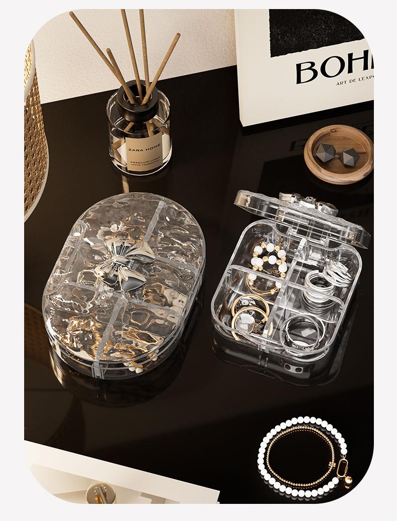 Caja de Almacenamiento de Joyas Transparente de Lujo Ligero Bolsa de Joyas Portátil Aretes Aretes Anillo Collar Joyero Caja Pequeña para Medicamentos