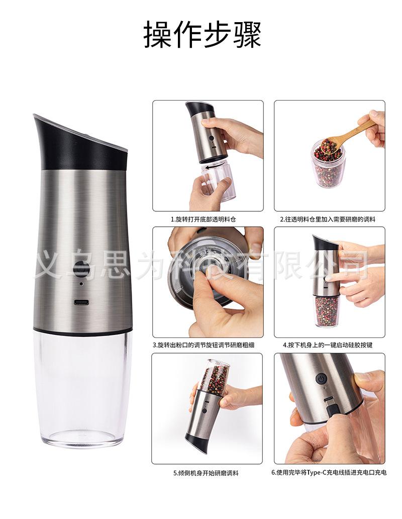 Compra Suministros de Cocina Molinillo de Pimienta Eléctrico Set de Soporte Botella de Molienda por Inducción de Gravedad Molinillo de Carga USB Botella para BBQ al por mayor en Joom.pro