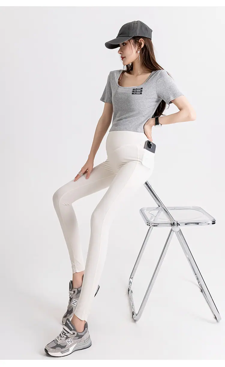 Pantalones de mujer embarazada primavera y verano nueva moda leggings de mujer embarazada delgados ropa exterior pantalones tiburón vientre no se caen de la entrepierna