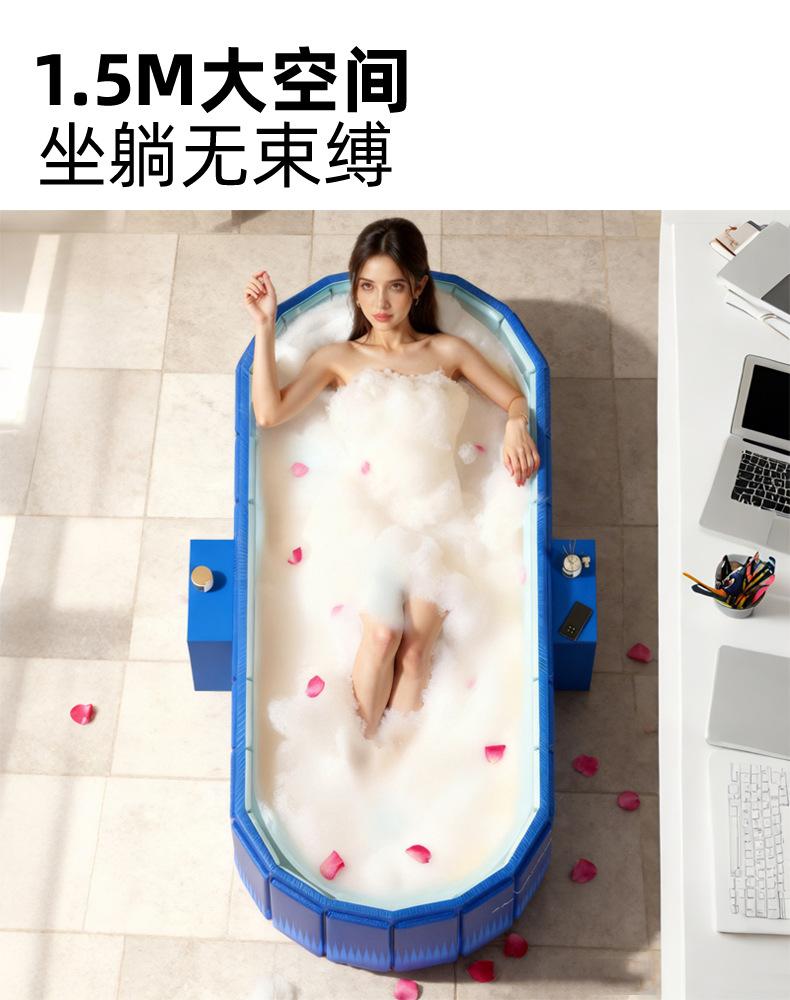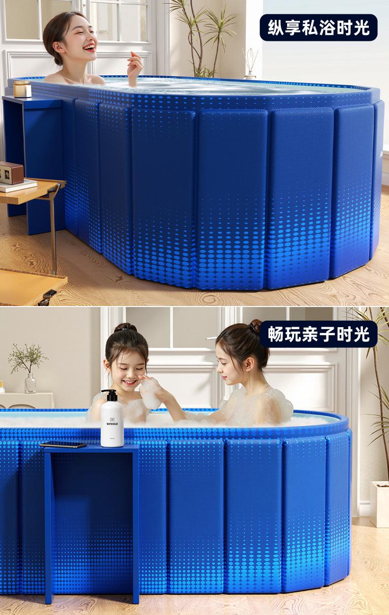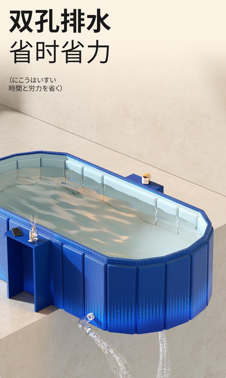 Inflatable-free Folding Bathtub - with Storage Rack [Tranquil Blue]