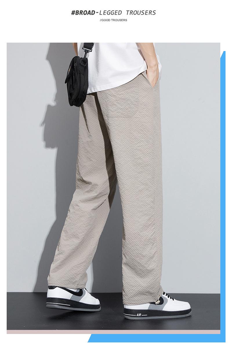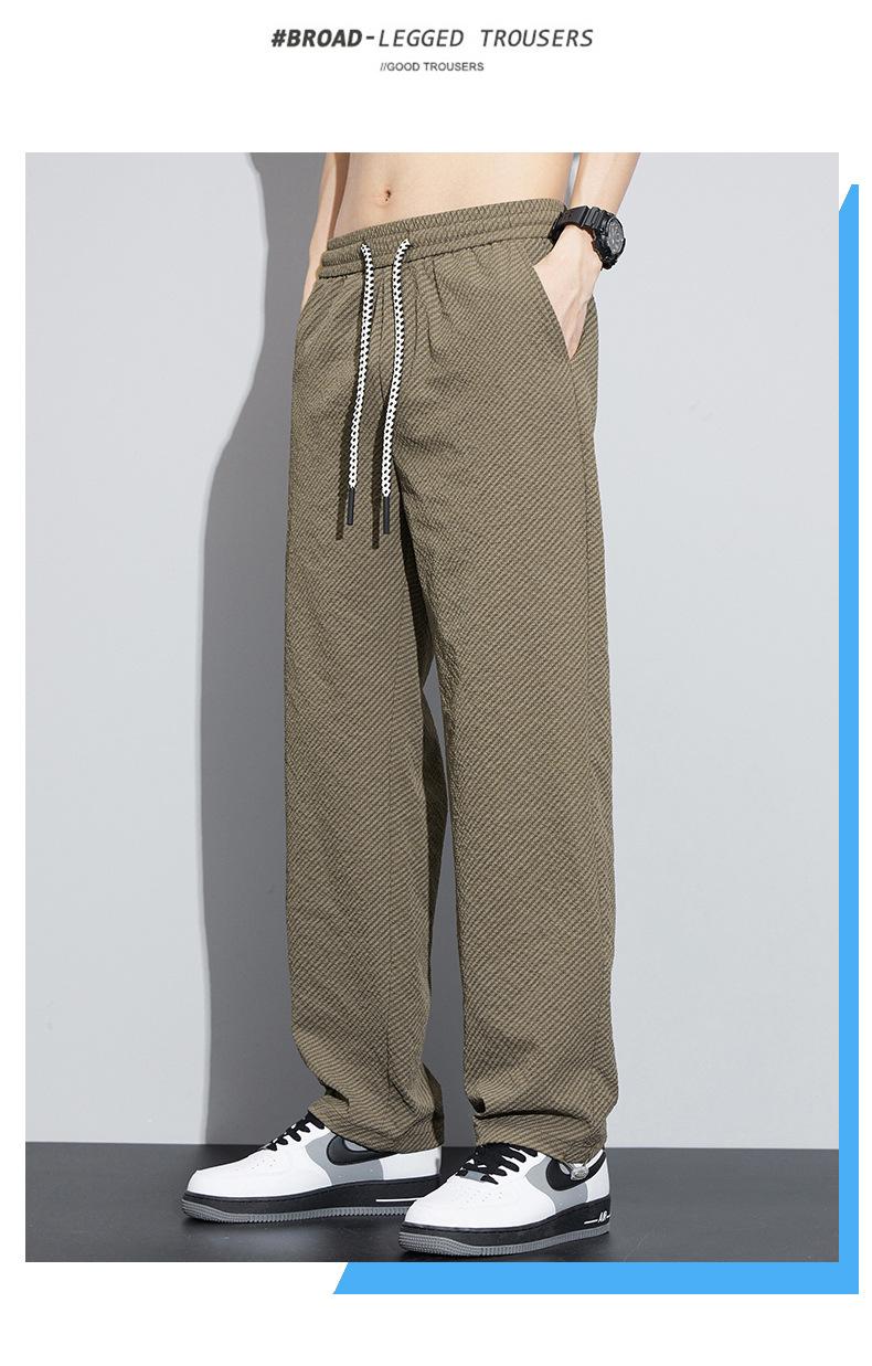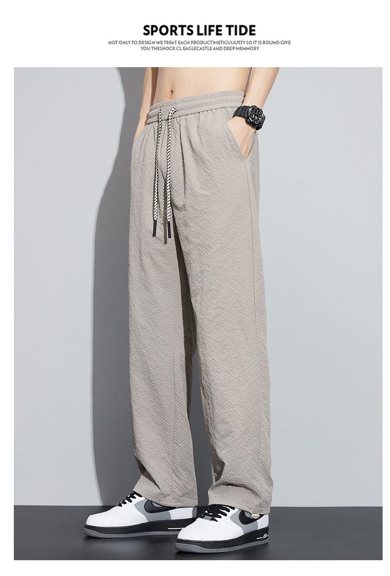 Pantalones Casuales Rectos para Hombre Verano Delgados Sueltos Estilo Americano Marca de Moda Seda de Hielo Pantalones de Pierna Ancha 2024 Nuevos Pantalones Largos Deportivos