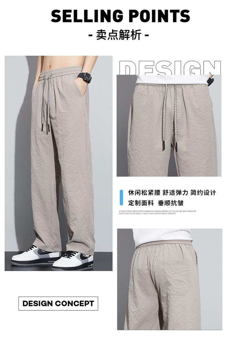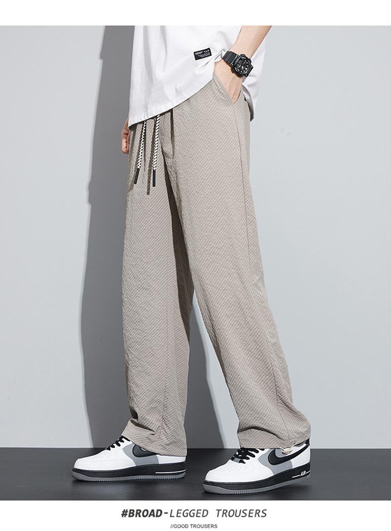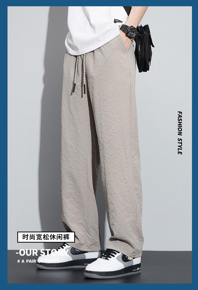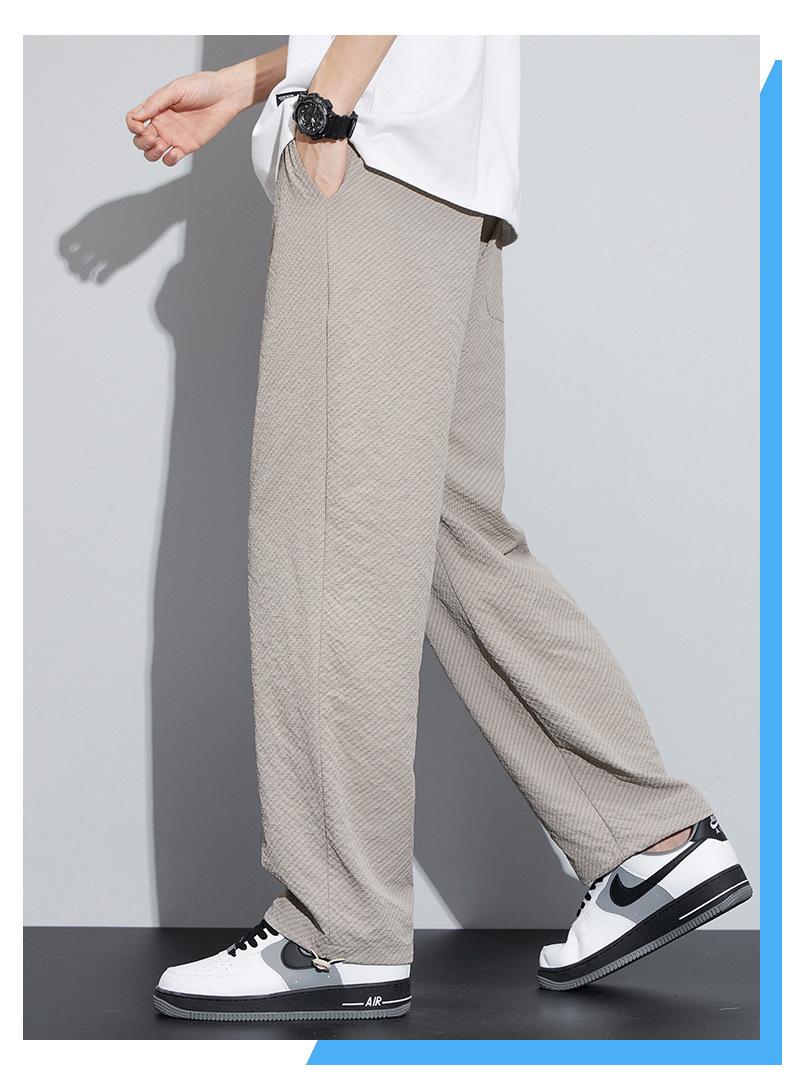 Pantalones Casuales Rectos para Hombre Verano Delgados Sueltos Estilo Americano Marca de Moda Seda de Hielo Pantalones de Pierna Ancha 2024 Nuevos Pantalones Largos Deportivos