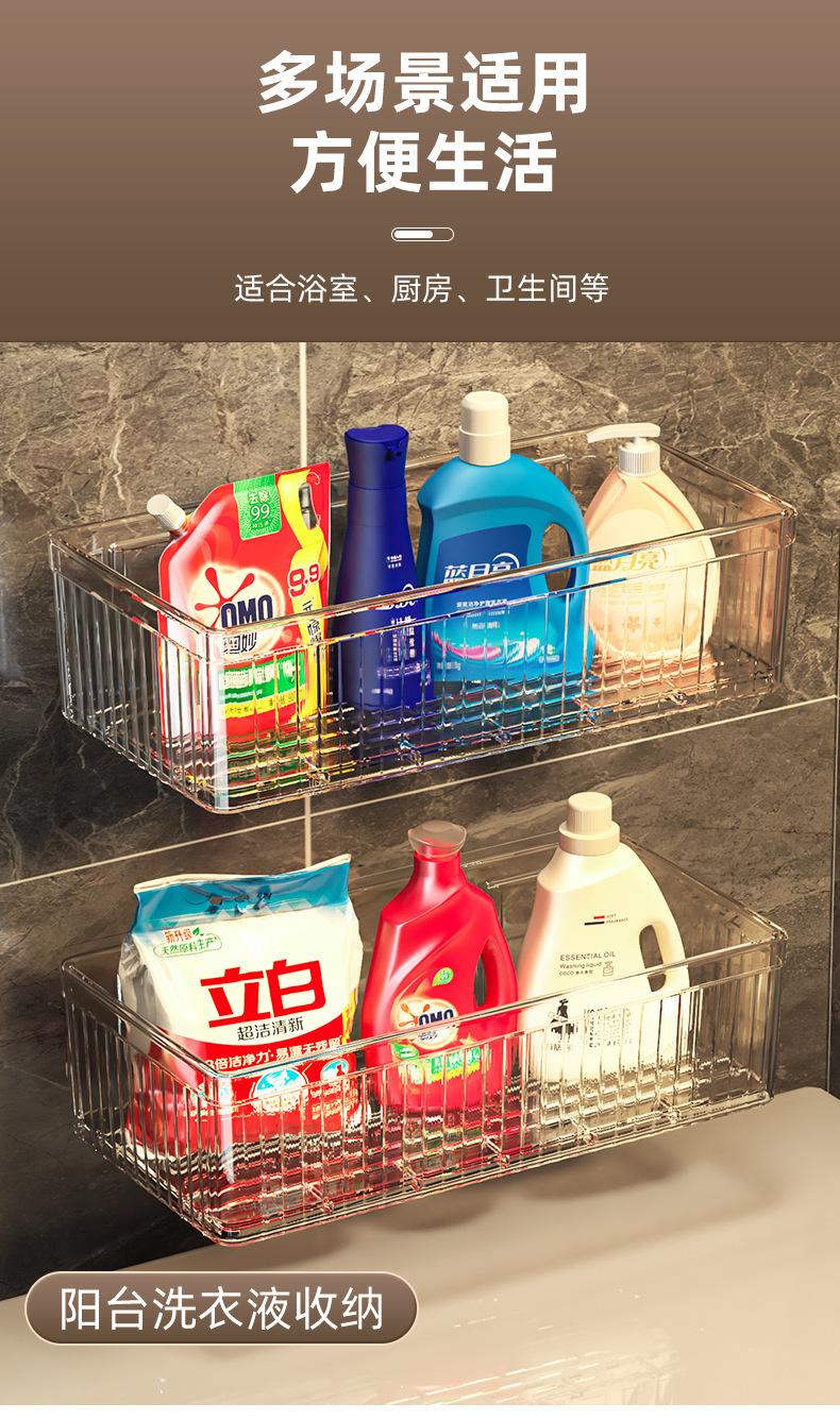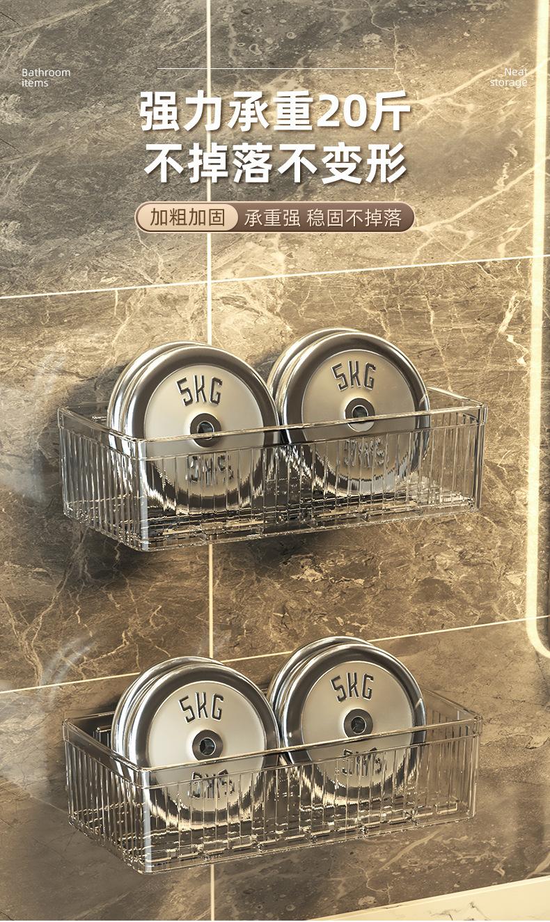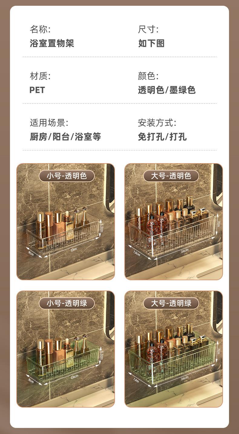 Bathroom Wall-Mounted Storage Rack - Extra Large - Transparent Green - PET - 1 piece (Boxed)