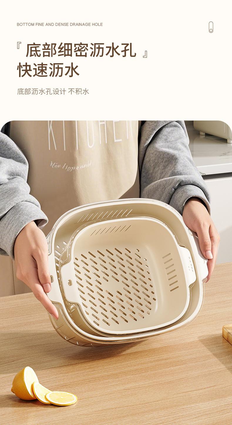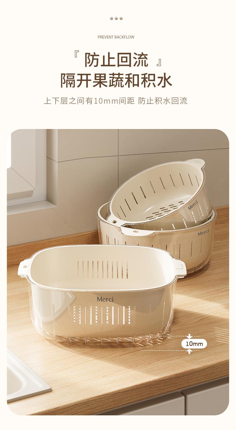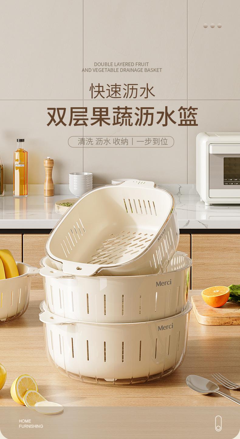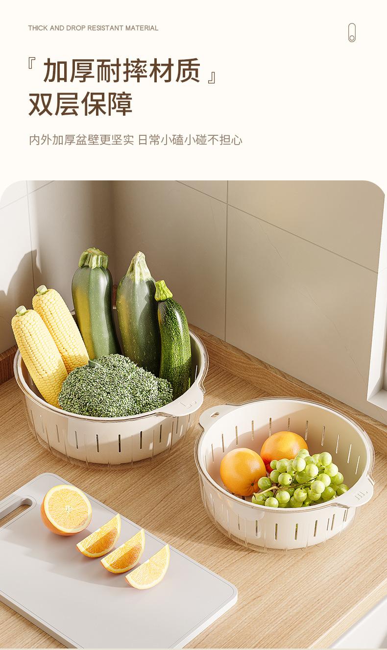 Nuevo Escurridor de Fregadero para Lavar Verduras Cesta Escurridora Cocina Hogar Escurridor de Tazón Fregadero Lavado Plato de Fruta Plástico de Doble Capa Cesta para Verduras Estilo Crema