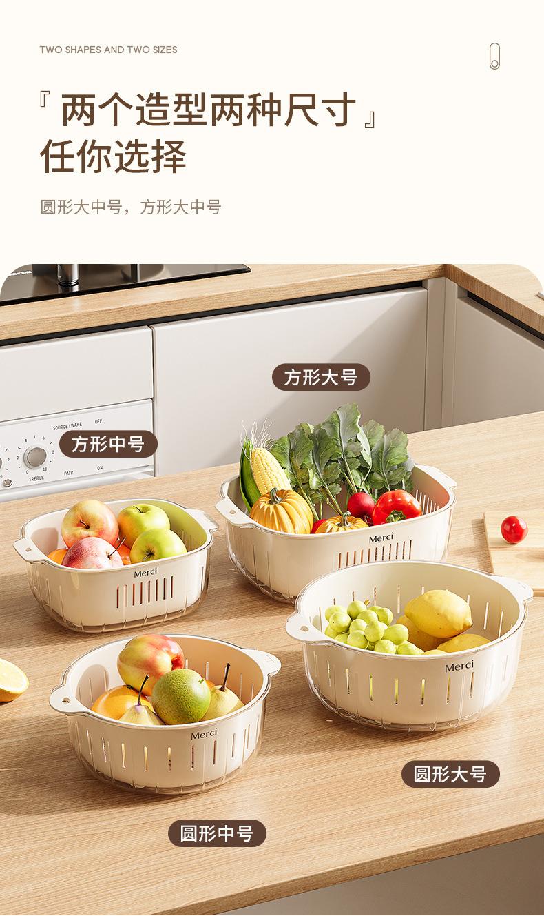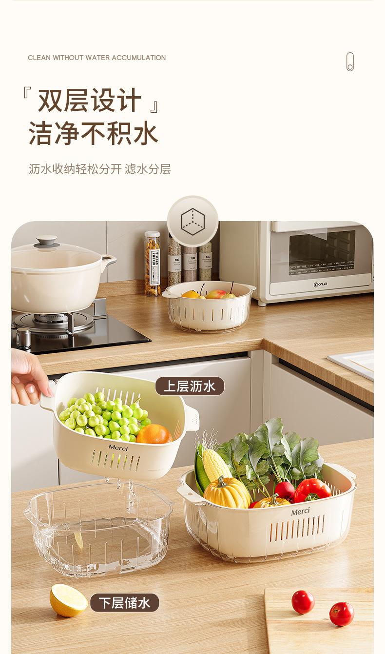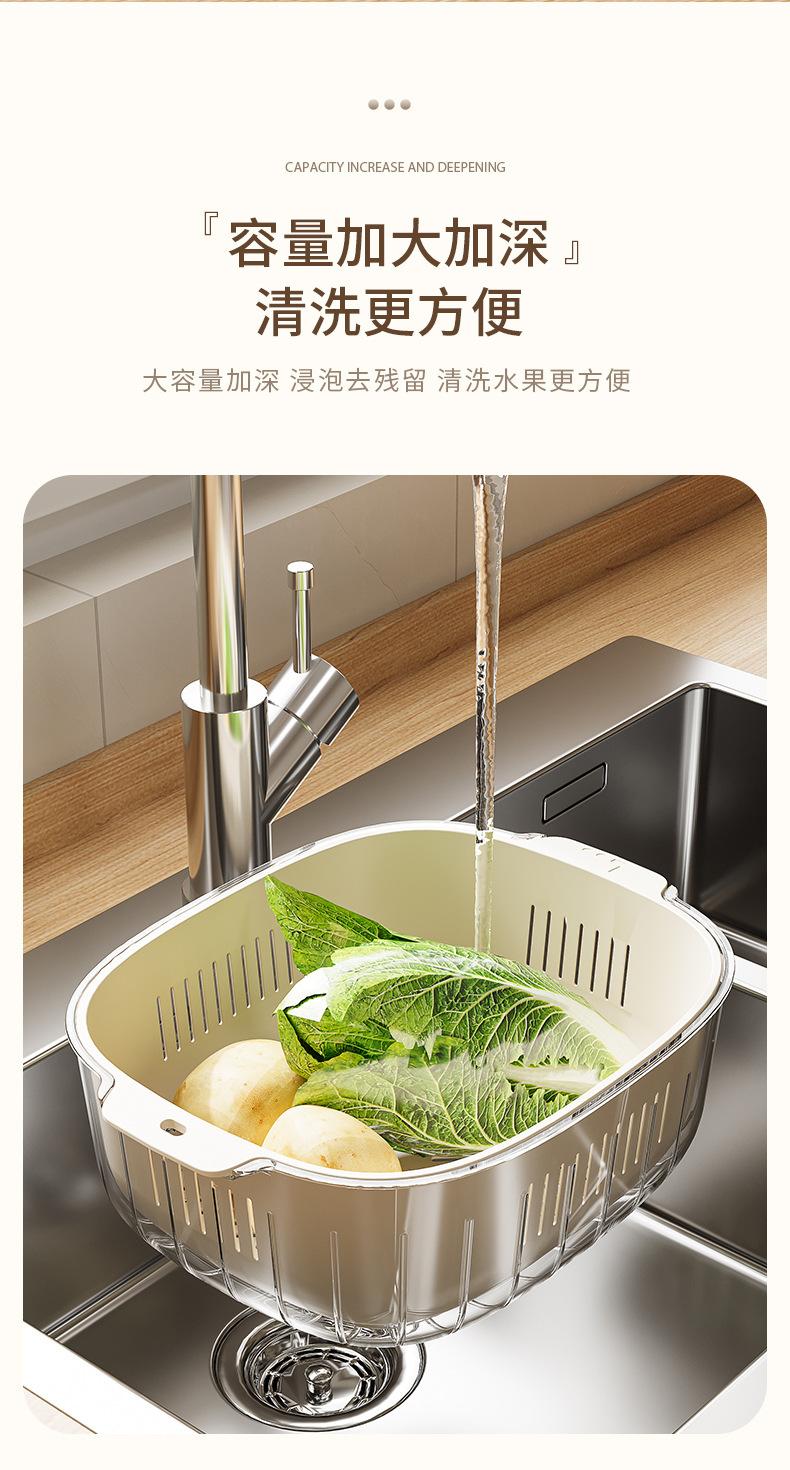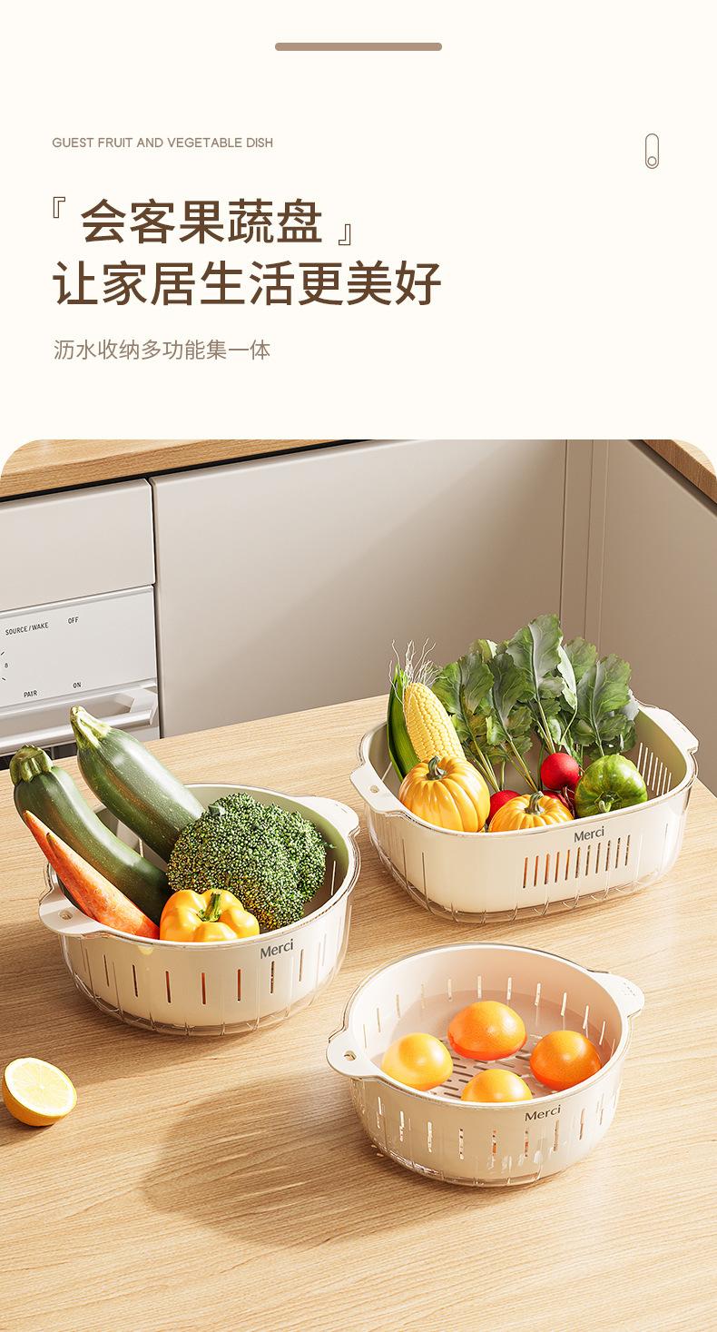 Nuevo Escurridor de Fregadero para Lavar Verduras Cesta Escurridora Cocina Hogar Escurridor de Tazón Fregadero Lavado Plato de Fruta Plástico de Doble Capa Cesta para Verduras Estilo Crema