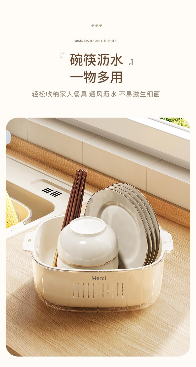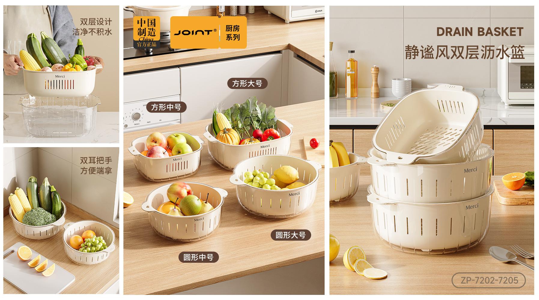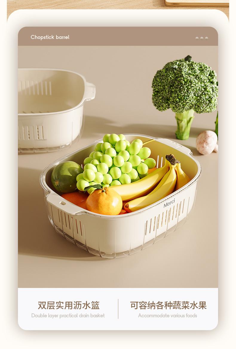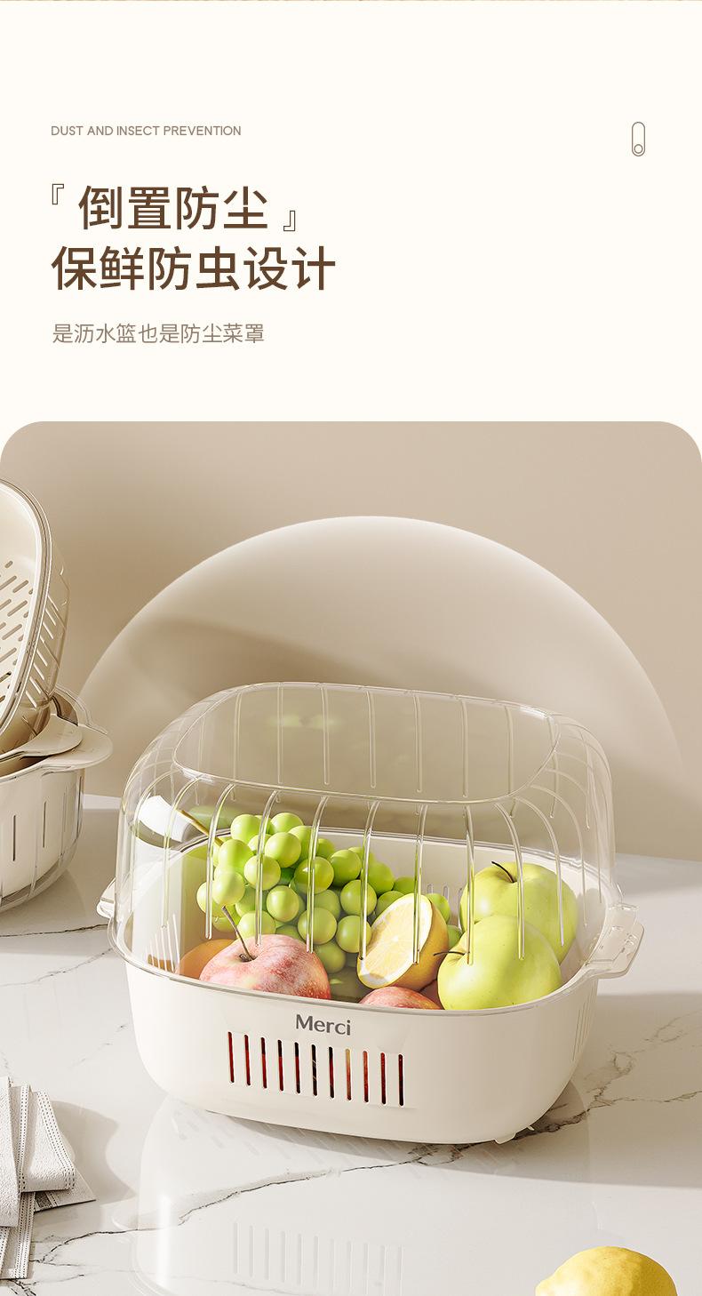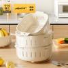 Nuevo Escurridor de Fregadero para Lavar Verduras Cesta Escurridora Cocina Hogar Escurridor de Tazón Fregadero Lavado Plato de Fruta Plástico de Doble Capa Cesta para Verduras Estilo Crema