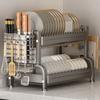 Escurridor de Platos de Encimera de Cocina Doméstico Doble Capa con Bandeja de Goteo Estante de Almacenamiento Organizador de Platos, Cuencos y Cubiertos Escurridor