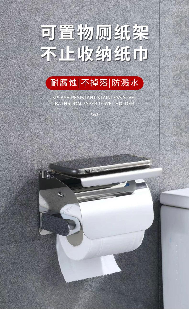 Soporte de Papel Higiénico de Ingeniería Personalizado Estante para Pañuelos de Baño de Hotel Acero Inoxidable 304 Caja de Papel en Rollo Sin Perforaciones