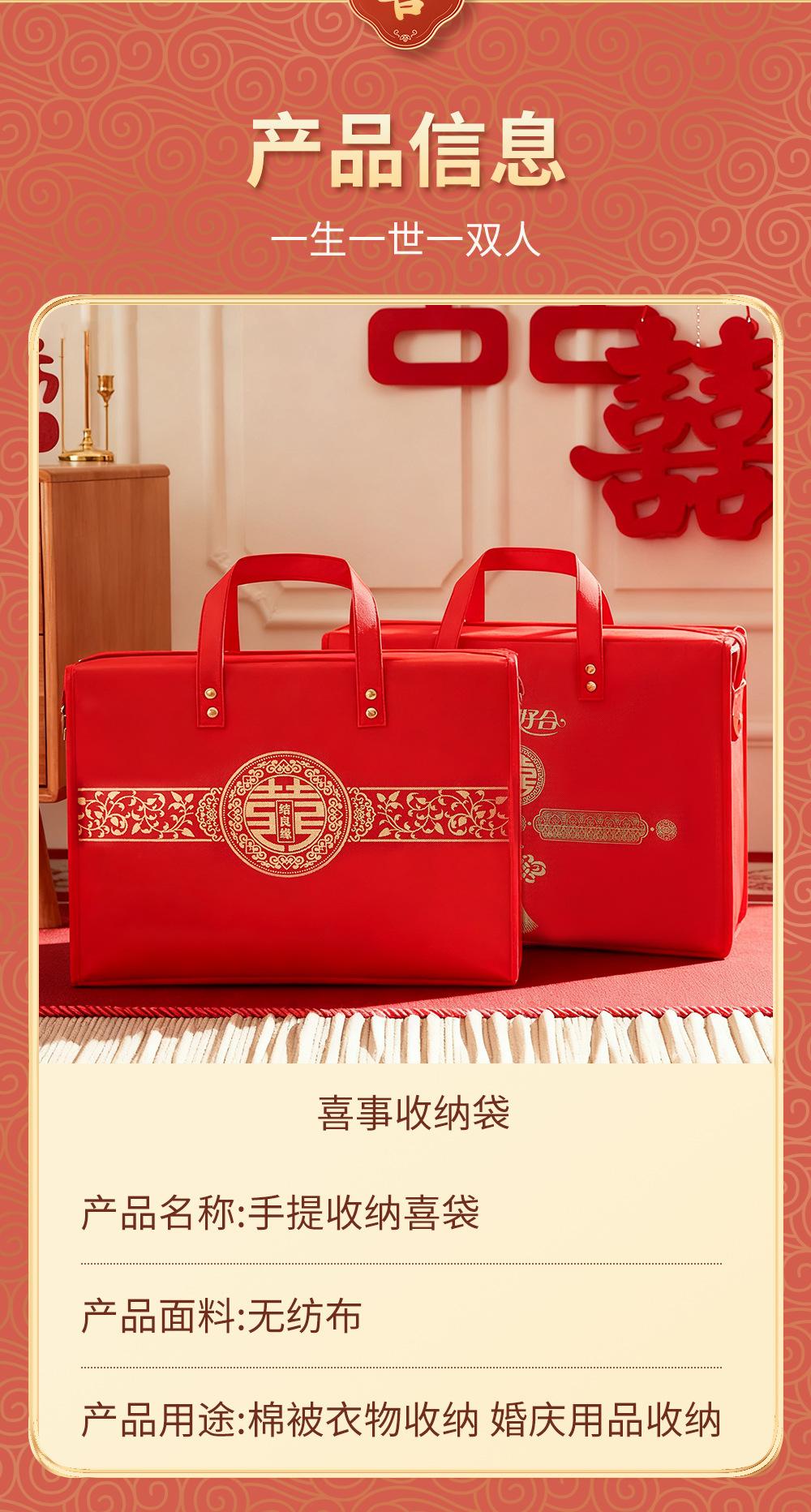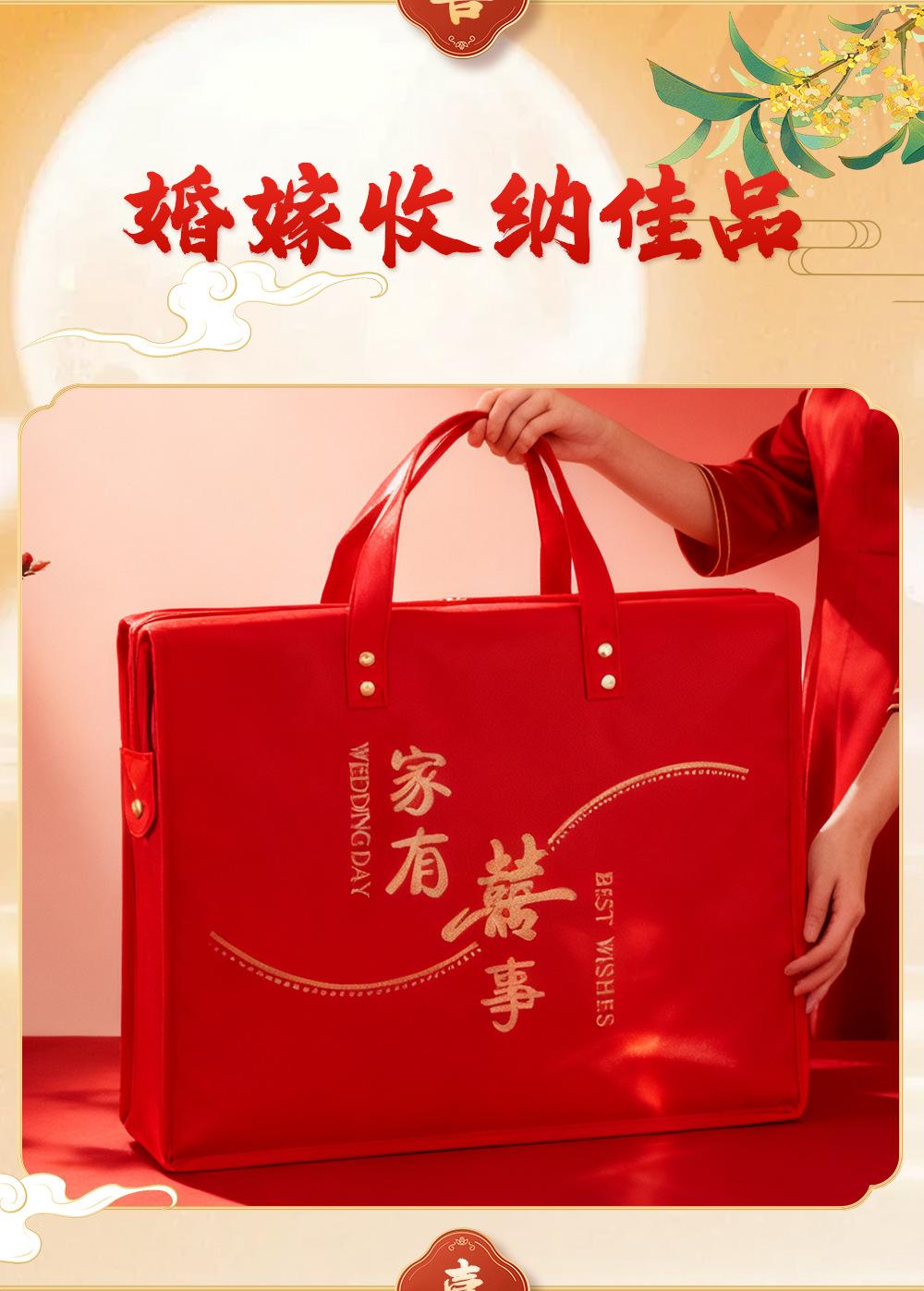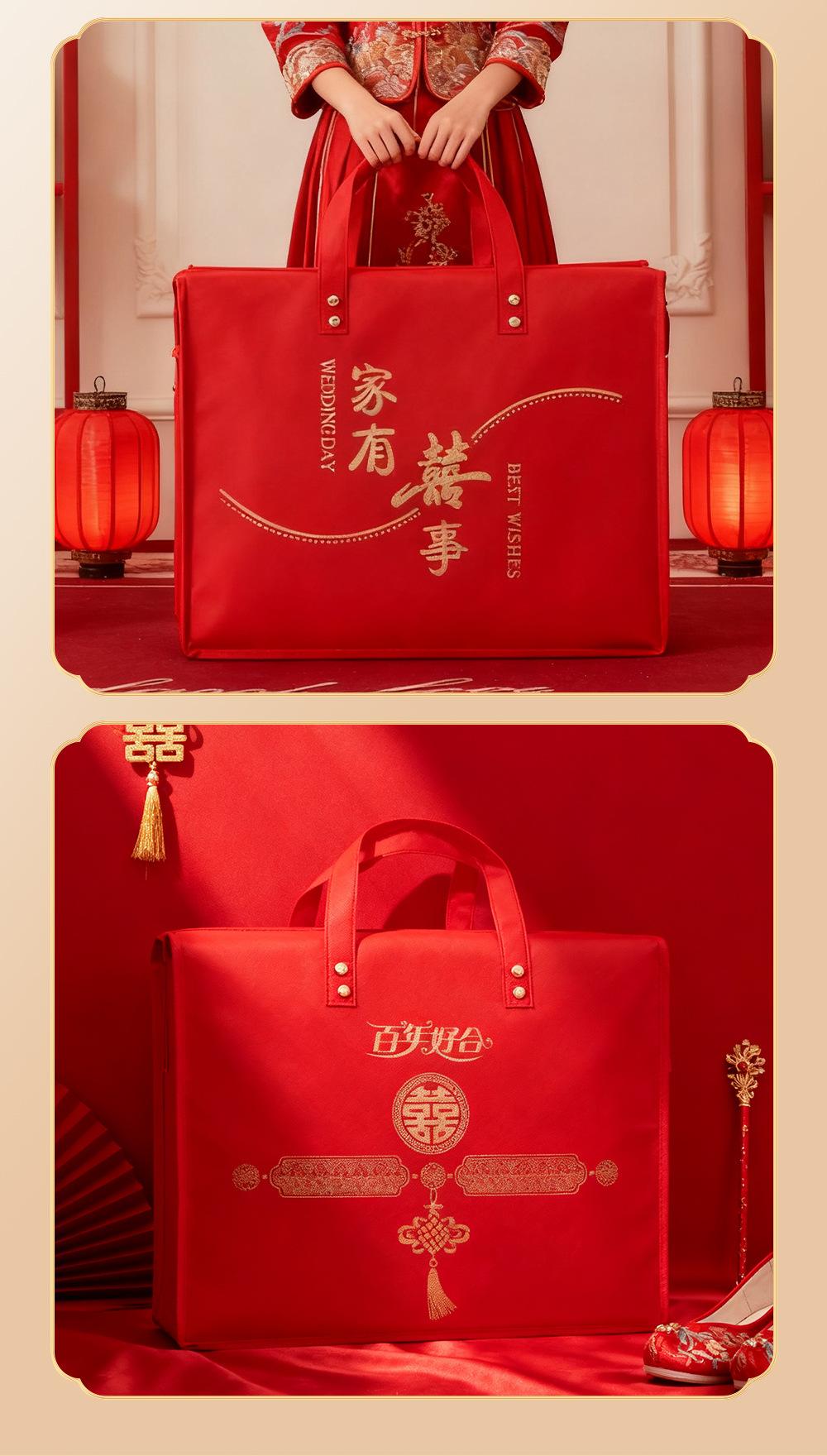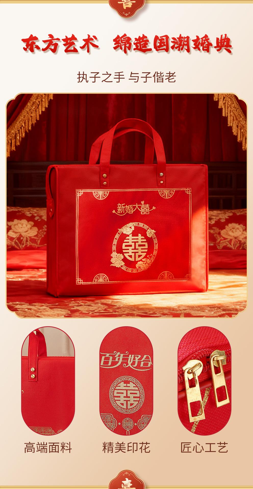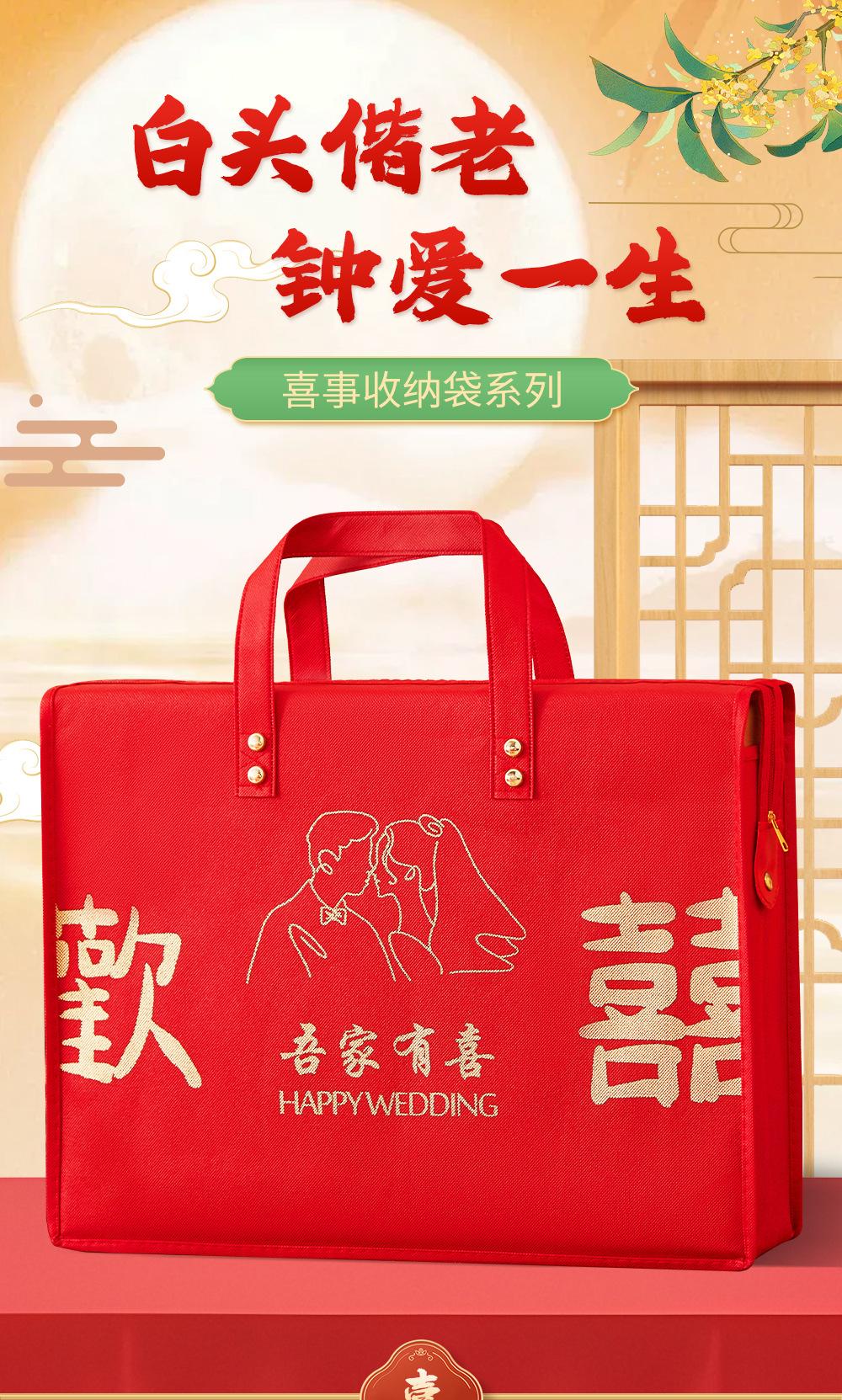 Juego de cuatro piezas para boda de tela no tejida, edredón rojo auspicioso, bolsa de almacenamiento, bolsa de algodón personalizada para edredón, bolso festivo para dote de boda