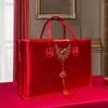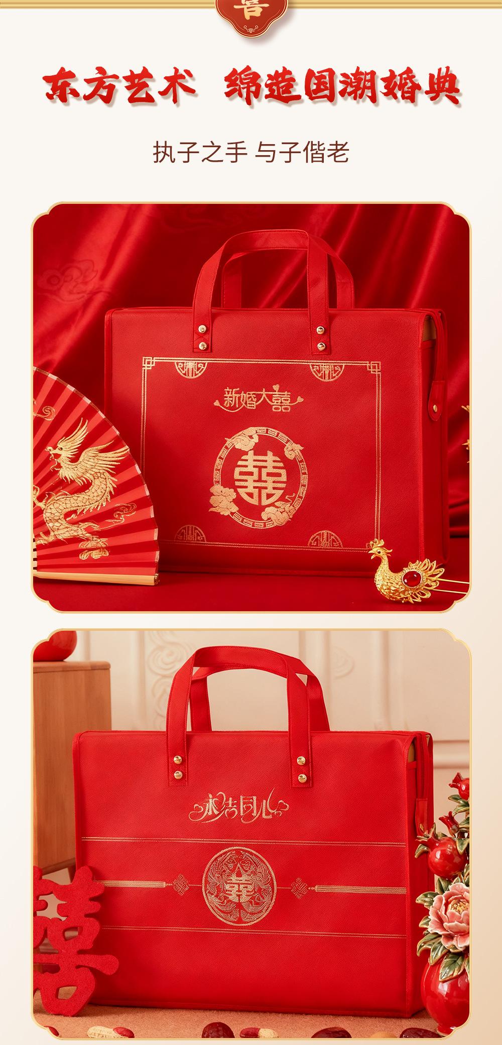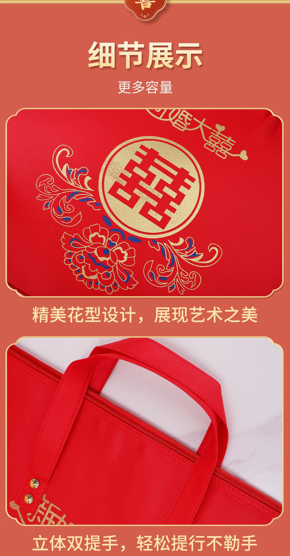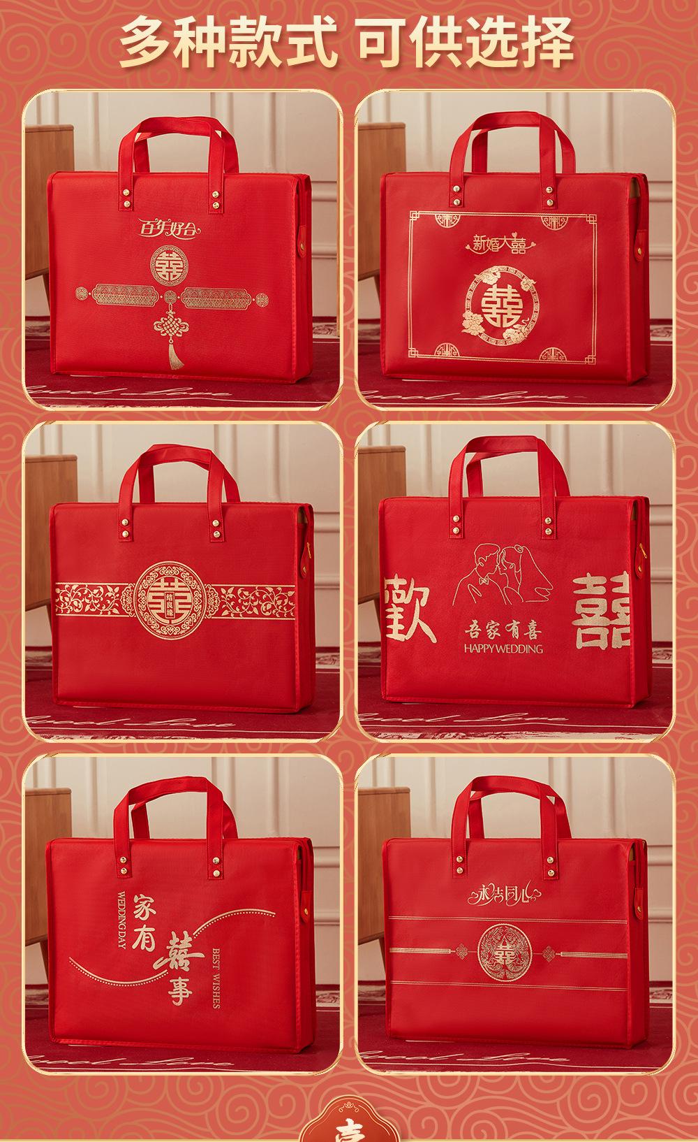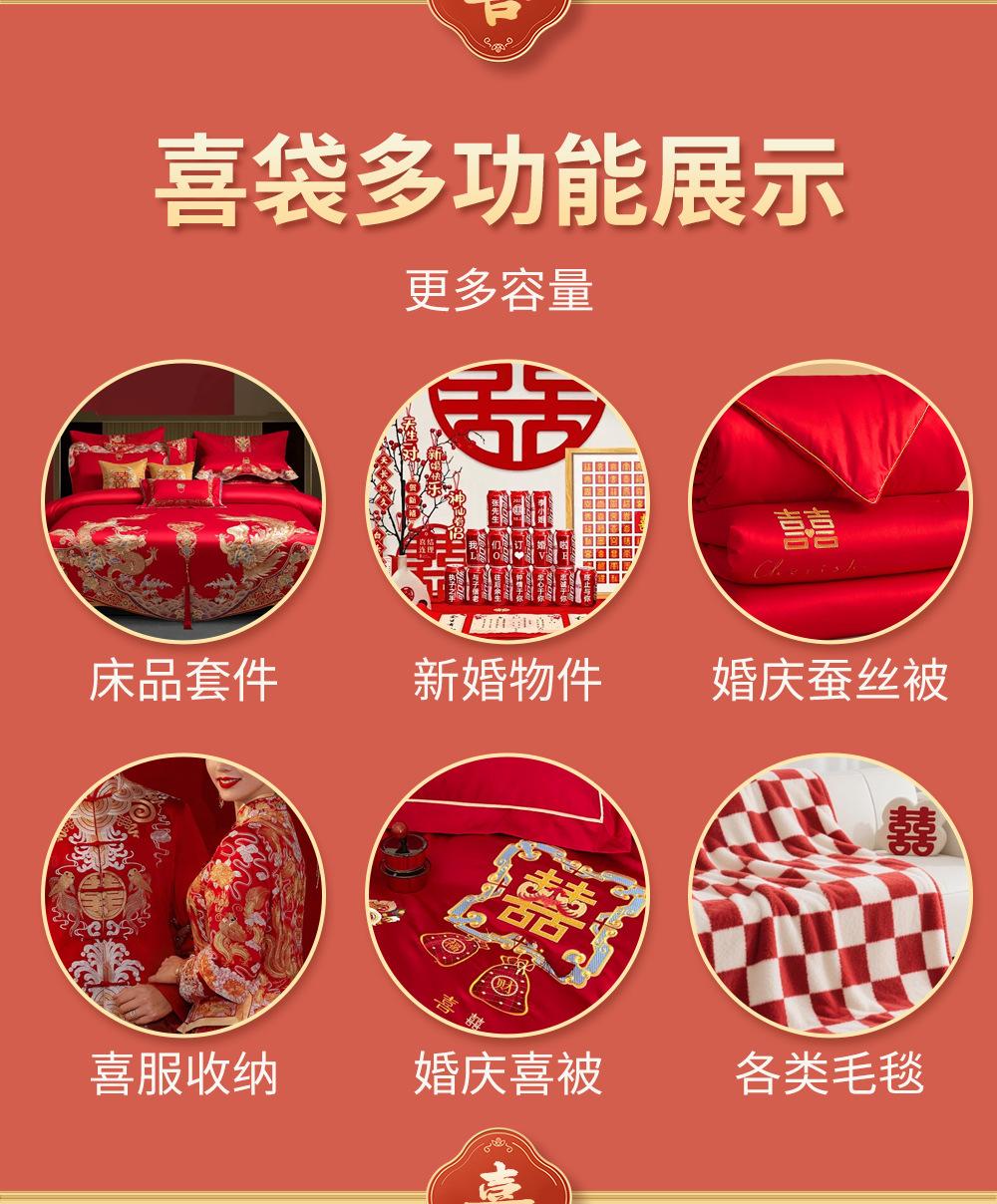 Juego de cuatro piezas para boda de tela no tejida, edredón rojo auspicioso, bolsa de almacenamiento, bolsa de algodón personalizada para edredón, bolso festivo para dote de boda