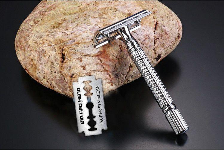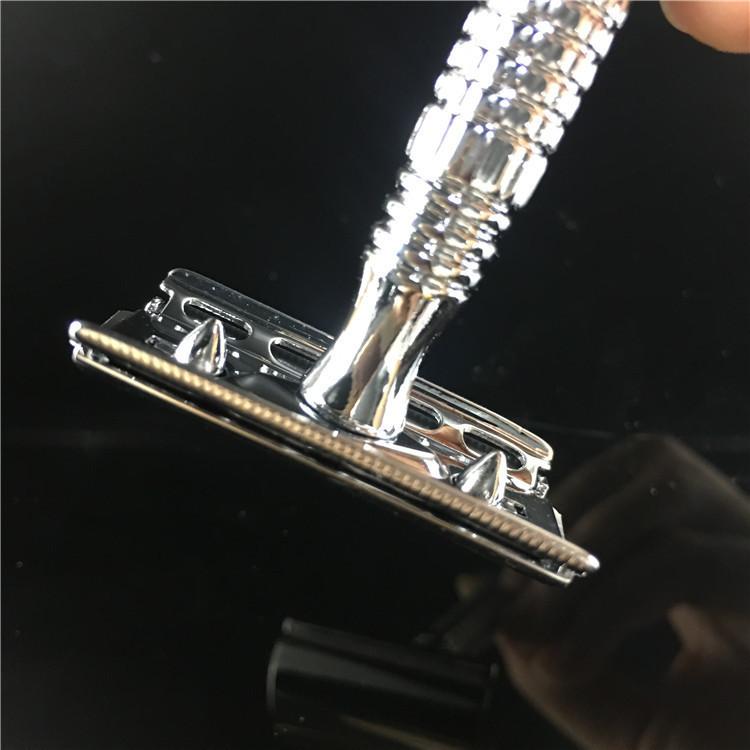 Navaja de Afeitar a la Antigua para Hombre Navaja Manual Soporte de Cuchilla de Doble Filo Cuchilla de Acero Inoxidable Afeitado de Cara Afeitado de Barba Recorte de Cejas