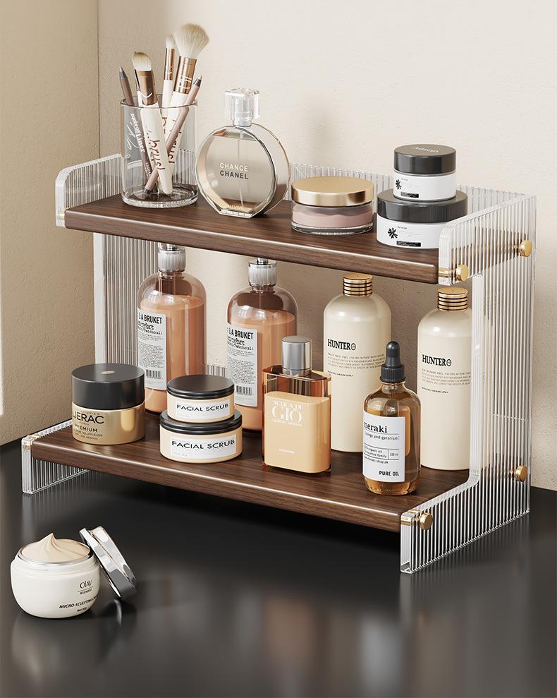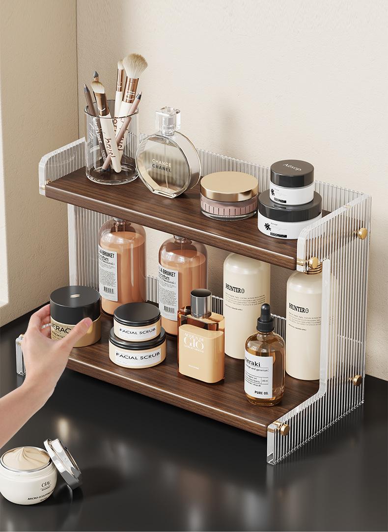 Compra Organizador de Cosméticos Caja de Almacenamiento Escritorio Organizador de Gran Capacidad Tocador Cuidado de la Piel Estante Acrílico de Doble Capa al por mayor en Joom.pro
