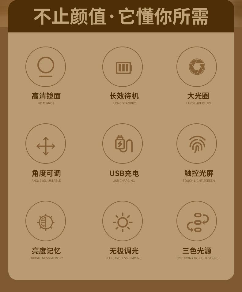 Luz de espejo de maquillaje LED transfronteriza Espejo inteligente multifuncional de escritorio europeo con luz ajustable Espejo de tocador de mesa