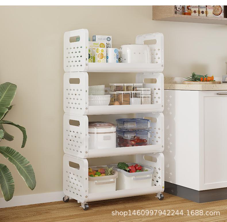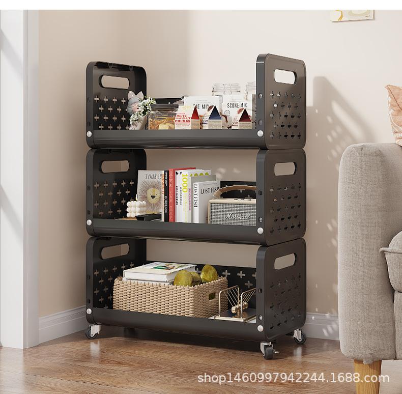 YH9911 Estante de almacenamiento multifuncional de venta caliente transfronteriza, carrito pequeño móvil de pie de múltiples capas, cesta de almacenamiento de refrigerios, estante, cesta para verduras