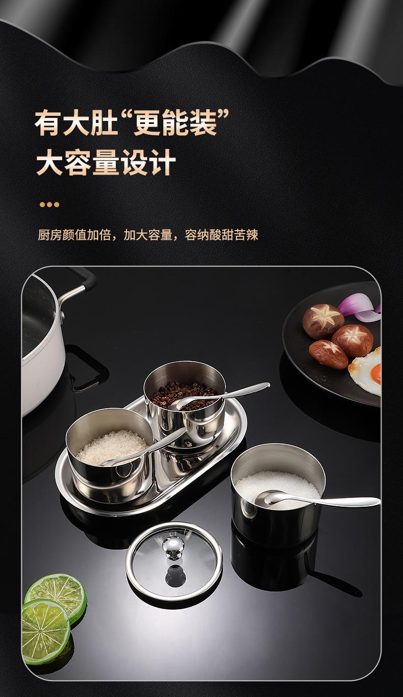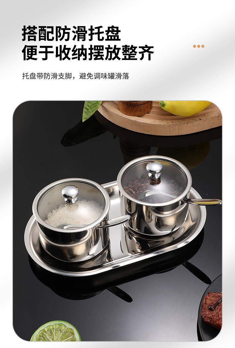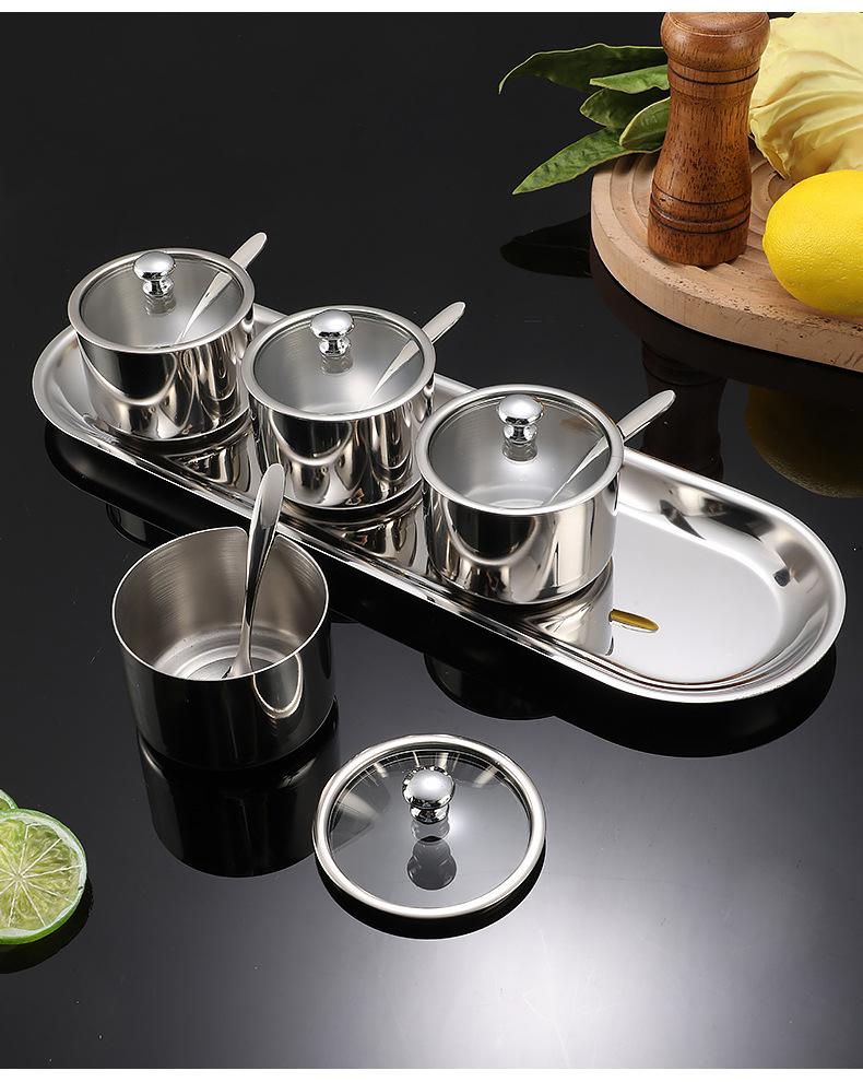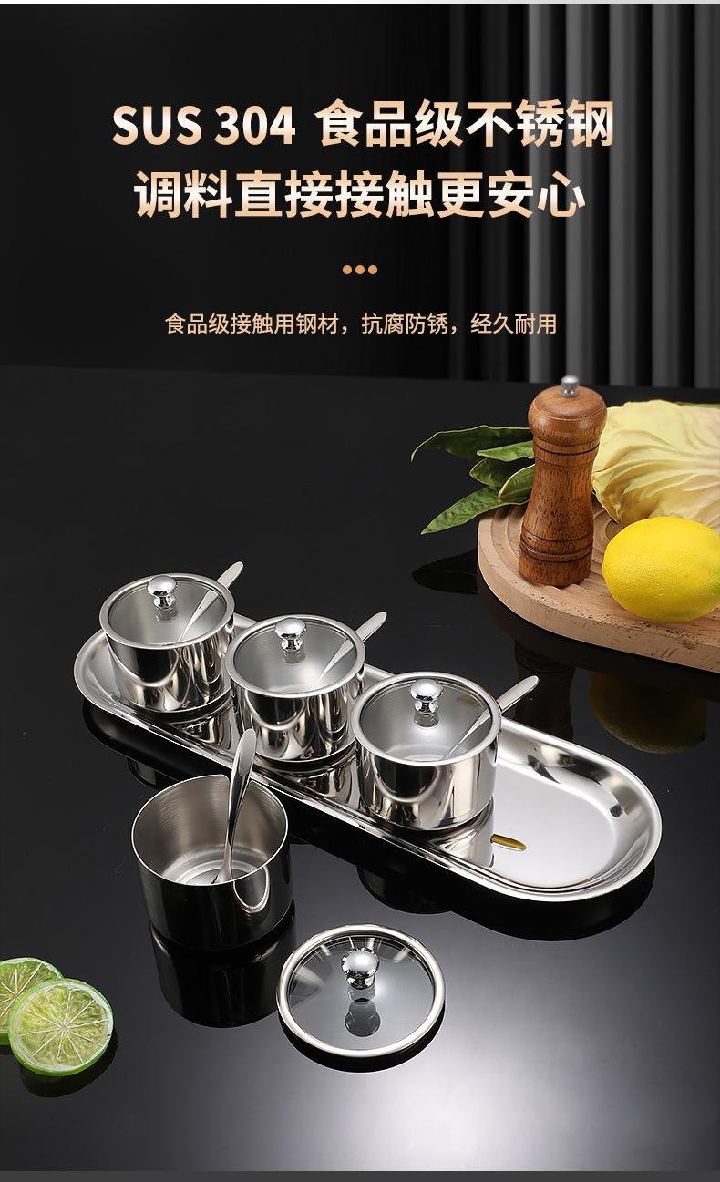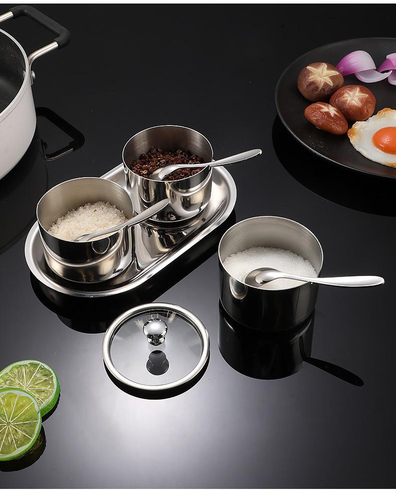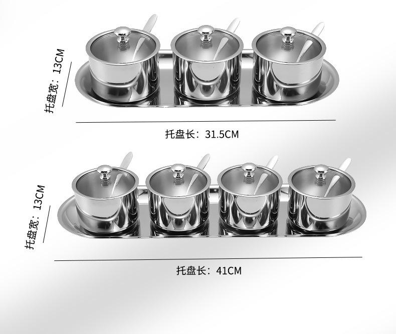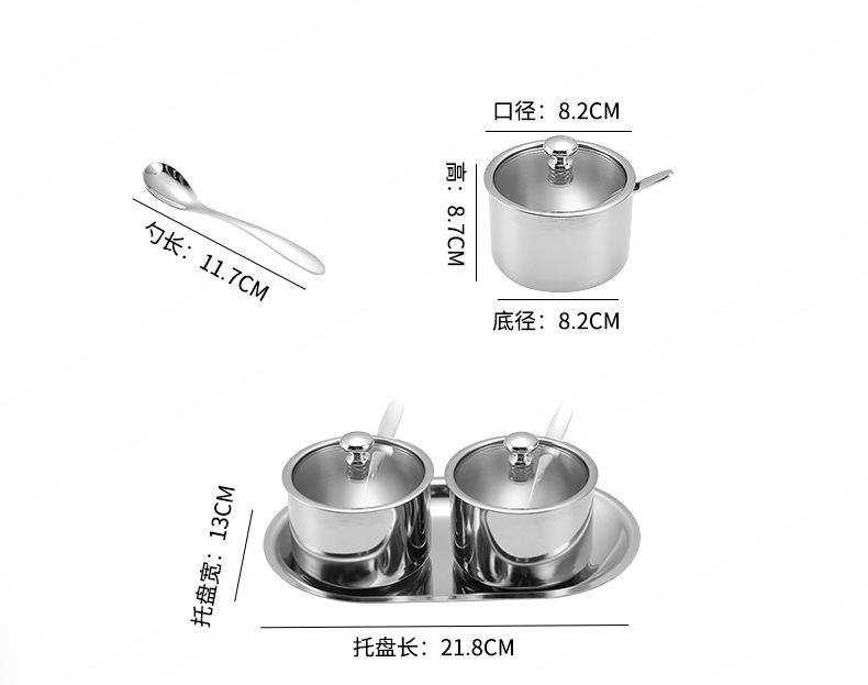 1 straight condiment jar + 1 spoon, 2 complete sets 304 [2 straight-cylinder seasoning jars + 2 spoons + tray ...
